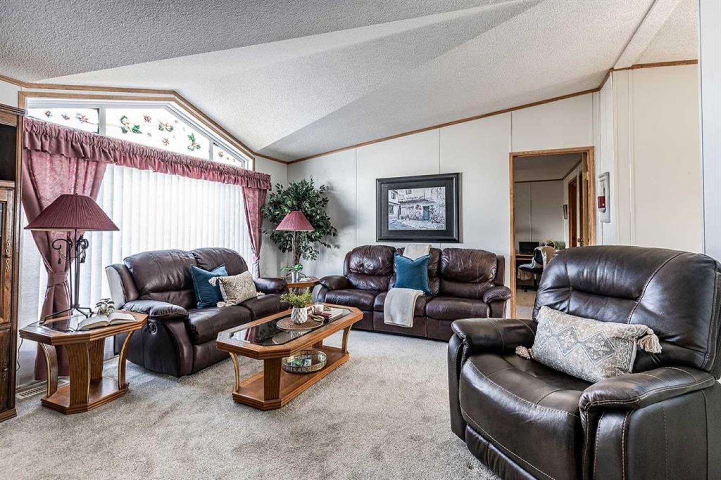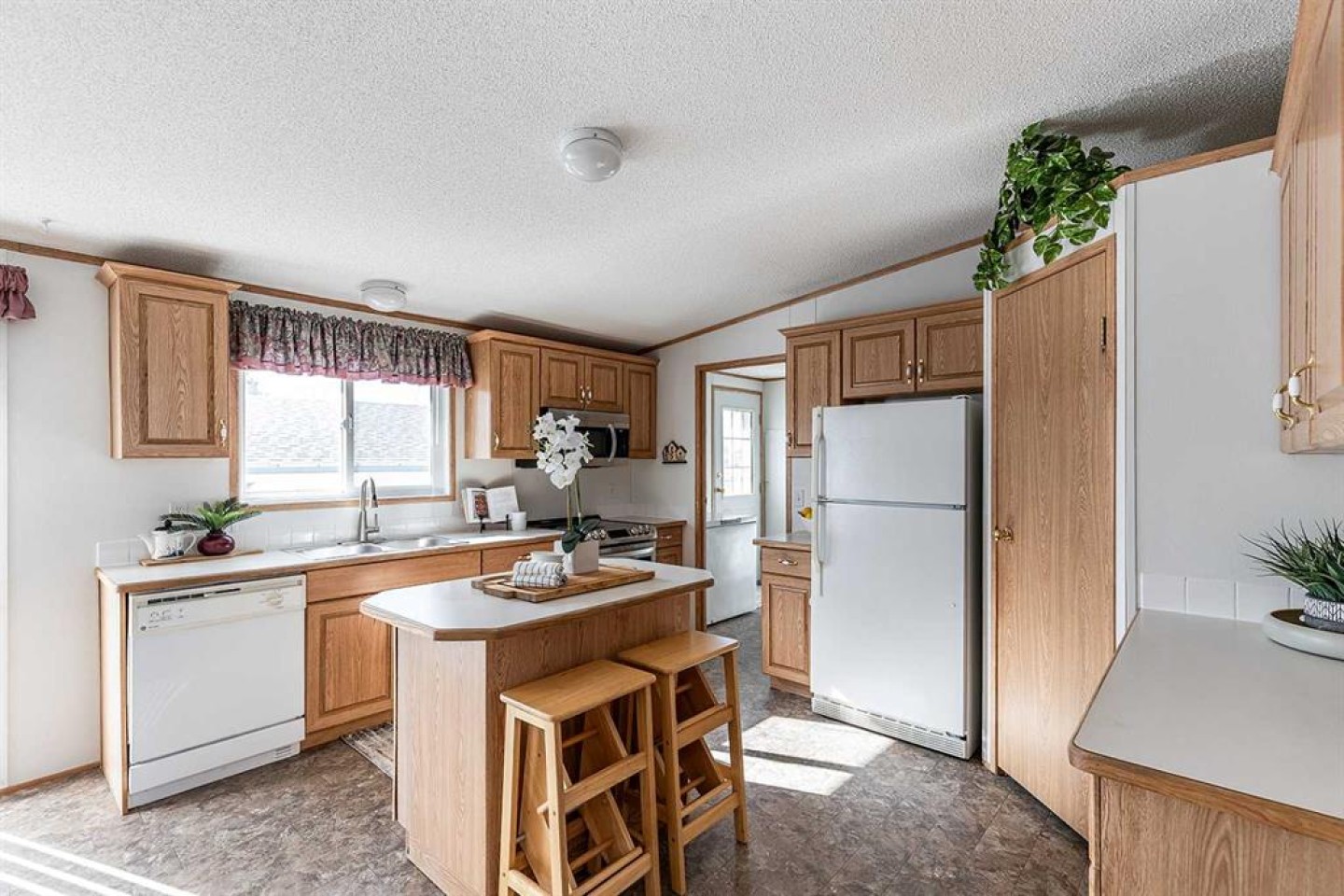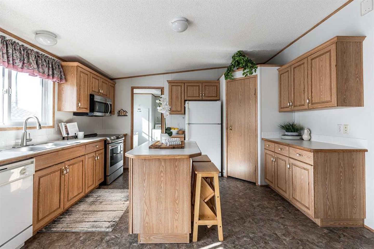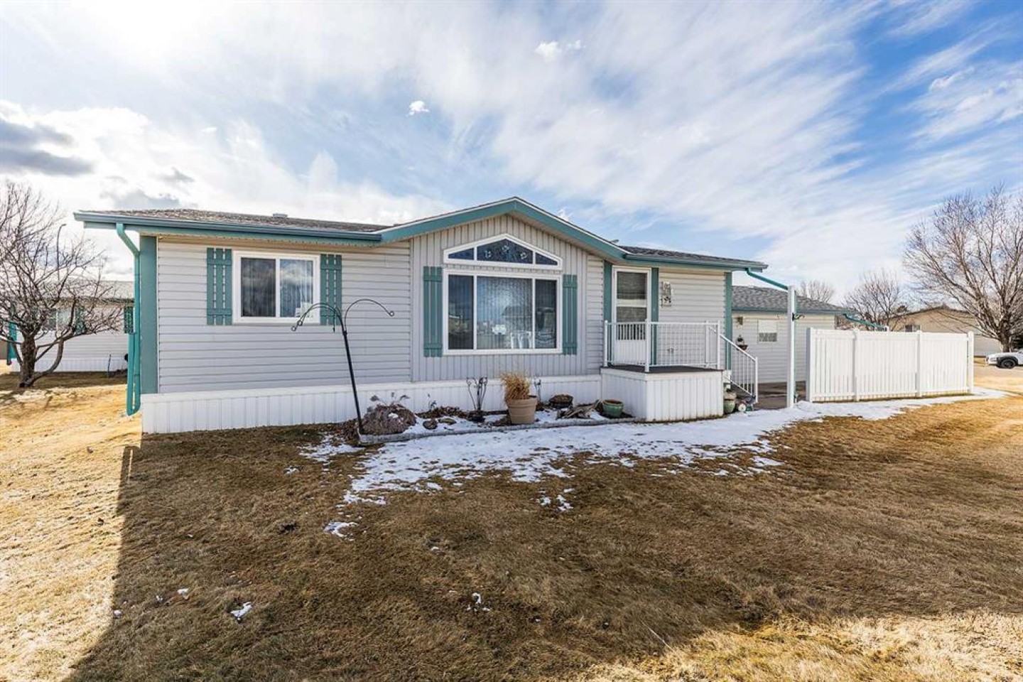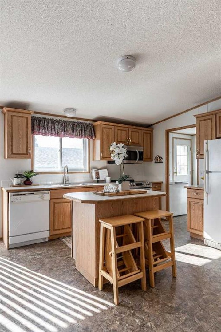 Welcome to this well maintained move-in ready bungalow in the adult living community of Meadowlark Village. With large windows and vaulted ceilings, this home feels bright and spacious. Nicely laid out with a good sized living room that leads into the well equipped kitchen with plenty of cabinetry & counterspace including an island, corner pantry, and dining area that's flooded with sunlight. The large primary suite is host to a walk-in closet and full four piece bathroom with ample storage. The guest bedroom enjoys access to the second full bathroom. A handy laundry room/mudroom is located just off the back entrance and flows into the second bathroom. This well maintained home features new carpet and newer shingles. A private fenced in patio area is the perfect spot for your flower pots, raised garden beds, and patio furniture to enjoy morning coffee and outdoor entertaining. Complete with a 22' x 20' garage and paved driveway, this home truly has everything you need! Meadowlark Village is a 35+ Adult Living Community that allows pets (with some restrictions), and residents have access to the wonderful community clubhouse. Located near walking paths, major shopping centers, restaurants, and medical offices. Lot rent is $746.55/month and includes snow removal, grounds keeping, water, sewer, garbage pick-up, and clubhouse access.
