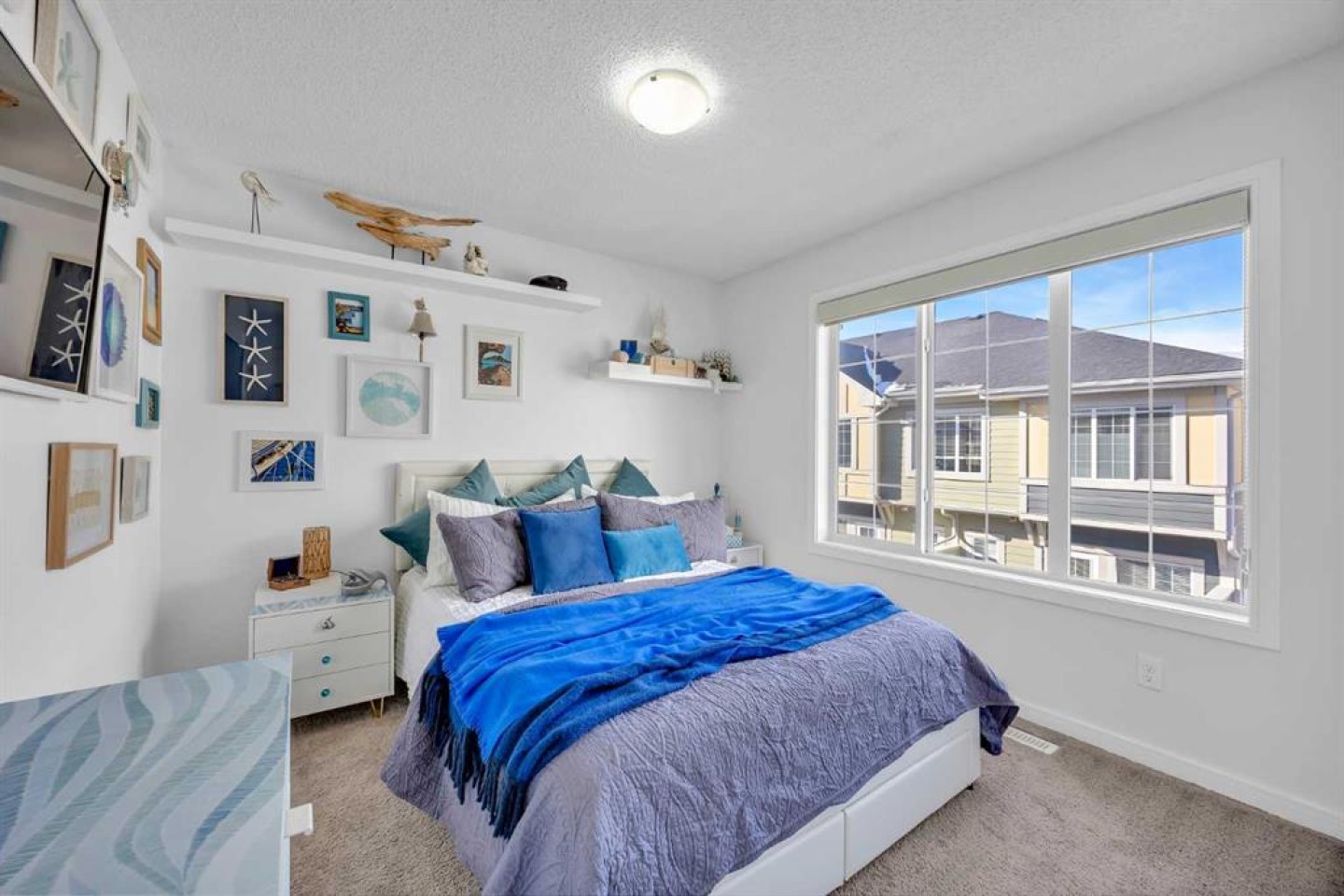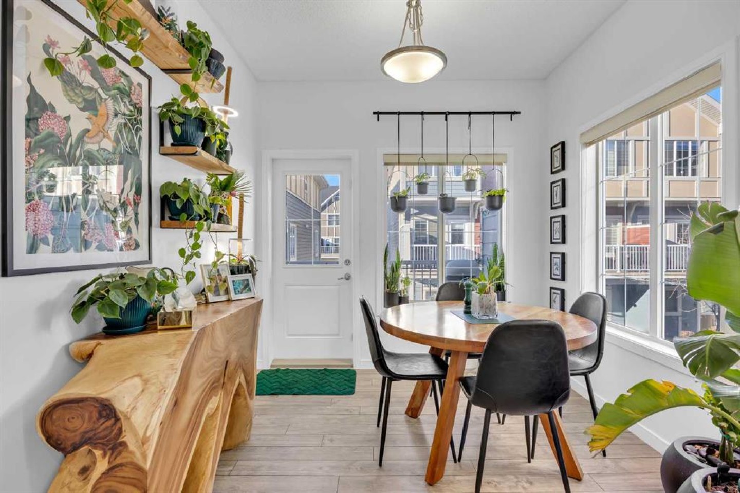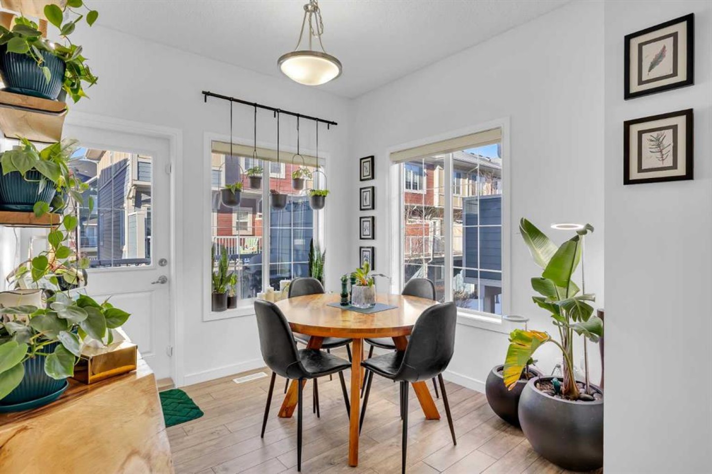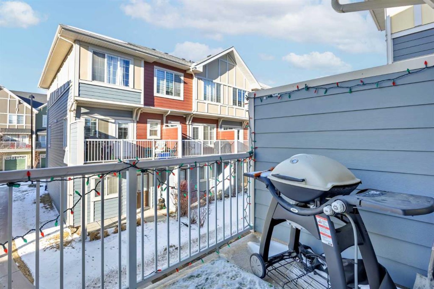 Welcome to this bright and well maintained corner unit townhouse located in the sought after lake community of Mahogany. Offering 3 bedrooms, 2.5 bathrooms, central air conditioning, and over 1,200 sq ft of living space, this home combines a functional layout with excellent natural light thanks to its end unit location. The main floor features an open concept design with a spacious living room, dedicated dining area, and a modern kitchen complete with quartz countertops, stainless steel appliances, mosaic tile backsplash, and a large island with seating. The dining area provides direct access to the balcony, making it easy to enjoy summer BBQs or relax outdoors. A convenient 2 piece bathroom is also located on this level. Upstairs you will find three bedrooms including the primary bedroom with a walk in closet and private 4 piece ensuite. Two additional bedrooms, another full bathroom, and upper level laundry add to the practical layout of the home. Parking is a standout feature with a double tandem attached heated garage plus driveway parking, providing space for multiple vehicles along with extra storage. The home also includes central air conditioning for added comfort during Calgary’s warmer months. Located in Ebony Townhomes, the complex offers visitor parking, landscaped green spaces, and courtyards. Residents also enjoy access to Mahogany’s private lake, along with nearby parks, pathways, schools, shopping, and restaurants. A great opportunity to own a corner unit townhouse in one of Calgary’s most desirable lake communities.