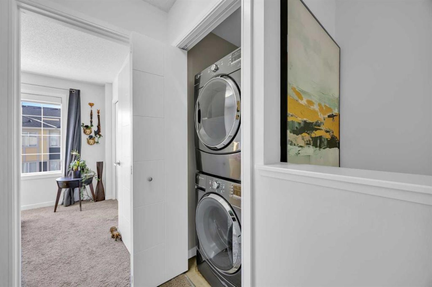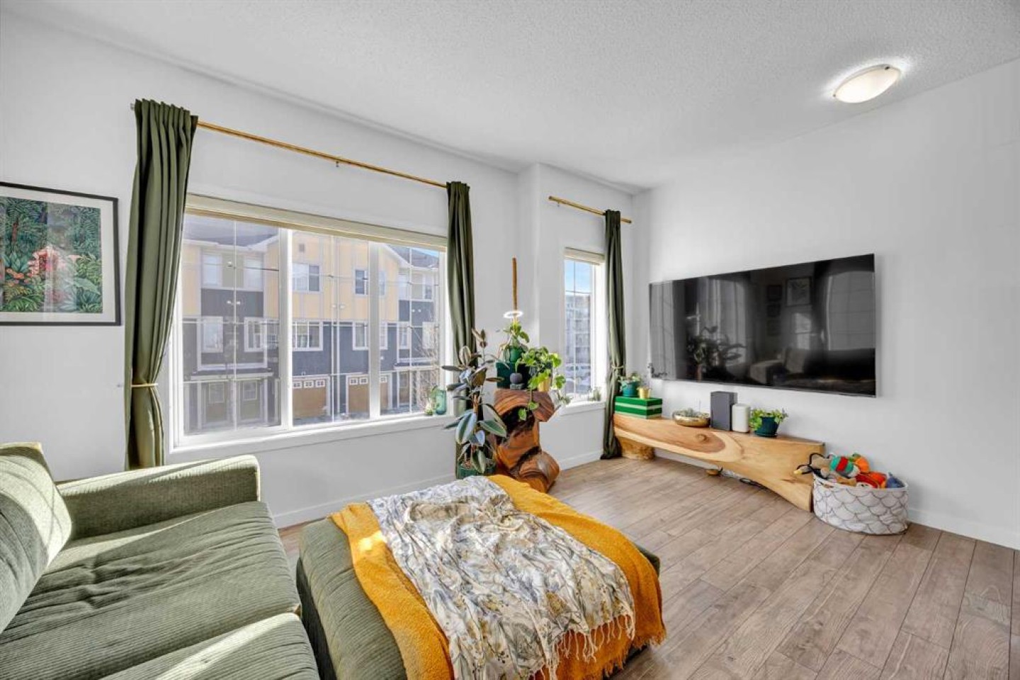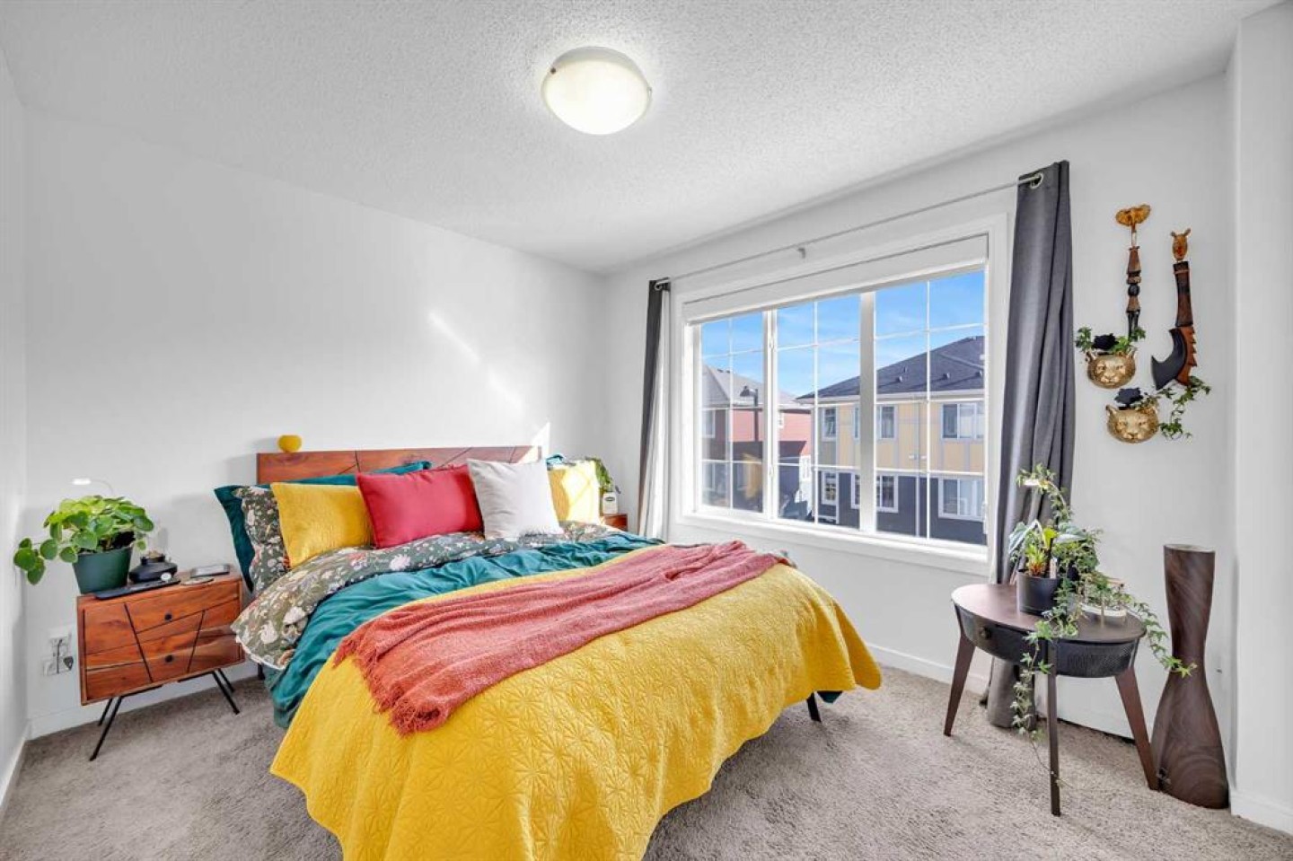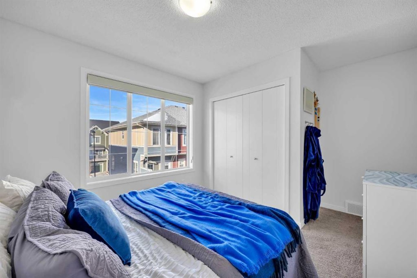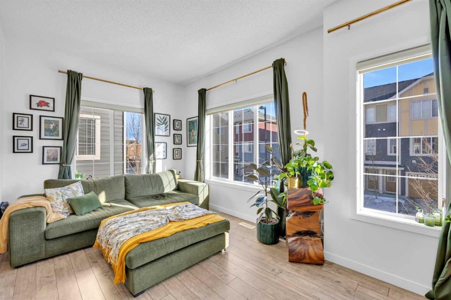 Welcome to this bright and well maintained corner unit townhouse located in the sought after lake community of Mahogany. Offering 3 bedrooms, 2.5 bathrooms, central air conditioning, and over 1,200 sq ft of living space, this home combines a functional layout with excellent natural light thanks to its end unit location. The main floor features an open concept design with a spacious living room, dedicated dining area, and a modern kitchen complete with quartz countertops, stainless steel appliances, mosaic tile backsplash, and a large island with seating. The dining area provides direct access to the balcony, making it easy to enjoy summer BBQs or relax outdoors. A convenient 2 piece bathroom is also located on this level. Upstairs you will find three bedrooms including the primary bedroom with a walk in closet and private 4 piece ensuite. Two additional bedrooms, another full bathroom, and upper level laundry add to the practical layout of the home. Parking is a standout feature with a double tandem attached heated garage plus driveway parking, providing space for multiple vehicles along with extra storage. The home also includes central air conditioning for added comfort during Calgary’s warmer months. Located in Ebony Townhomes, the complex offers visitor parking, landscaped green spaces, and courtyards. Residents also enjoy access to Mahogany’s private lake, along with nearby parks, pathways, schools, shopping, and restaurants. A great opportunity to own a corner unit townhouse in one of Calgary’s most desirable lake communities.