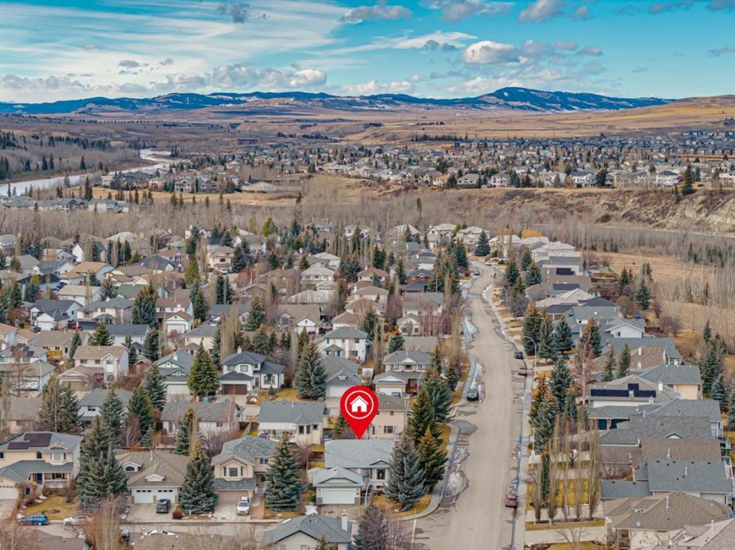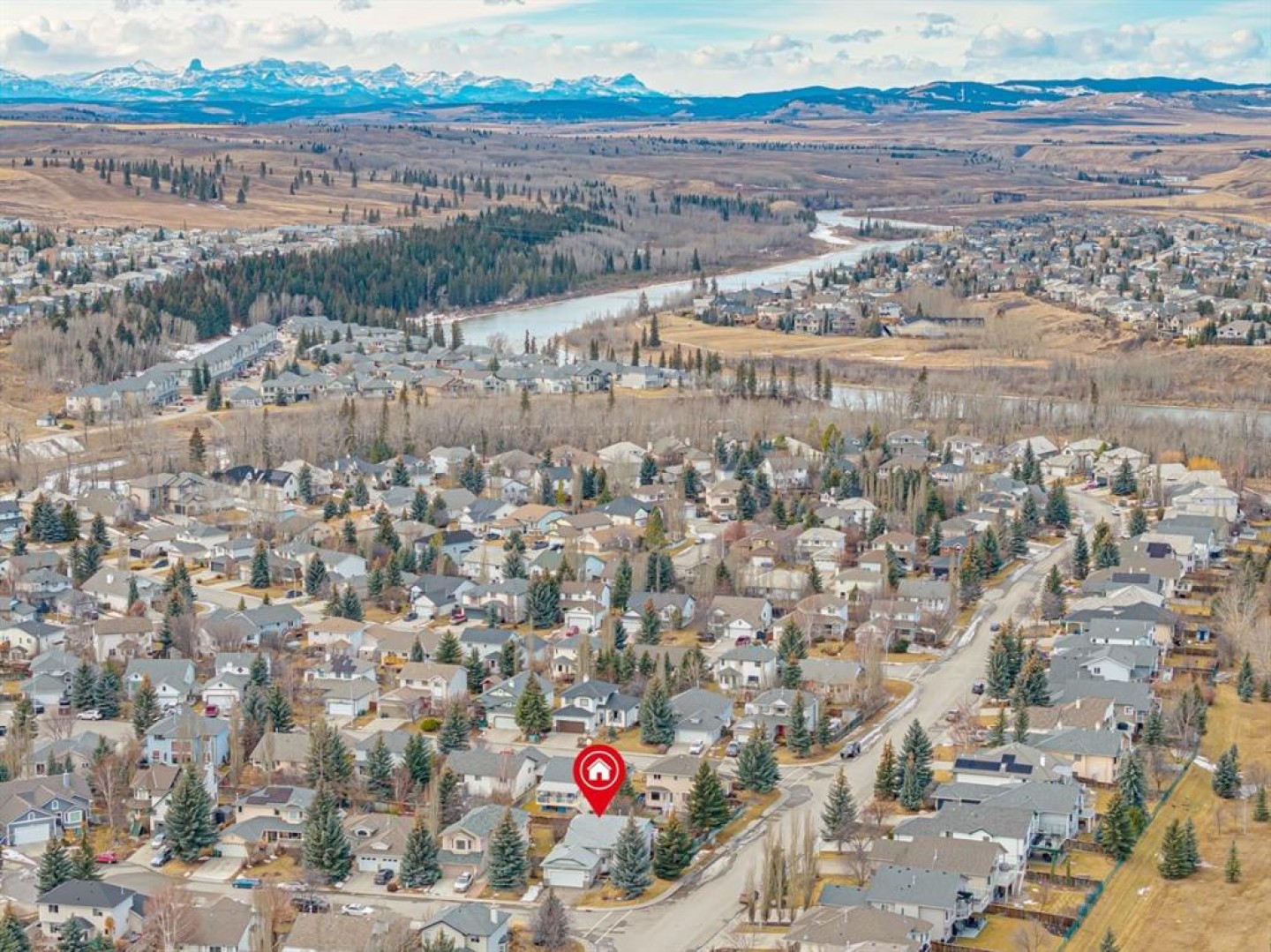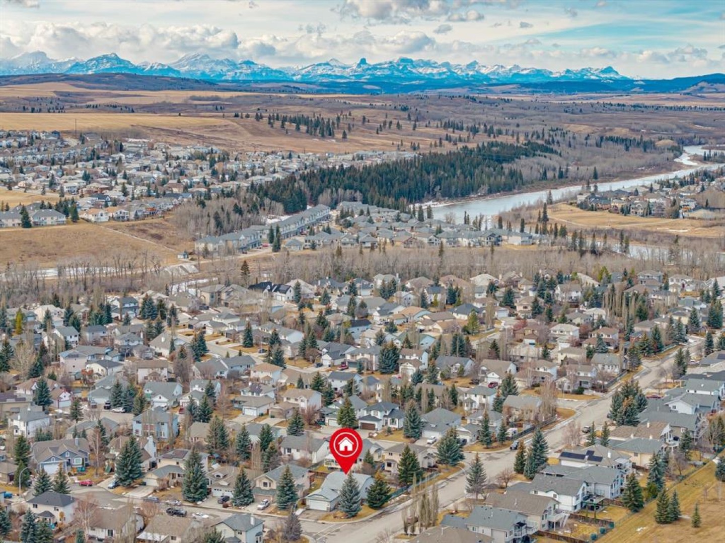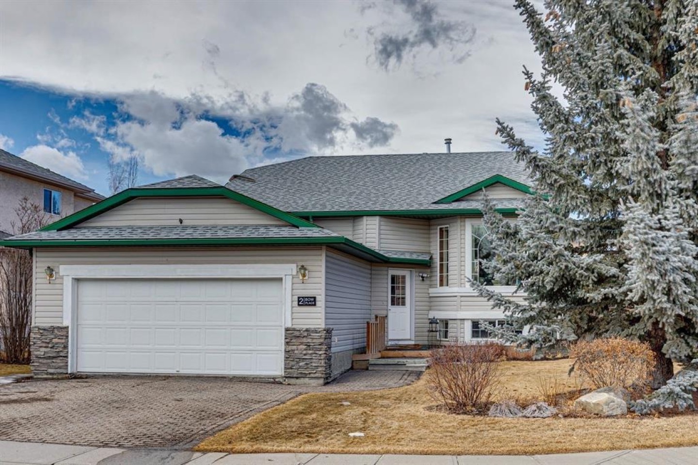 Nestled in the heart of the highly coveted Bow Meadows community in Cochrane, 2 Bow Place is located on a 6400+ sq ft corner lot on a cul-de-sac, with a west facing backyard and stands between 2 river access trails less than 6 houses down! This home offers an unparalleled location, embraced by the serene Bow River, Jumpingpound Creek, two picturesque environmental reserve parks, and a local beach—each - merely steps from your front door. The tranquil pathways, winding along the Bow River, streams, rolling hills and ponds, foster an atmosphere and community of peace, while the quiet setting ensures privacy and quietude. Situated along the Bow River, Bow Meadows is known for its incredible community, great neighbours, beautiful natural paths, playgrounds, soccer fields and dog parks! And with only 14 properties offered to the market in over 2 years, this one owner, large 5 bedroom, well-priced, bi-level offers an opportunity to get into this very special community and create new lifelong memories for your family and friends. Upon entering the home you are greeted with a bright and open entry with stairs leading you to the upper level with spectacular vaulted ceilings and huge windows offering a huge open living and dining space, perfect for entertaining! This upper level floorplan includes the large living room and dining room as well as the kitchen with a breakfast nook and 3 large bedrooms, including the Primary suite with a walk in closet & 3 piece ensuite, and another full 4 piece bath that completes this level. The lower level features a huge cozy family room with a gas fireplace, 2 additional bedrooms and a full 3 piece bath, laundry and an abundance of storage space. All of this and a double attached garage, a landscaped west facing fenced backyard, a large deck off of the kitchen, a great storage shed and the bonus of new roof in 2023! Call to book a private showing or call your favourite Realtor to view!