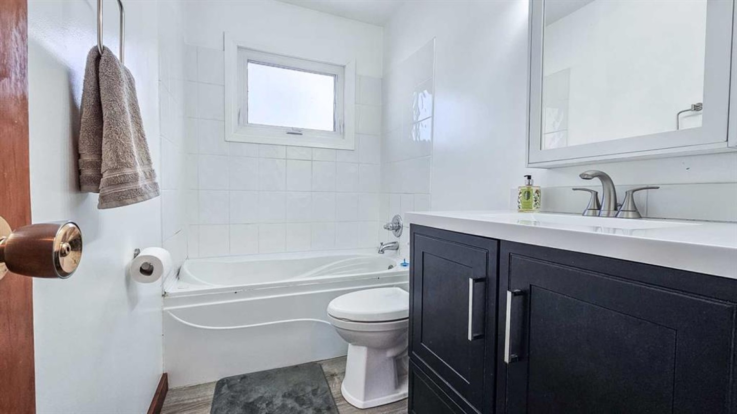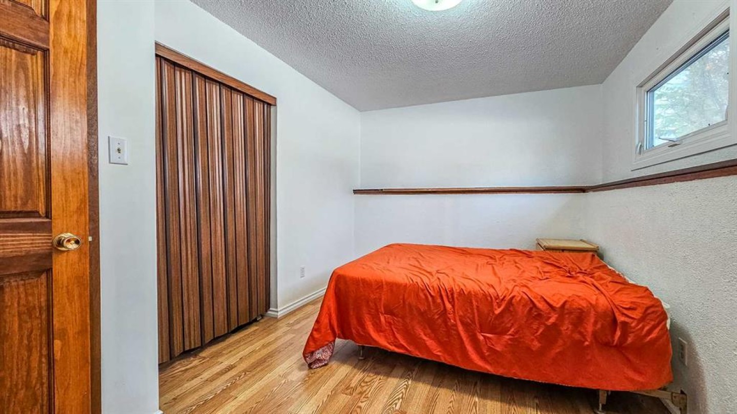 Set on 4.88 acres with paved access right to the driveway, this charming acreage offers privacy, functionality, and a peaceful natural setting. The 900 sq. ft. bi-level home has seen several updates over the years and is complemented by a single detached garage and a shop, providing excellent space for vehicles, hobbies, or storage. The property features a seasonal creek, a dugout, and a beautiful stand of mature trees at the back, where a private trail system offers the perfect setting for ATV rides, walking, or simply enjoying the serenity of your own land. Inside, the main level includes two bedrooms and a full bathroom, along with a U-shaped kitchen, dining area and living room. Garden doors off the dining room lead to a large deck, ideal for relaxing and enjoying your morning coffee while taking in the surrounding views. The lower level offers two additional generously sized bedrooms, another bathroom, and a cozy family room featuring a wood-burning stove, creating the perfect retreat on cold winter evenings. Over the years, the home has benefited from several updates, including newer windows, vinyl plank flooring, and updated bathroom vanities, sinks, and toilets. Additional improvements include shingles (approximately 10 years ago), furnace (2007), electrical panel upgrade (2007), new well pump (2016), and hot water tank (2021). This well-maintained acreage offers a wonderful balance of comfort, outdoor space, and rural tranquility, all with the convenience of paved access.