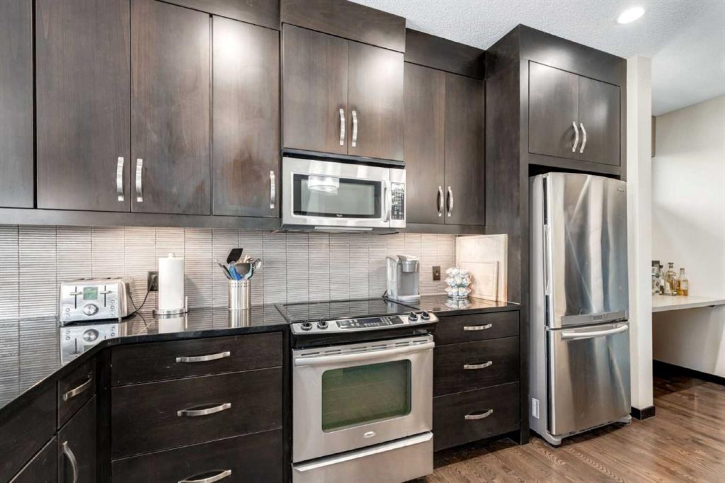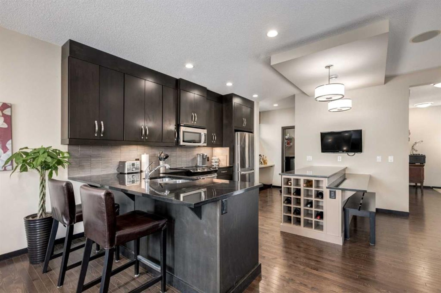 Elliptical Machine in Basement, Slat Board in Garage, Refrigerator in Garage, Electric Fireplace in Basement, Garage Door Opener, Wall Mounted TV in Kitchen