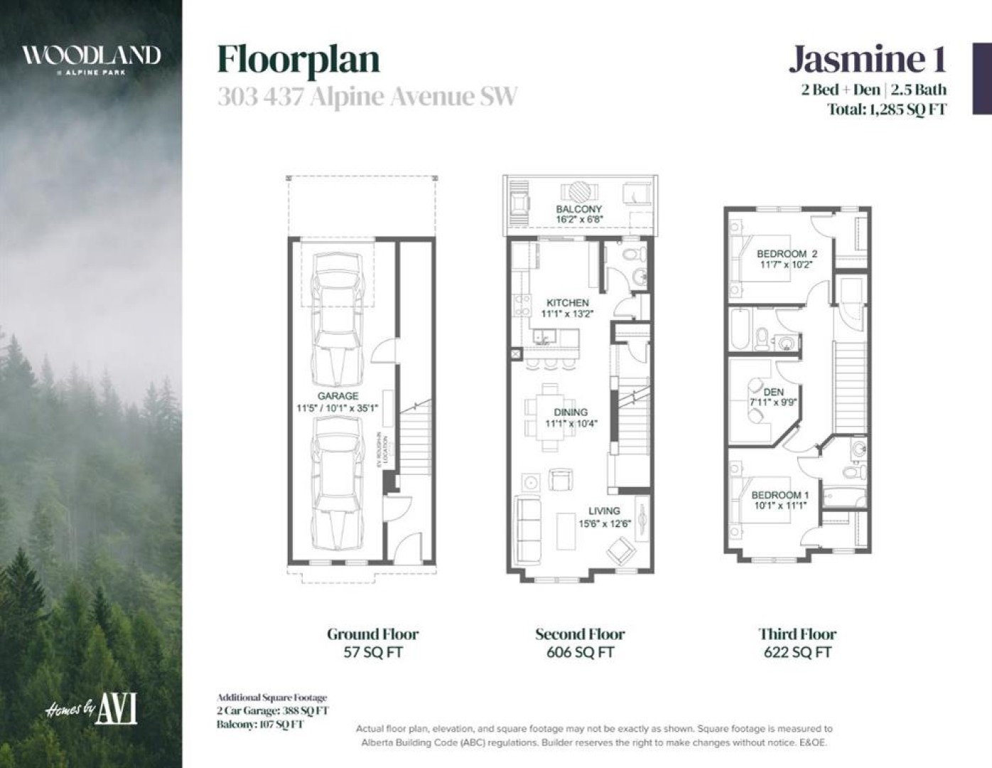 ALPINE PARK IS ONE OF THOSE COMMUNITIES PEOPLE TALK ABOUT AFTER THEY’VE WALKED IT. Wide boulevards, architecture that actually has personality, and a growing village centre designed to bring daily life close to home. If you’ve been watching it take shape and waiting for the right opportunity to get in, this THREE-STOREY Jasmine model at 303, 437 Alpine Avenue SW deserves a closer look. This BRAND-NEW Homes by Avi townhome offers 1,285 square feet of thoughtfully arranged living space across three levels. The east-facing entry opens to a clean, practical ground floor with a welcoming foyer, interior access to the home, and a DOUBLE ATTACHED TANDEM GARAGE that stretches nearly forty feet deep—plenty of room for two vehicles plus bikes, seasonal gear, or the kind of storage every household eventually accumulates. And with construction complete, possession can happen on your timeline. Upstairs is where the home really opens up. The main living level connects the kitchen, dining, and living spaces in one BRIGHT, EASY-FLOWING LAYOUT designed for real everyday life. QUARTZ COUNTERTOPS, a contemporary tile backsplash, pantry storage, and a GENEROUS BREAKFAST BAR give the kitchen both presence and practicality. Just off the dining area, a WEST-FACING BALCONY spans more than sixteen feet—wide enough for a proper outdoor setup and perfectly placed for quiet morning coffee or relaxed evening meals above the street. The top floor keeps the private spaces thoughtfully separated. The primary bedroom includes a walk-in closet and a streamlined three-piece ensuite, while the second bedroom also enjoys its own walk-in closet and convenient access to another full bathroom. A FLEXIBLE DEN sits between the bedrooms—ideal for a home office, reading nook, workout space, or nursery—and the laundry room is right where you want it: upstairs, close to the bedrooms. Outside, the exterior architecture blends MODERN MATERIALS AND CRISP LINES that fit perfectly with Alpine Park’s design-forward streetscape. Step beyond the front door and you’re surrounded by PARKS, PATHWAYS, AND GREEN BOULEVARDS, with the future Village Centre set to bring cafés, shops, and neighbourhood energy just minutes away. The home is finished. The keys are waiting. Come see what life in Alpine Park is starting to look like. • PLEASE NOTE: Photos are of a SHOWHOME of the same model – fit and finish may differ. Interior selections and floorplans shown in photos.