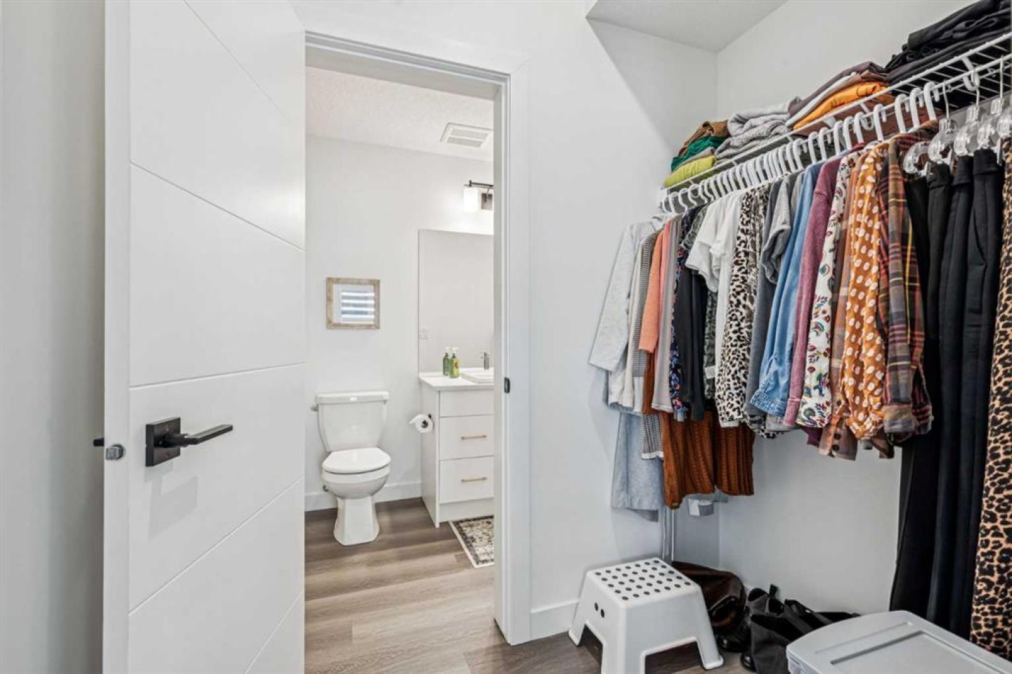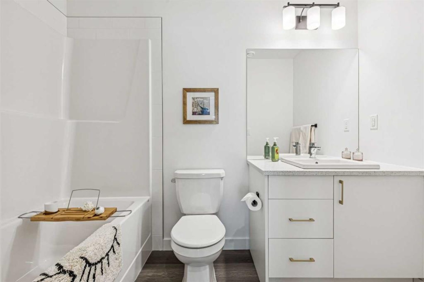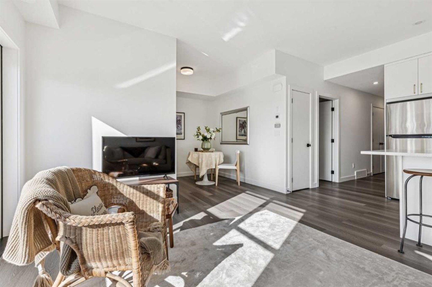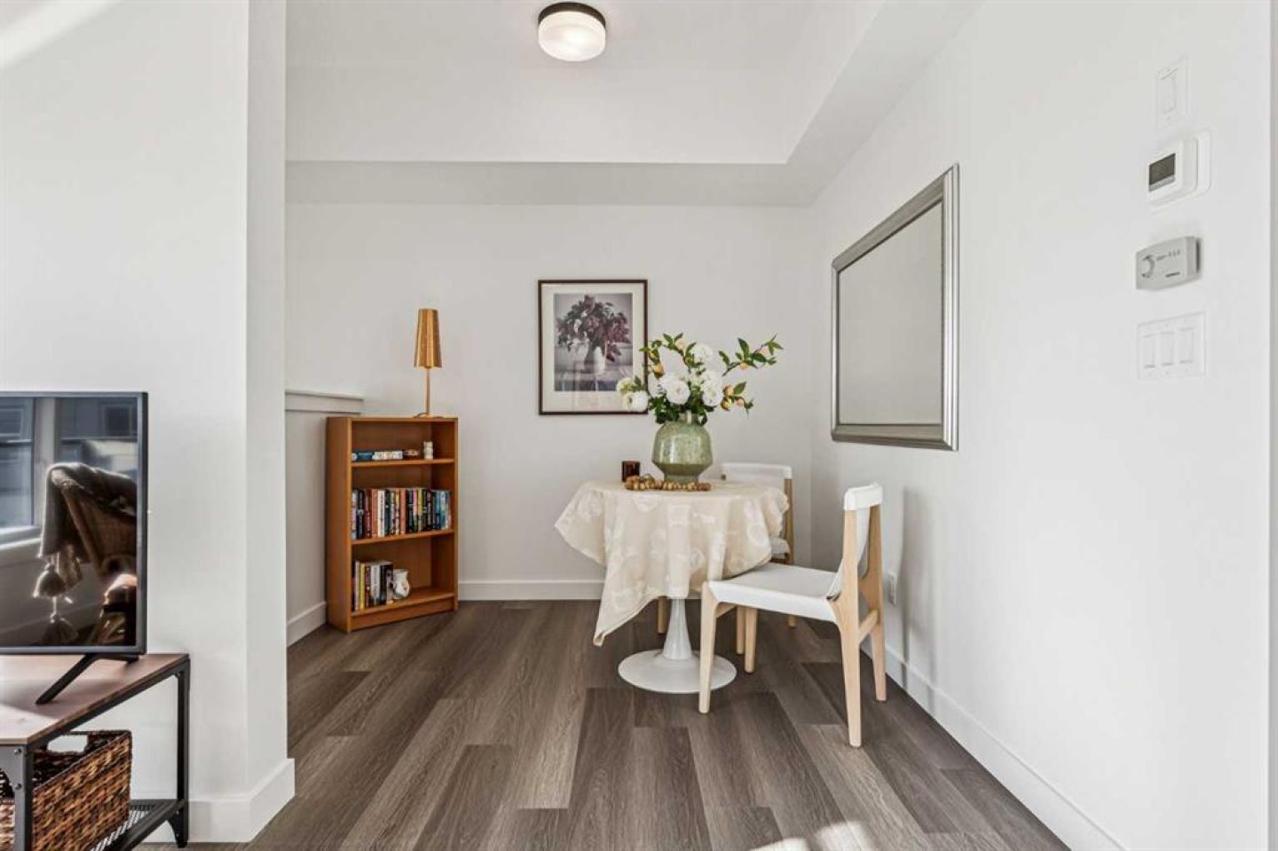 Discover Elkwood in Aspen Springs, located in one of Calgary’s most desirable southwest communities. Positioned at the end of a quiet street, this new stacked townhome enjoys some of the most open sightlines in the complex along with a sunny south-facing exposure, allowing natural light to pour in throughout the day. Thoughtful upgrades include central air conditioning and window coverings, making this home truly move-in ready. The home is also conveniently located close to guest parking, making it easy for visitors. Situated on the top floor, this modern home features 2 spacious bedrooms and 2 full bathrooms within a well-designed open-concept layout. 9-foot ceilings, expansive windows, and wide-plank luxury vinyl flooring create a bright and inviting atmosphere throughout the main living areas. The designer kitchen is both stylish and functional, featuring quartz countertops, soft-close cabinetry, a tiled backsplash, stainless steel appliances, a built-in microwave hood fan, and an upgraded convection oven. An east-facing kitchen window welcomes the morning sun, adding even more natural light to the space. The thoughtful layout offers both bar seating at the kitchen island and a dedicated dining area, making it ideal for everyday living and effortless entertaining. Convenience continues with a main floor laundry room featuring a front-load washer and dryer along with generous storage space. The lower level provides additional storage and a versatile flex room, perfect for a home office, workout space, or hobby area, plus private direct access to your attached garage—large enough to accommodate a Ford F-150 truck, a rare and valuable feature for townhome living. Ideally located just minutes from the shops and restaurants of Aspen Landing Shopping Centre, and easy C-Train access, along with nearby walking paths, schools, and beautiful green spaces, this home offers the perfect balance of style, comfort, and convenience. Whether you’re a first-time buyer, investor, or seeking a low-maintenance lifestyle, this exceptional home truly checks all the boxes.