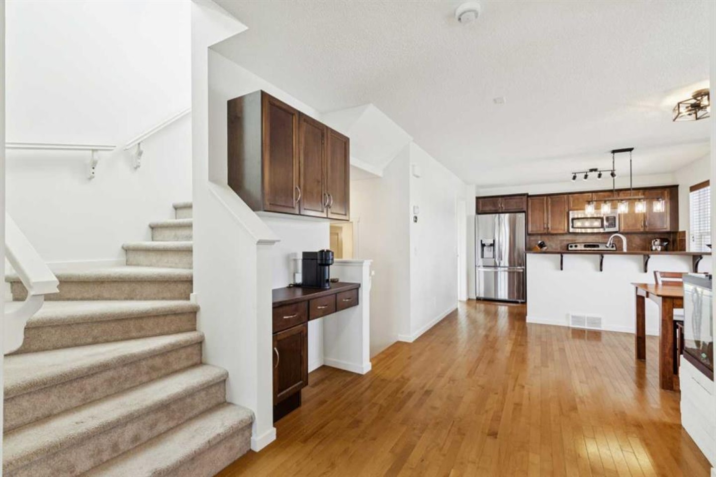 This home sits on a HUGE CORNER LOT and immediately stands out with its GREAT CURB APPEAL AND PARTIAL WRAP-AROUND DECK. You'll love the HUGE BACKYARD with large deck, 2 sheds and GAS LINE FOR BBQ. The INSULATED GARAGE IS HEATED with A 60AMP ELECRICAL PANEL measures 20x20 allowing for large vehicles, tools, and weekend projects. Inside, the main floor is bright and functional, featuring a MUDROOM, a kitchen with STAINLESS STEEL APPLIANCES and BUILT-N COFFEE/TECH BAR, a dining area, and a welcoming living room complete with a GAS FIREPLACE. Upstairs offers a spacious primary retreat with a 4-PIECE ENSUITE and DUAL WALK-IN CLOSETS, plus two additional bedrooms, both featuring WALK IN CLOSETS and another 4-PIECE BATHROOM. Downstairs, the partially finished basement already has a rec room, a bathroom rough-in, and an egress window, making it easy to add another bedroom and build instant value. NEW ROOF, EVESTROUGHS AND HARDIE BOARD SIDING (2022), STOVE (2023), REFRIGERATOR (2023), DISHWASHER (2022) WASHER/DRYER (2020). All new Smoke Detectors, 60amp electrical in Garage Located steps away from a PLAYGROUND, and with shopping, schools, and MILES OF WALKING TRAILS nearby, this home will check all your boxes!