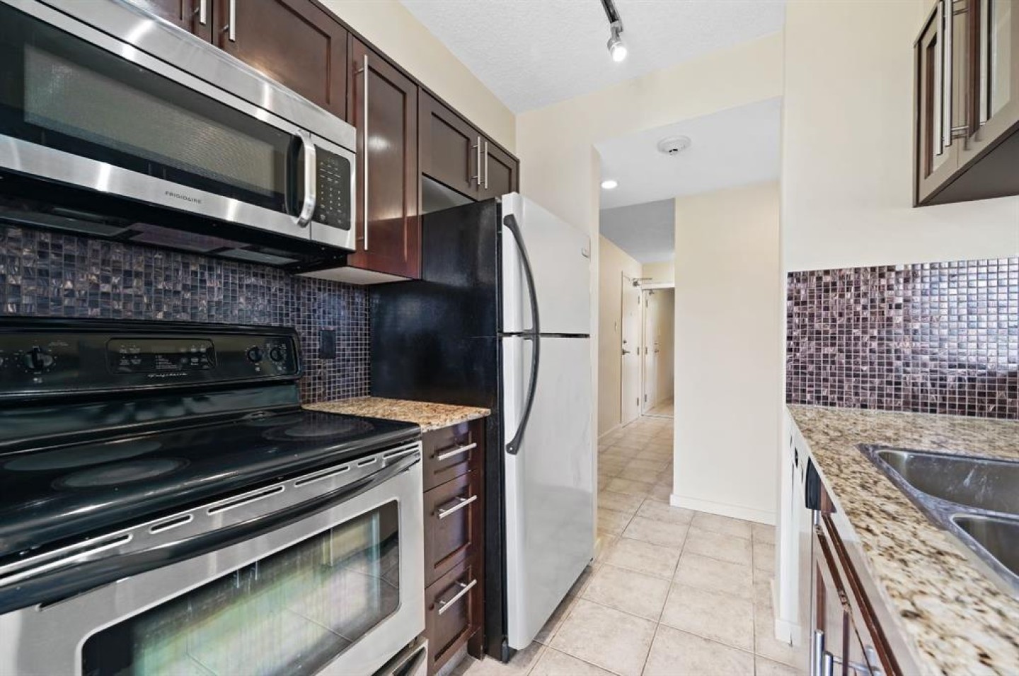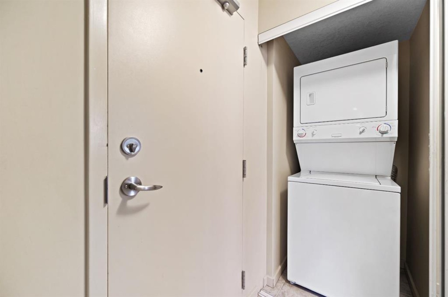 Dishwasher, Electric Stove, Refrigerator, Washer/Dryer Stacked