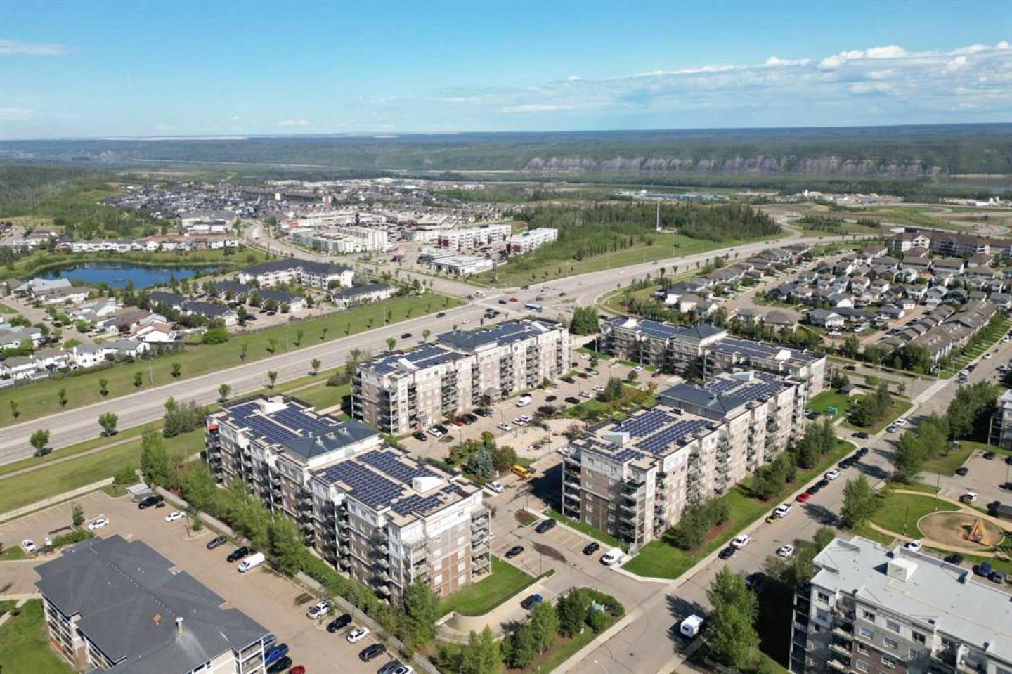 Experience the pinnacle of condo living in this stunning top-floor penthouse at The Peaks at Eagle Ridge. This rare and sought-after home offers exceptional privacy, breathtaking views, and a refined, low-maintenance lifestyle in one of Fort McMurray’s most desirable communities. With one spacious master bedroom boasting massive walk in closet, a newly renovated bathroom with extra-large walk in storage closet, new vanity, fixtures and lighting—this home is thoughtfully designed for comfort, convenience, and elegance. Step into a bright and airy open-concept layout enhanced by elevated 9-foot ceilings that add a sense of openness throughout. These ceilings not only increase the feeling of space but also allow for better light flow and airiness, making the home feel even more expansive and inviting. The modern galley-style kitchen features newer upgraded black stainless steel appliances and an eat-up breakfast bar—ideal for casual dining or entertaining, pantry, newer laminate flooring throughout and the recently installed Telus Fibre Optic service for high-speed internet. Enjoy entertaining on the and a private deck with natural gas hookup. Built with concrete construction, the building offers superior soundproofing and enhanced peace of mind with secure access and restricted floor entry. Residents of The Peaks enjoy a wide range of amenities, including two fitness rooms, a social lounge, games room, children’s playground, car wash bay in the underground parkade, pop up access from parkade to bus stops and is pet friendly. Comes with one secure underground parking stall with a storage locker # 146. Located just steps from the Birchwood Trails, serene ponds, walking paths, shopping, dining, schools and Landmark Cinemas, and quick connected access to Stoney Creek. This home seamlessly blends natural beauty with urban convenience. This exceptional penthouse is truly luxurious, private, and maintenance-free, with unmatched views and lifestyle amenities. Don’t miss the opportunity to call this elevated retreat your home.