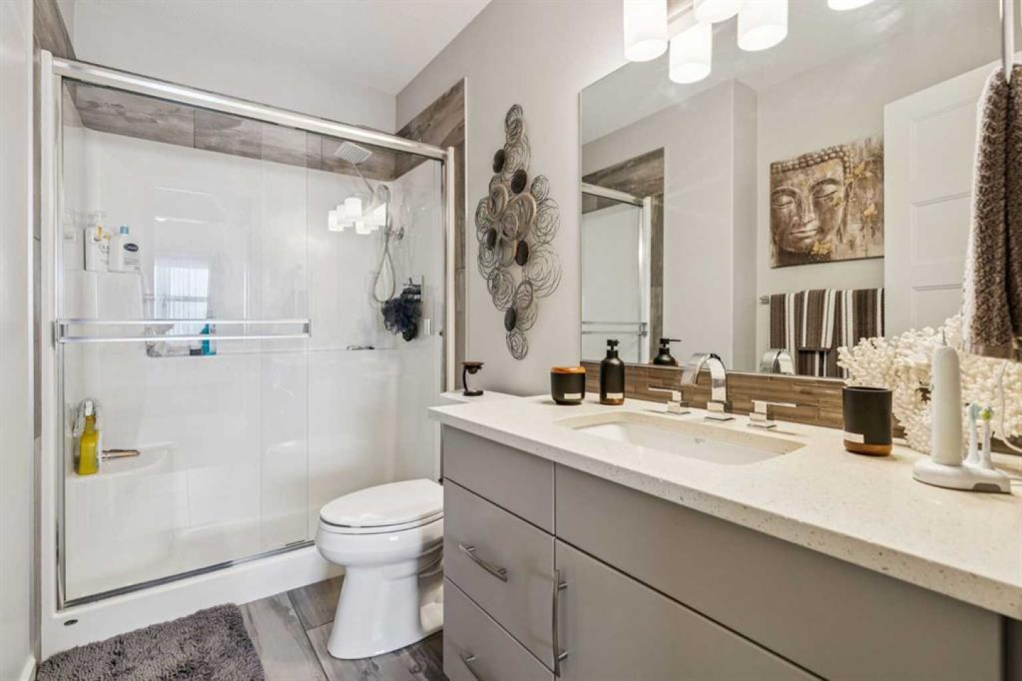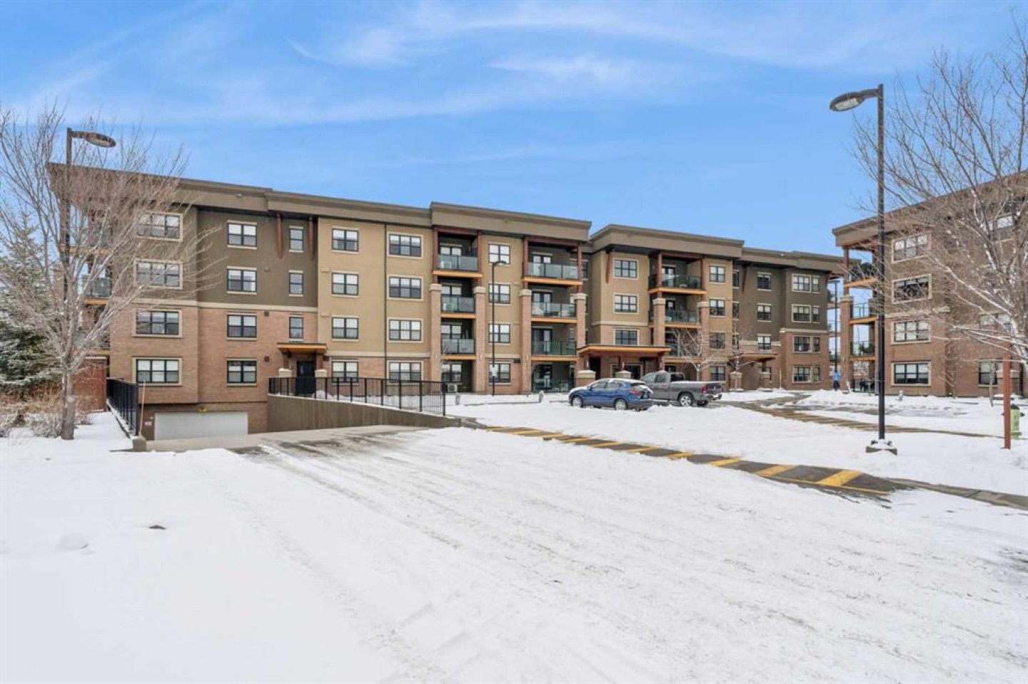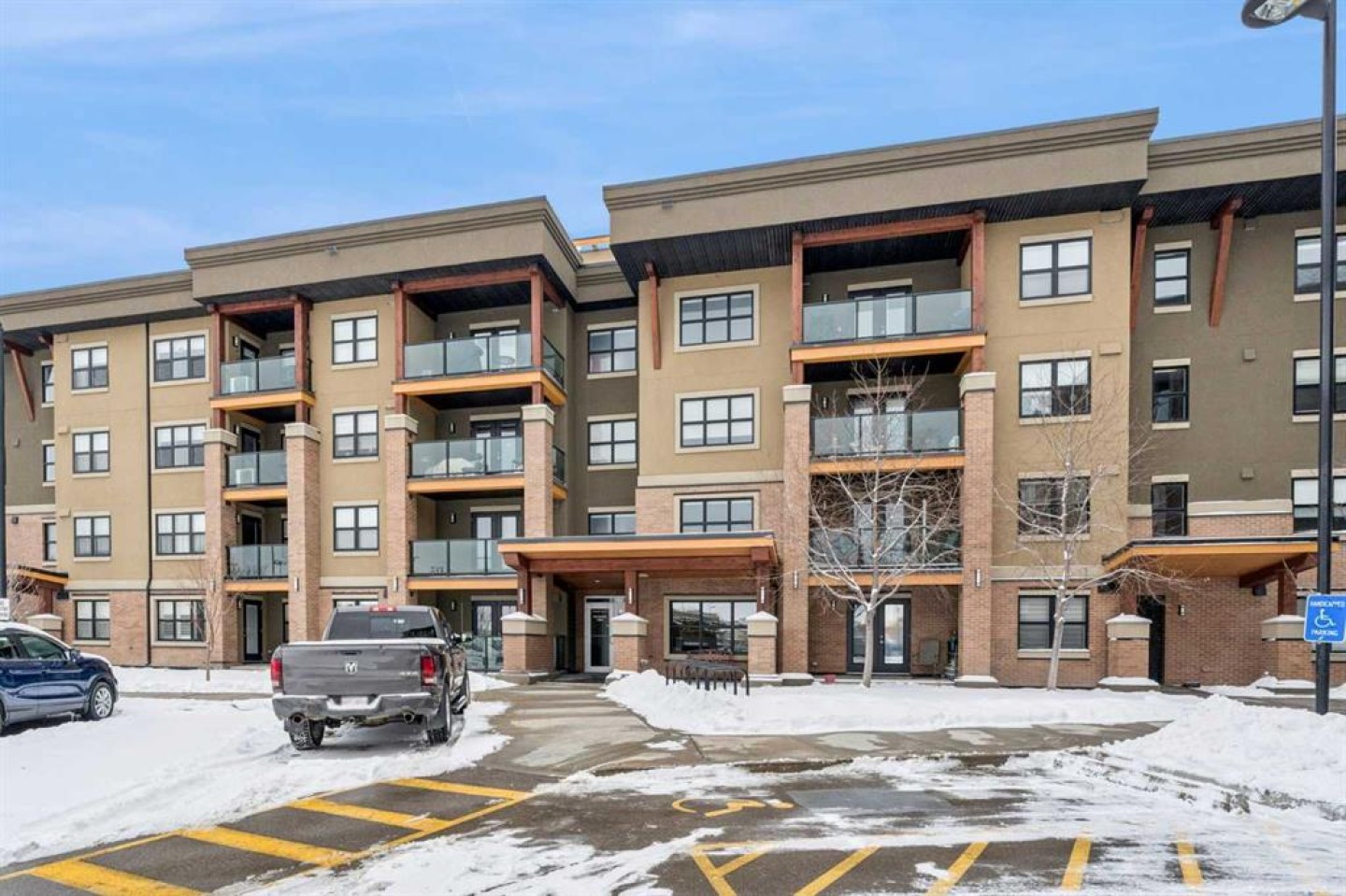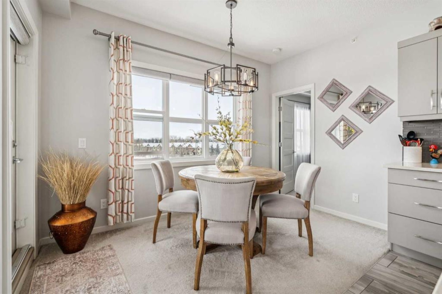 CHECK OUT OUR 24/7 VIRTUAL OPEN HOUSE. Welcome to The Chateaux, Airdrie’s premier 55+ complex, thoughtfully designed for comfortable, low-maintenance living in a vibrant community setting. This top-floor corner unit offers over 900 sq. ft. of bright, open living space with 2 bedrooms and 2 bathrooms, including a primary suite with private ensuite. The open-concept floorplan is perfect for everyday living and entertaining, featuring quartz countertops and over $50,000 in upgrades. The kitchen is a standout with a premium stainless steel appliance package, custom hood fan, and a microwave built seamlessly into the island. Additional upgrades include a stylish fireplace, air conditioning, high-quality blinds, upgraded light fixtures, and a convenient screen door for added comfort. Step outside to your covered private deck with gas BBQ hookup, the perfect spot for morning coffee or evening relaxation. This home also includes a titled underground parking stall with a storage cage above, providing both convenience and security. Residents of The Chateaux enjoy exceptional amenities, including a beautifully landscaped courtyard, a welcoming amenity/social room available for private bookings, and a secure underground workshop for woodworking enthusiasts. The building also features secure underground access, elevator service, bike storage, and a welcoming lobby, all within a well-maintained complex with in-floor heating for year-round efficiency and comfort. Ideally located within walking distance to groceries, shopping, restaurants, medical services, and banking, this home also offers easy access to Deerfoot Trail, especially with the convenient new 40th Ave exit. Enjoy nearby access to the Genesis Place recreation complex, East Lake walking/biking paths, and a dog park nearby in Kings Heights too. This pet-friendly community (two pets permitted, with size restrictions) offers the perfect balance of comfort, convenience, and community for those looking to enjoy an active, maintenance-free lifestyle. Book your viewing today!