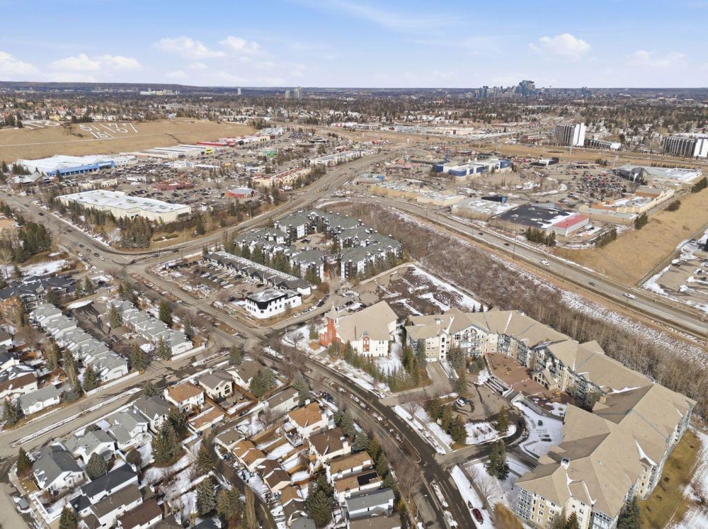Welcome to this bright and well-maintained 2-bedroom, 2-bathroom condo located on the 3rd floor in the highly desirable community of Signal Hill. Offering 851 sq ft of comfortable living space, this home combines functionality, natural light, and an unbeatable location close to amenities. Step inside to an inviting open-concept layout featuring large windows that fill the living space with natural light. The spacious living room is anchored by a cozy gas fireplace, creating the perfect place to relax at the end of the day. Just off the living area, the private covered balcony provides a quiet outdoor retreat overlooking beautiful mature trees — ideal for enjoying your morning coffee or unwinding in the evening. The bright kitchen offers ample cabinetry, generous counter space, and stainless steel appliances, making meal preparation easy and convenient. The primary bedroom is spacious and comfortable, complete with its own private 3 piece ensuite bathroom, while the second bedroom offers excellent flexibility for guests, a home office, or additional living space. A second full 4 piece bathroom ensures convenience for both residents and visitors. The adjacent dining area flows seamlessly into the living space, creating a functional layout perfect for everyday living or entertaining. Additional highlights include in-suite laundry, titled underground parking, and a well-managed and well-cared-for building, providing both comfort and peace of mind.Perfectly located, this home is within walking distance to Westhills Towne Centre, offering a wide variety of shopping, restaurants, cafes, a movie theatre, and everyday amenities. With easy access to transit, downtown Calgary, and quick routes to the mountains, this location truly offers the best of both city living and outdoor adventure. Whether you're a first-time buyer, downsizer, or investor, this Signal Hill condo offers an exceptional opportunity in a fantastic location. Don't miss your chance to see this one today. You won't be disappointed.