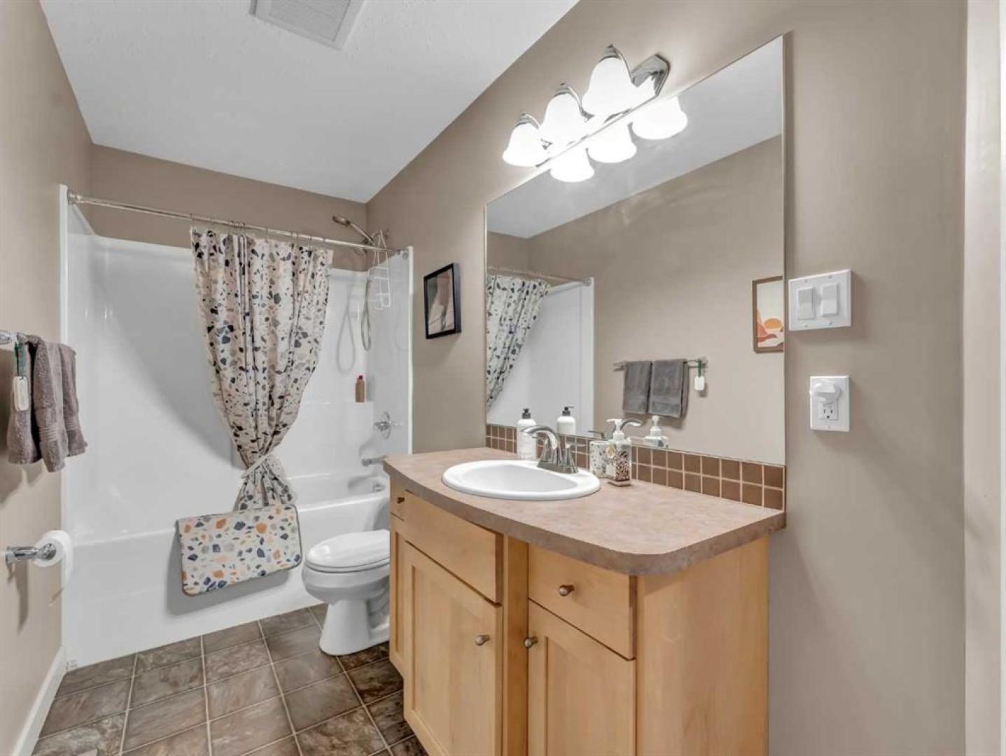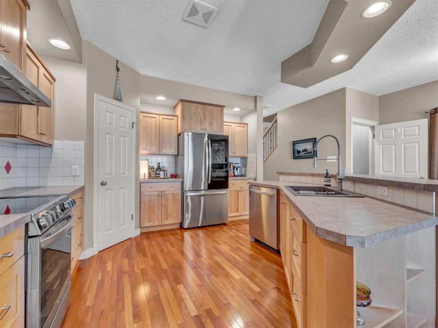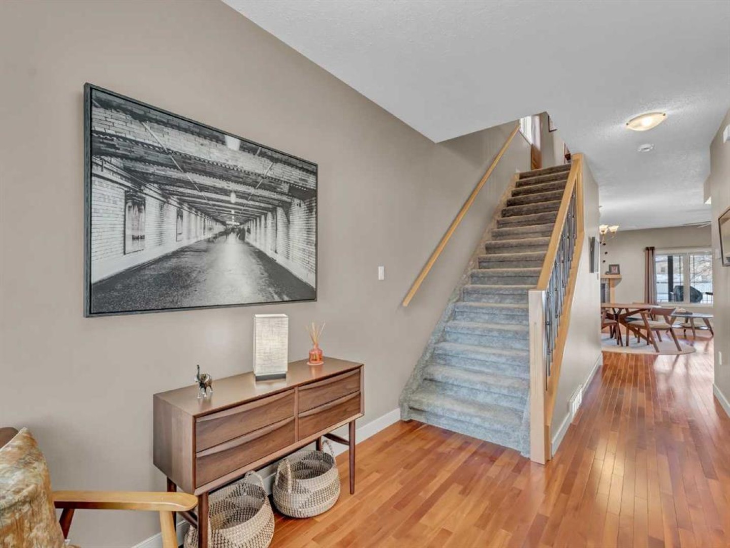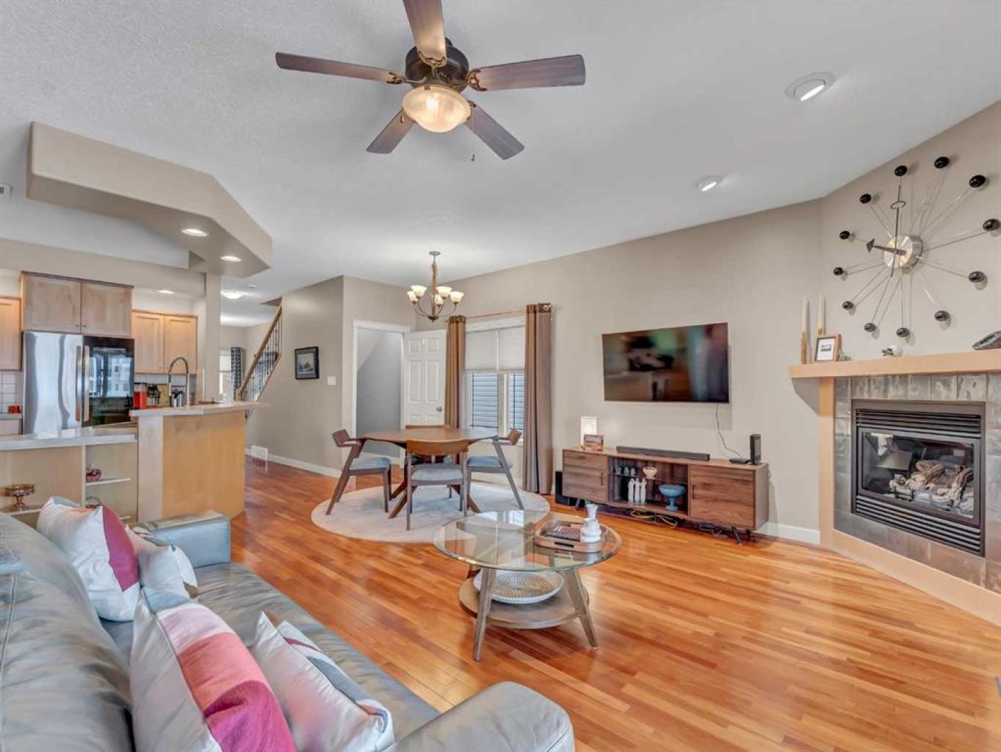 SPACIOUS HALF DUPLEX BACKING ONTO GREEN SPACE! A must-see, this well-maintained, move-in-ready home is located in a mature community close to schools, parks, and walking paths. Enjoy quick access to many of the city’s favourite restaurants, shopping, and major travel routes, while being only a short walk from all the amenities of the Medicine Hat Mall. This home features a modern, spacious layout and numerous recent updates. The open-concept main floor boasts 9-foot ceilings and includes a welcoming living room with a cozy gas fireplace, a large kitchen, and a dining area—all overlooking the beautiful backyard and peaceful green space beyond. Whether you’re enjoying your morning coffee or winding down in the evening, the relaxing views create a calm and inviting atmosphere throughout the main living area. The kitchen offers maple cabinetry, a walk-in pantry, newer stainless steel appliances, and a functional island with upgraded fixtures, including a Blanco sink. Beautiful hardwood flooring throughout this space creates a warm and cohesive look. Also on the main level is a spacious, welcoming foyer with an entry closet, a convenient flex space/boot room, a 2-piece bathroom, and access to the attached oversized single garage, which is fully drywalled, insulated, painted, and equipped with upper storage shelving. Upstairs features recently replaced carpet throughout. The primary bedroom includes a huge walk-in closet and a full ensuite complete with a shower and a deep jetted soaker tub. Two additional generously sized bedrooms, a 4-piece bathroom, and a large laundry room with plenty of cabinetry and shelving, along with a clothing hanging rod complete the upper level. The fully renovated lower level offers new flooring, paint, and upgraded ceiling finishes, along with a modern 2-piece bathroom featuring a new vanity, Toto toilet with bidet, and plumbing roughed-in for the addition of a shower or tub if desired. The oversized open rec room provides the perfect space for family movie nights, kids’ playtime, or gathering with friends to relax and unwind. Outside, the yard is fully fenced and landscaped with the convenience of underground sprinklers. A large covered deck off the living room includes a gas BBQ with a dedicated gas line and a retractable sun/wind screen—an ideal spot for summer BBQs, quiet evenings, or simply enjoying the peaceful green space views. Additional features include central vacuum, central A/C, a water softener, a humidifier, and custom blinds throughout. This is a fantastic home in a desirable location offering comfort, space, and a peaceful setting. Reach out to your favourite agent today for more information or to book your private showing.