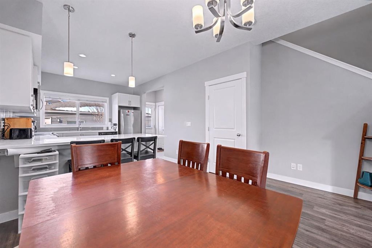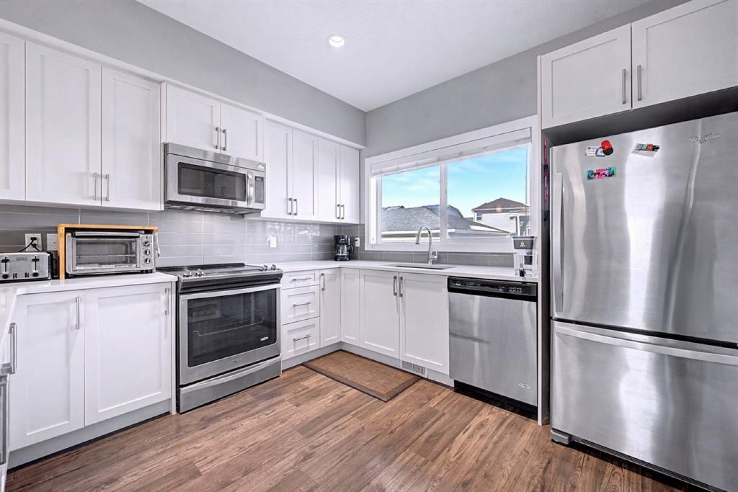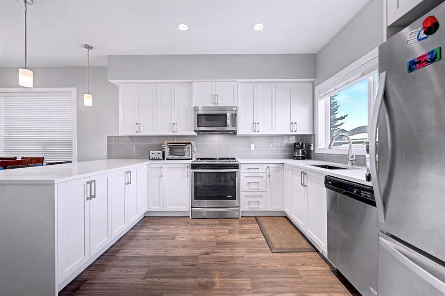 OPEN HOUSE, SAT (Mar 14) 1pm-4pm | Sunday (Mar 15) Open House CANCELED | NO CONDO FEES | END UNIT! | Welcome to this beautifully maintained end-unit 2-storey townhome with NO condo fees in the sought-after NW community of Nolan Hill, built by Shane Homes in 2015. Combining thoughtful design, modern finishes, and a functional layout, this home offers comfortable living with the added benefit of extra privacy as an end unit. Step inside to an inviting open-concept main floor where the bright living room is filled with natural sunlight from two large windows, creating a warm and welcoming atmosphere. The space flows seamlessly into the spacious dining area and well-appointed kitchen, perfect for both everyday living and entertaining. The kitchen features quartz countertops, stainless steel appliances, ample counter space, plenty of cabinetry, a breakfast bar, and a window overlooking the private backyard. Just off the kitchen you’ll find a convenient 2-piece bathroom, pantry, and direct access to the backyard, making outdoor gatherings and barbecues effortless. Upstairs, the home offers three comfortable bedrooms, including a bright primary retreat filled with natural light from two windows, complete with a walk-in closet and a private 3-piece ensuite. Two additional bedrooms, a 4-piece main bathroom, and stacked laundry conveniently located in the hallway complete the upper level. The fully finished basement offers approximately 617 sq. ft. of additional living space, featuring a 4-piece bathroom and plenty of storage, providing flexibility for a recreation area, home office, or additional living space. Step outside to enjoy your private fenced backyard, thoughtfully designed with both relaxation and functionality in mind. The yard features a beautiful crabapple tree, a concrete patio, and a wooden deck, creating the perfect space for summer barbecues, morning coffee, or relaxing evenings outdoors. The backyard also provides direct access to the double detached garage with convenient alleyway access, offering secure parking and additional storage. Located in the vibrant community of Nolan Hill, this home offers incredible convenience and lifestyle amenities. Enjoy nearby walking paths, scenic ponds, playgrounds, and green spaces, perfect for evening strolls, morning runs, or spending time outdoors with family and pets. Everyday essentials are just minutes away with Costco, restaurants, and shopping centres only about 5 minutes away, while quick access to Stoney Trail makes commuting across the city simple and efficient. This is a fantastic opportunity to own a modern, move-in-ready home with no condo fees in one of Calgary’s desirable northwest communities. SELECT PHOTOS ARE VIRTUALLY STAGED.