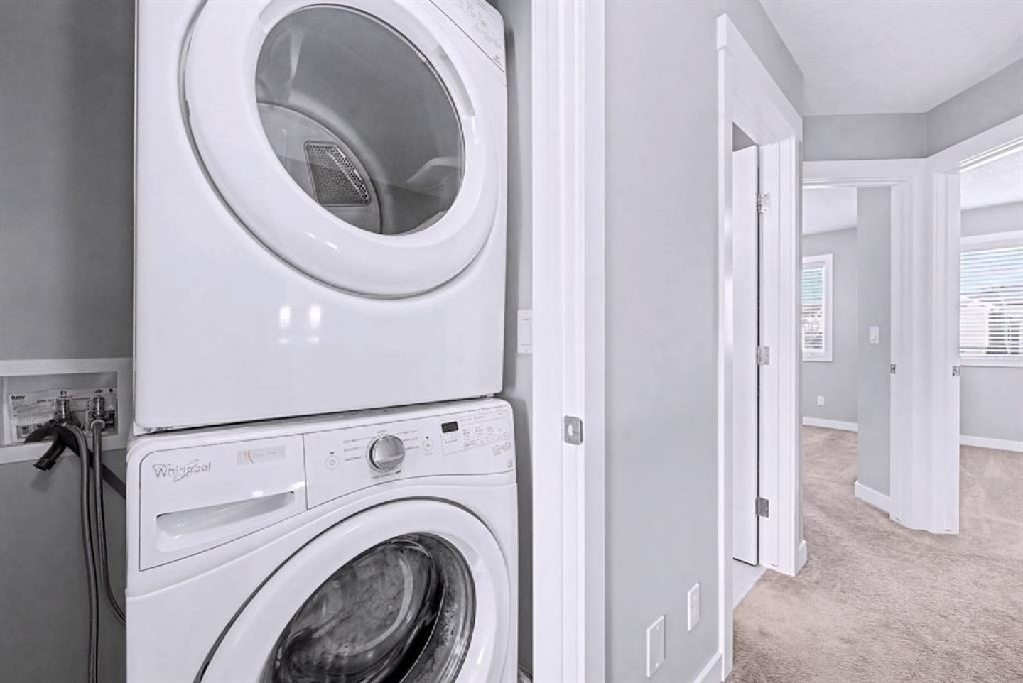 Dishwasher, Electric Cooktop, Electric Stove, Garage Control(s), Microwave Hood Fan, Refrigerator, Washer/Dryer Stacked, Window Coverings