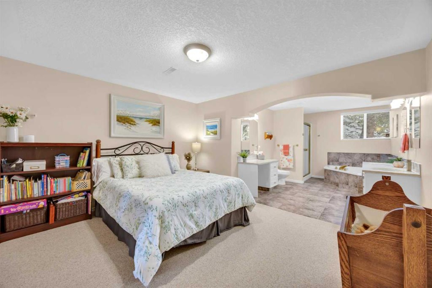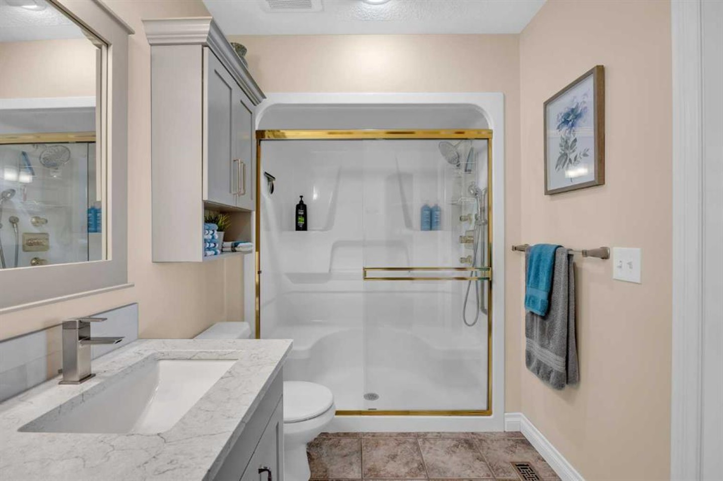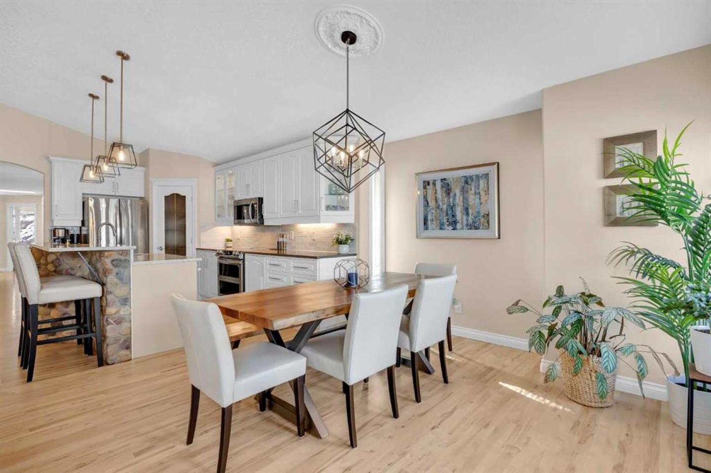 OPEN HOUSE March 21 & 22 from 1:00pm - 3:00 pm. A RARE Find! This Beautifully Renovated End-Unit Villa Bungalow with walkout basement offers over 2,600 sq ft of thoughtfully designed living space, complete with central A/C and an upgraded garage featuring Epoxy Floors. From the moment you step inside, a skylight fills the welcoming foyer with natural light, setting the tone for the bright, open feel throughout. Refinished hardwood floors flow seamlessly through the main living areas, creating a warm and inviting space that’s perfect for both everyday living and entertaining. The heart of the home is the open kitchen, dining and living room, perfect for gatherings. The Stunning kitchen is designed with both style and function in mind. Featuring Quartz countertops, Updated Cabinetry (2021), a Large Island, Walk-in pantry, and Stainless Steel Appliances (2021)—including an Induction Range with Double Ovens—this is a space any home chef will appreciate. Just off the dining area, step onto the balcony to enjoy your morning coffee or summer BBQs with the convenience of a Gas line. The main floor offers two generously sized bedrooms (one being used as an office), a convenient laundry room/bathroom with Custom Built-Ins, and excellent storage throughout. The Spacious Primary Suite is a true retreat, complete with vaulted ceilings, room for a king-sized bed and plenty of additional furniture, a walk-in closet, and a private ensuite with an oversized shower. Downstairs, the fully developed walkout basement is designed for comfort, connection, and flexibility. A large recreation room with a cozy fireplace, large windows and dedicated games area offers endless possibilities—from movie nights to fitness or family gatherings. Walk outside to a private patio and enjoy the peaceful setting of a large treed green space. A substantial third bedroom with its own private ensuite provides a comfortable and private space for guests. This Professionally Managed Complex offers a true lock-and-leave lifestyle, with lawn care and snow removal taken care of for you. With No Age Restrictions and Pet-Friendly living (board approval required), it’s a welcoming and connected community you’ll love to be part of. Additional highlights include: Beautifully updated main floor bathrooms with Custom Vanities and Quartz countertops, New lighting throughout, a High-Efficiency furnace and humidifier (2022), two Hot Water tanks and Central vacuum. Ideally located with easy access to major roadways, shopping, restaurants, and everyday amenities. Villa bungalows like this rarely come available—offering the perfect blend of comfort, space, and low-maintenance living in a well-established community. Book your private tour today!
