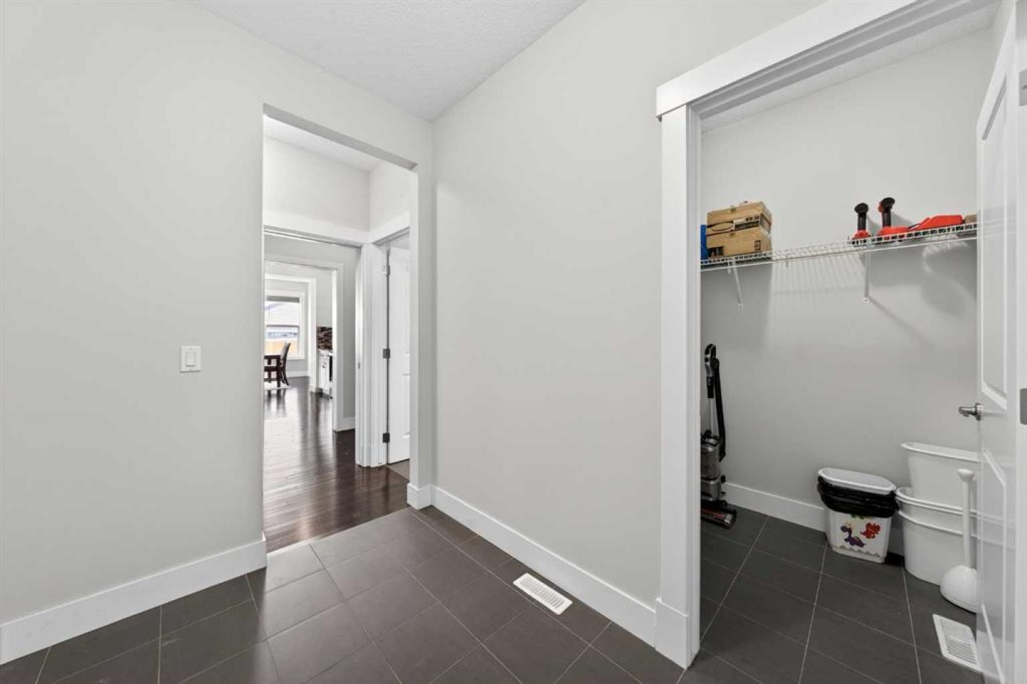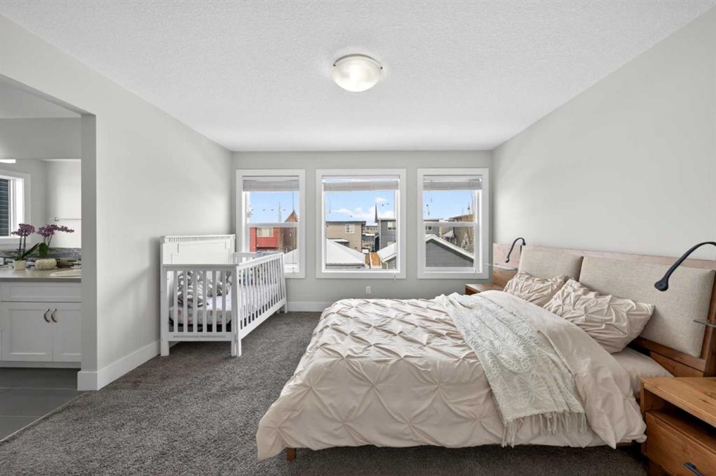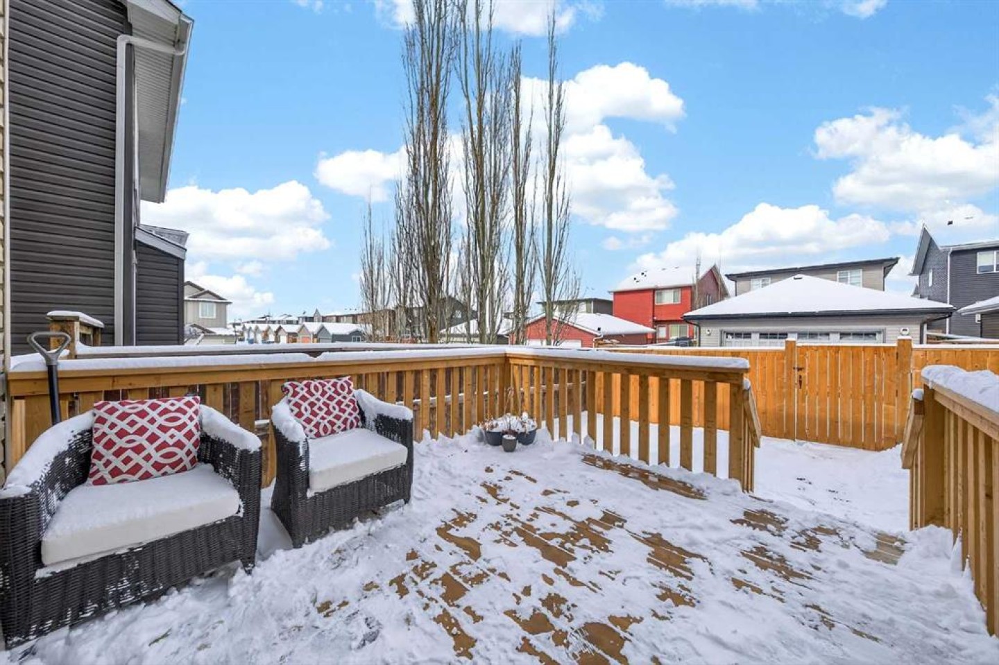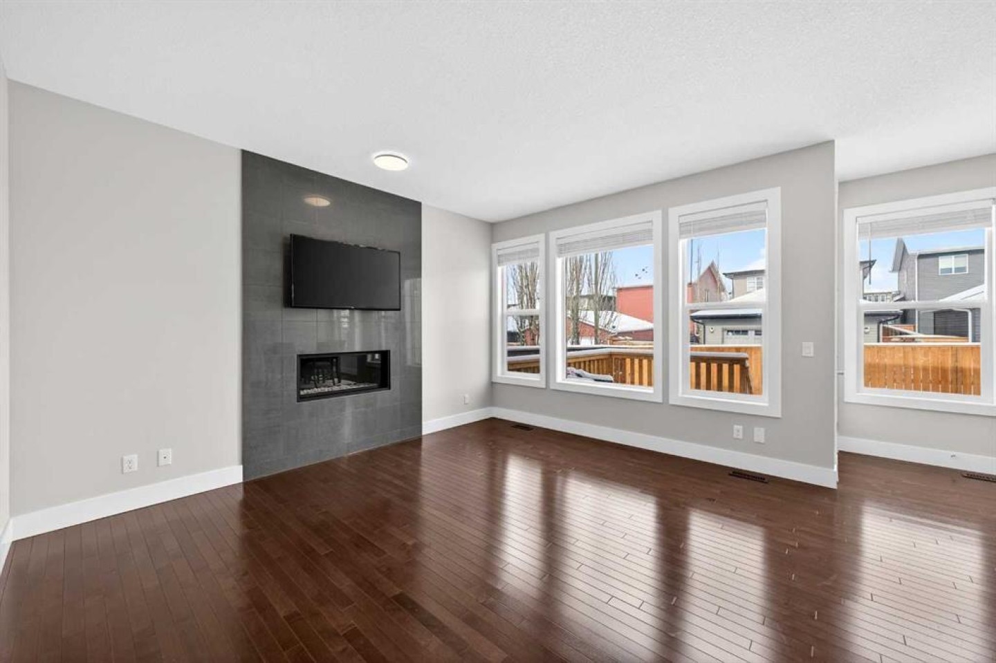 Welcome to this beautifully maintained family home in the sought-after community of Evanston, offering 4 bedrooms + Den, 2.5 baths, and over 2,400 sq ft of comfortable living space with thoughtful recent upgrades throughout. Step inside and discover elegant hardwood flooring throughout the main level and impressive 9-foot ceilings creating a bright, open atmosphere. The heart of the home is the chef-inspired Kitchen, designed for both style and function with abundant counter space, quartz countertops, breakfast bar, stainless steel appliances including newly purchased stove and fridge (Nov 2025), and a convenient walk-through pantry for added storage and easy flow. The spacious Living room is anchored by a cozy gas fireplace with tile surround, perfect for family gatherings and relaxing evenings. The generous Dining room features a door opening to the Deck, seamlessly blending indoor and outdoor living for entertaining. A French door Den provides the perfect private workspace or study—ideal for working from home. The upper level showcases an exceptional south-facing Bonus room with 9-foot ceilings and four windows bathing the space in warm natural sunlight—offering extra space for family entertainment, home theatre, or playroom. An elegant 5-piece bathroom with double vanity sits conveniently adjacent to the Bonus room. Three well-sized bedrooms follow, offering flexible space for family or guests. The luxurious Primary suite provides a peaceful retreat at the rear of the home, featuring a walk-in closet and a stunning 5-piece ensuite with double vanity, soaker tub, and separate shower. Upper-floor laundry adds everyday practicality. The unfinished basement is ready for your personal touch with bathroom rough-in and two large windows providing natural light—ideal for future development, recreation area, or additional storage. Step outside to your backyard with convenient back lane access, while an attached double garage offers ample parking and storage. Recent upgrades include 13 brand-new windows, new roof shingles, newly installed hot water tank (Jun 2025), and newly purchased kitchen appliances (Nov 2025)—ensuring peace of mind for years to come. Located in family-friendly Evanston, with schools, parks, playgrounds, soccer fields, and baseball diamonds all nearby. Shopping plazas offer everyday convenience just moments away, with easy access to 144 Avenue and major roadways for quick commuting across the city. This is a fantastic opportunity to own a well-maintained family home with modern upgrades in one of Calgary's most desirable Northwest communities!