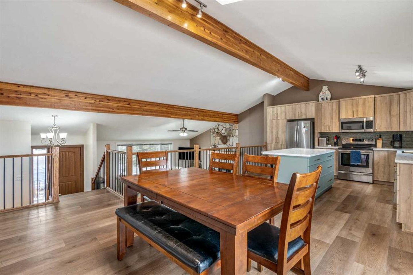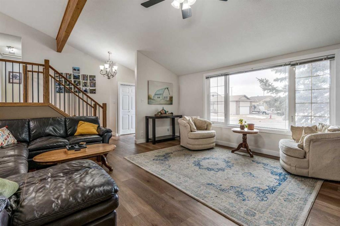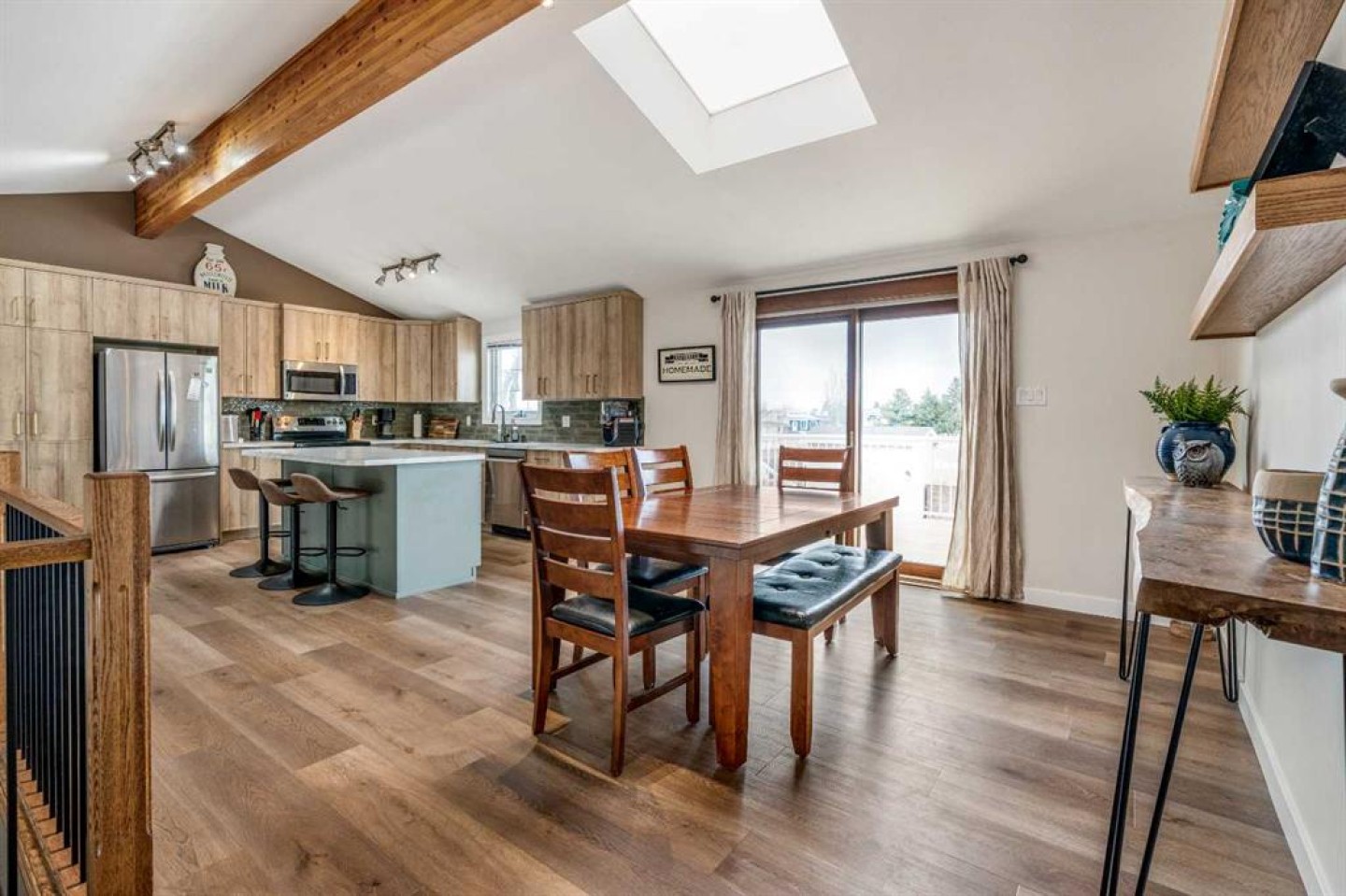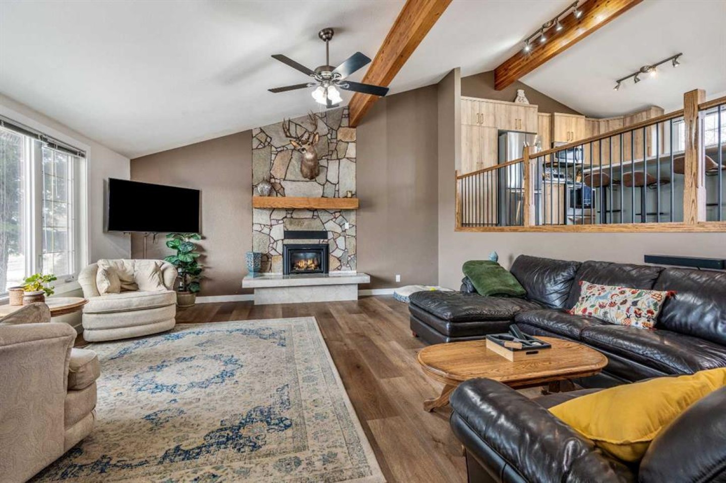 If you’ve been waiting for a home with space, personality, and zero backyard neighbors — this is it. Tucked onto a quiet street in Taber, backing onto a large green space, this 1,567 sq ft 4-level split delivers something rare: room to host, room to grow, and room to breathe. Let’s start where the memories are made. The lower level is an entertainer’s dream. A dedicated poker room complete with a full wet bar, keg fridge, and beer tap sets the stage for game nights and playoff runs. There’s space for friends, space for stories, and space to actually enjoy your home. And if priorities change? This easily converts back into a fifth bedroom. Flexibility lives here. Head downstairs and you’ll find the ultimate movie-and-gaming retreat — a cozy theatre-style space with a second gas fireplace and no windows to interrupt the vibe. Whether it’s late-night gaming, movie marathons, or a kids’ hangout zone, this level keeps the noise down and the fun contained. Now let’s talk first impressions. Walk in and you’re immediately greeted by soaring vaulted ceilings with exposed laminated beams and a stunning floor-to-ceiling natural stone gas fireplace. It feels grand. It feels open. It feels like home. Brand new vinyl plank flooring throughout the main floor and upper level (installed this fall) gives the space a fresh, modern feel from the moment you step inside. Upstairs is where family life comes together. The kitchen is completely redone and built for gathering — featuring a massive island with breakfast seating and a dining area that actually fits everyone. No squeezing past chairs. No cramped holiday dinners. Just space. From here, step out onto the huge patio — perfect for BBQs, summer evenings, and quiet morning coffee. This level also includes a full 4-piece bathroom, two generously sized bedrooms, and a spacious primary suite with a large closet and its own private ensuite. Four true bedrooms in total — the kind of sizes homes of this era are known and loved for. Functionality? Covered. The third level offers garage access with room to comfortably fit two half-ton trucks without worrying about door dings. There’s another bedroom, another full bathroom, laundry, and walkout access to the backyard. And the backyard… this is where it gets even better. Fully fenced, backing onto green space (so no rear neighbors — ever), alley access, a large shed, concrete patio, and a natural wind break created by the home’s positioning. Even on windy Taber days, this yard stays calm and usable. Major updates are already done: • Roof shingles (2021) • Hot water on demand (2019) • Patio and front door (2020) • Kitchen Reno (2025/26) • Flooring (2025/26) Located close to schools, the off-leash dog park, trout pond, downtown amenities, and quick highway access — everything you need is minutes away. This isn’t just a house. It’s a place to host. A place to unwind. A place to grow into. And homes with this much personality — backing onto green space — don’t come along often.
