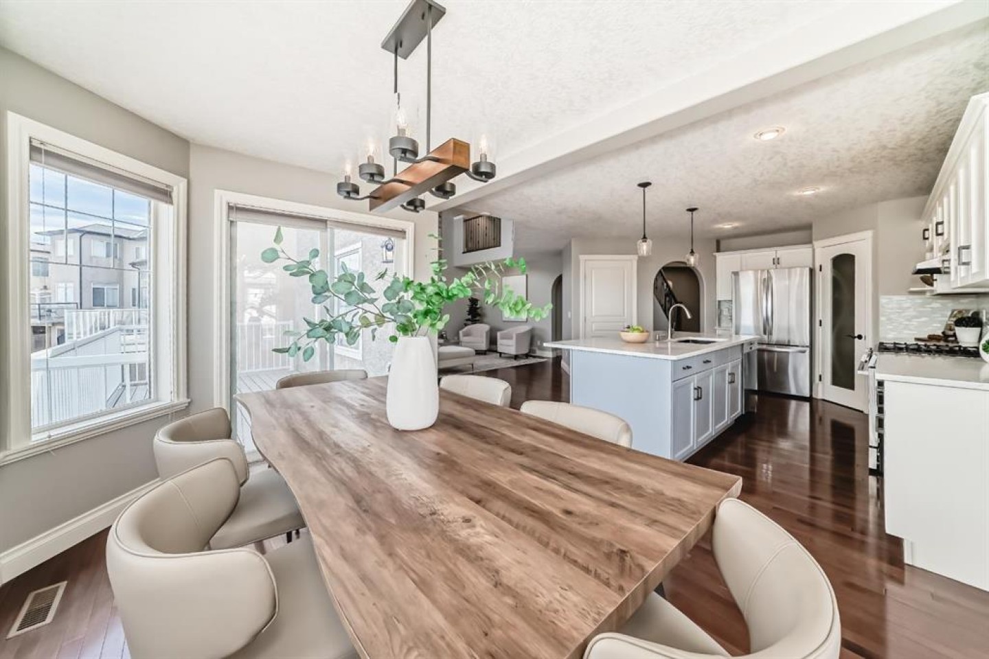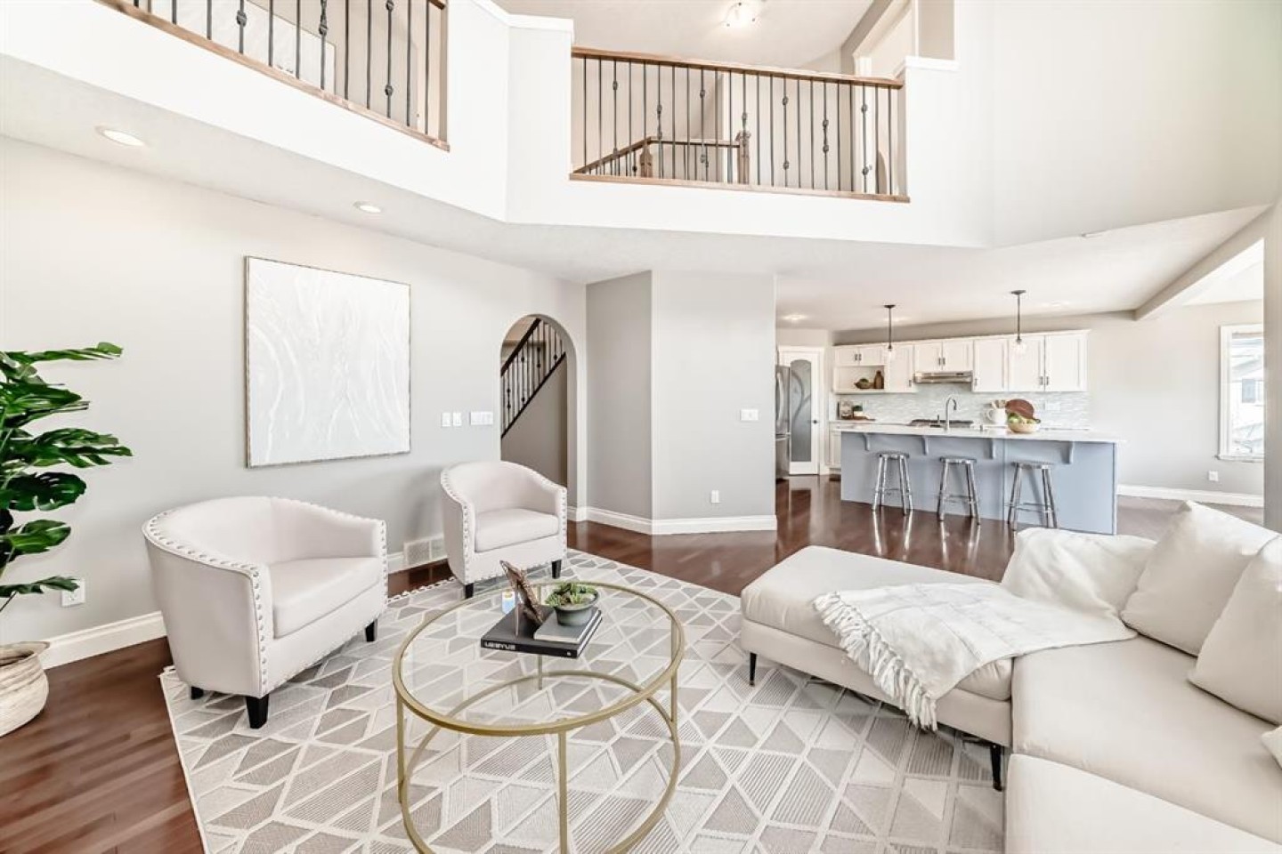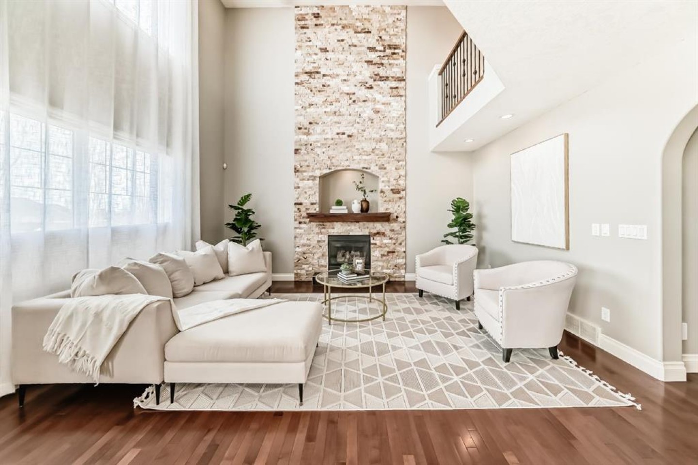 Welcome to this beautiful, bright, 2-storey walkout home with over 3000 square feet of finishing living space in the highly sought-after community of Sherwood. The bright main floor is filled with natural light and features a amazing living room with soaring two-storey windows and a breathtaking floor-to-ceiling stone fireplace. The thoughtfully designed layout also includes a formal dining room with elegant archways and columns, a home office with bay window, and a cozy dining nook with French doors leading to the backyard. The spacious kitchen is equipped with upgraded granite countertops, a centre island with raised eating bar, and all brand new premium appliances, making it ideal for family gatherings and entertaining. Upstairs you will find three generously sized bedrooms, a flexible bonus space, and a full bathroom. The large primary suite features a walk-in closet and a bright 5-piece ensuite with bay windows, a separate shower, and a classic clawfoot tub. The fully finished walkout basement includes a fourth bedroom, full bathroom, and a large entertainment/media room with a custom wet bar and granite counters, perfect for hosting family and friends. Upgrades include updated kitchen and bathroom counters, hardwood and tile flooring, air conditioning, all new appliances, and a new roof (2025). The fully landscaped and fenced backyard features a maintenance-free deck, creating a perfect outdoor space to relax or entertain. Ideally located close to top schools, scenic pathways and ravines, shopping, restaurants, golf courses, Costco, Canadian Tire, public transit, and with easy access to Stoney Trail and Calgary International Airport. A rare opportunity to own a beautiful walkout home in one of NW Calgary’s most desirable family communities.