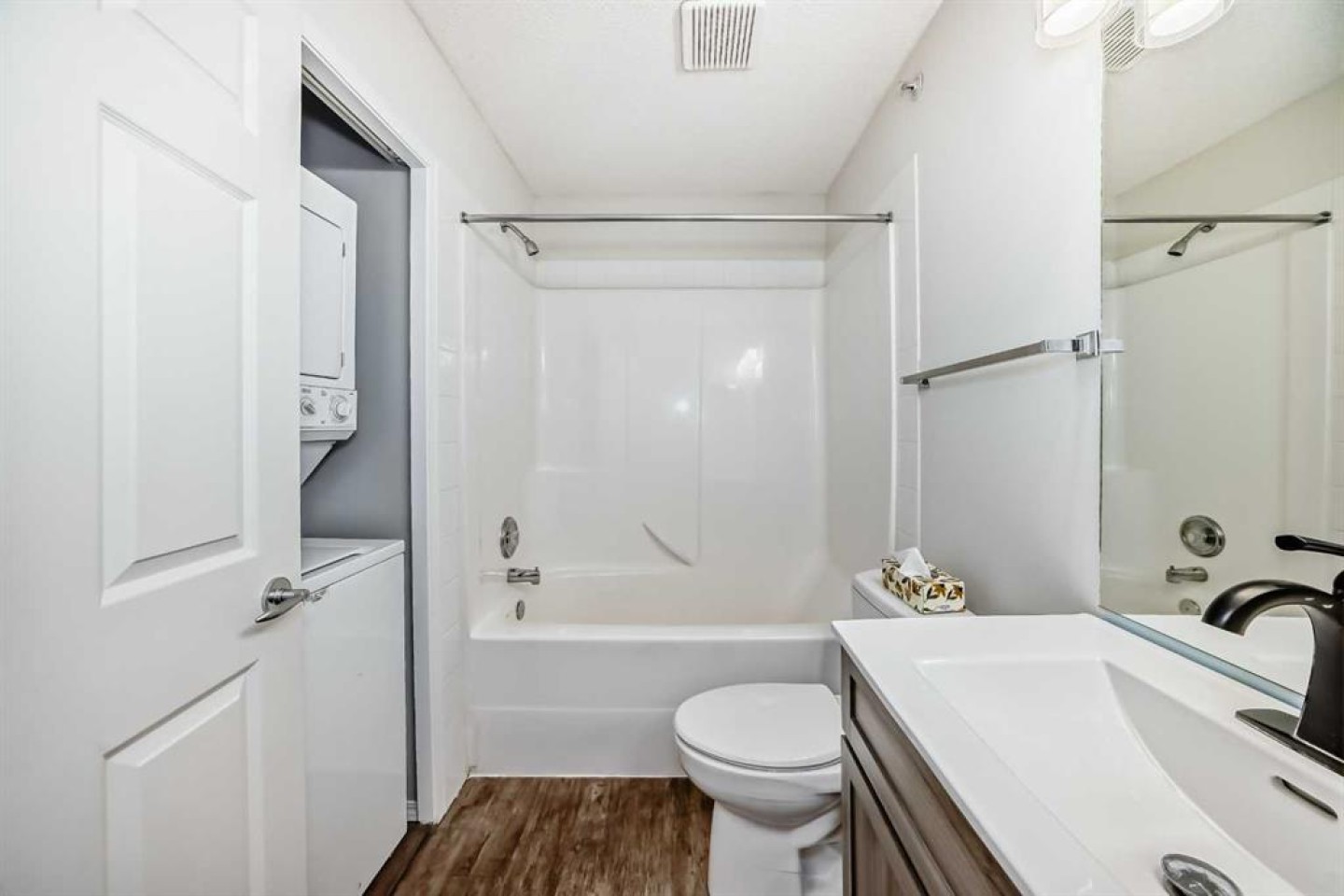 Dishwasher, Microwave, Refrigerator, Stove(s), Washer/Dryer Stacked