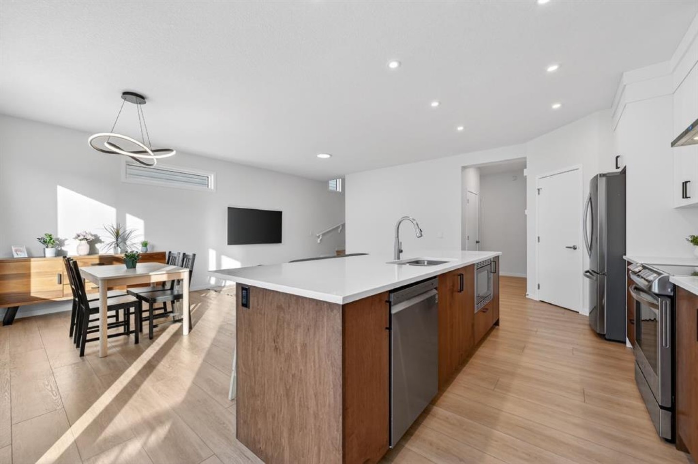 Welcome to 19 Rowley Park, located just moments away from walking paths, the river valley and the impressive Rockland Park Homeowners Association recreation facilities with outdoor heated pool and hot tub, full size and maintained hockey rink and skating paths, pickle ball courts, a pond, and more! This better than new 2-storey home offers more than 2500 SQFT of living space and is in pristine condition PLUS its located in Phase One, so no construction next door. With a welcoming front entrance, practical mudroom, and a bright and open great room with a beautiful and well-appointed kitchen, dining room, and living room, plus a main floor powder room, this is a great house for those who like to entertain in comfort and enjoy those perfect quiet family nights. The upper level offers a bonus room, large primary suite with huge ensuite and walk-in closet, two bedrooms, laundry room, and a full bathroom. The lower level has an additional family or recreation space, a flex room perfect for exercise, office, playroom or as a 4th bedroom, a full bath, and a large and very well-organized utility and storage room. This is an ideal home for those looking to be in this new community without having to deal with the added expense and timeline of building—already fenced and landscaped with a west facing back yard and is move-in ready with upgraded features including luxury vinyl plank flooring, triple pane windows, water softener and central AC! Quick access to Stoney Trail, schools, the mountains, and the farmer’s market. Practical and beautiful, and waiting for YOU!
