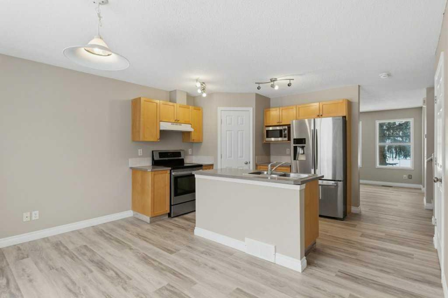 Location, Location, Location! Welcome to this well-maintained and updated 2-storey semi-detached duplex offering almost 1,900 sq. ft. of developed living space across three levels in one of the most desirable pockets of Coventry Hills. Ideally situated on a quiet street directly across from a large park, playground, basketball court, and community garden, this home offers a peaceful setting while remaining close to everyday amenities. This is 4-bedroom, 1.5-bathroom home with NO CONDO FEES features a bright and functional layout perfect for families. The main floor offers a spacious living room filled with natural light from large windows. The open-concept kitchen and dining area includes stainless steel appliances, a convenient sit-up island, and a corner pantry providing plenty of storage for groceries and kitchen essentials. Upstairs you’ll find three generously sized bedrooms and a full bathroom, including a spacious primary bedroom with a walk-in closet. The additional two bedrooms offer great flexibility for children, guests, or a home office. The fully finished LEGAL BASEMENT adds valuable living space, featuring a large recreation room and an additional spacious bedroom, ideal for guests, a teenager’s retreat, home office, or a home gym. Step outside to enjoy the private backyard with plenty of space and the potential to build a double detached garage, adding even more value to this property. Recent updates include fresh interior paint, ew luxury vinyl plank flooring and baseboards on the main floor (2026), new roof, hot water tank and dryer all updated in (2025) providing comfort and peace of mind. Conveniently located within walking distance to schools and daycare within the block (no road crossing required) and just minutes from shopping, transit, the Vivo Recreation Centre, Deerfoot Trail, and Stoney Trail. A fantastic opportunity for families or first-time buyers—book your private showing today!