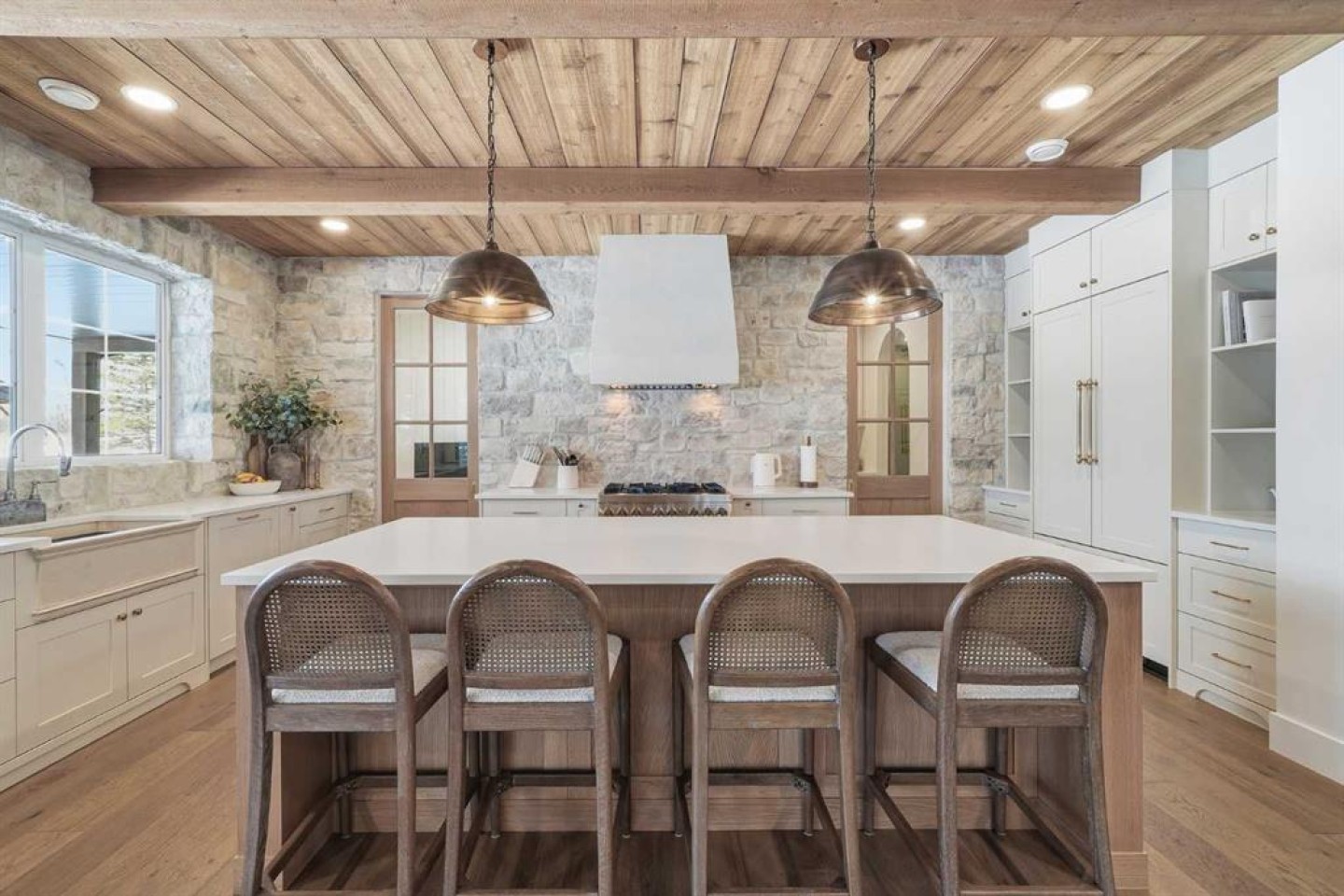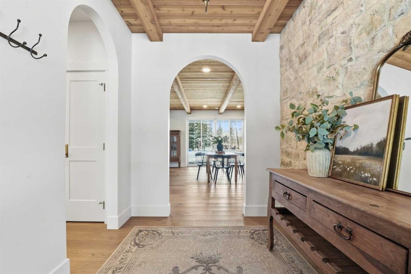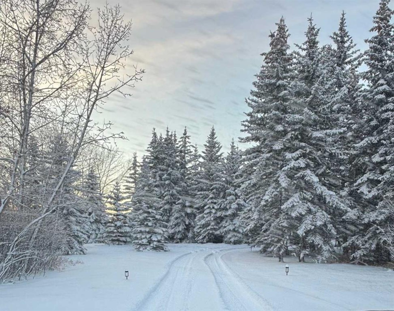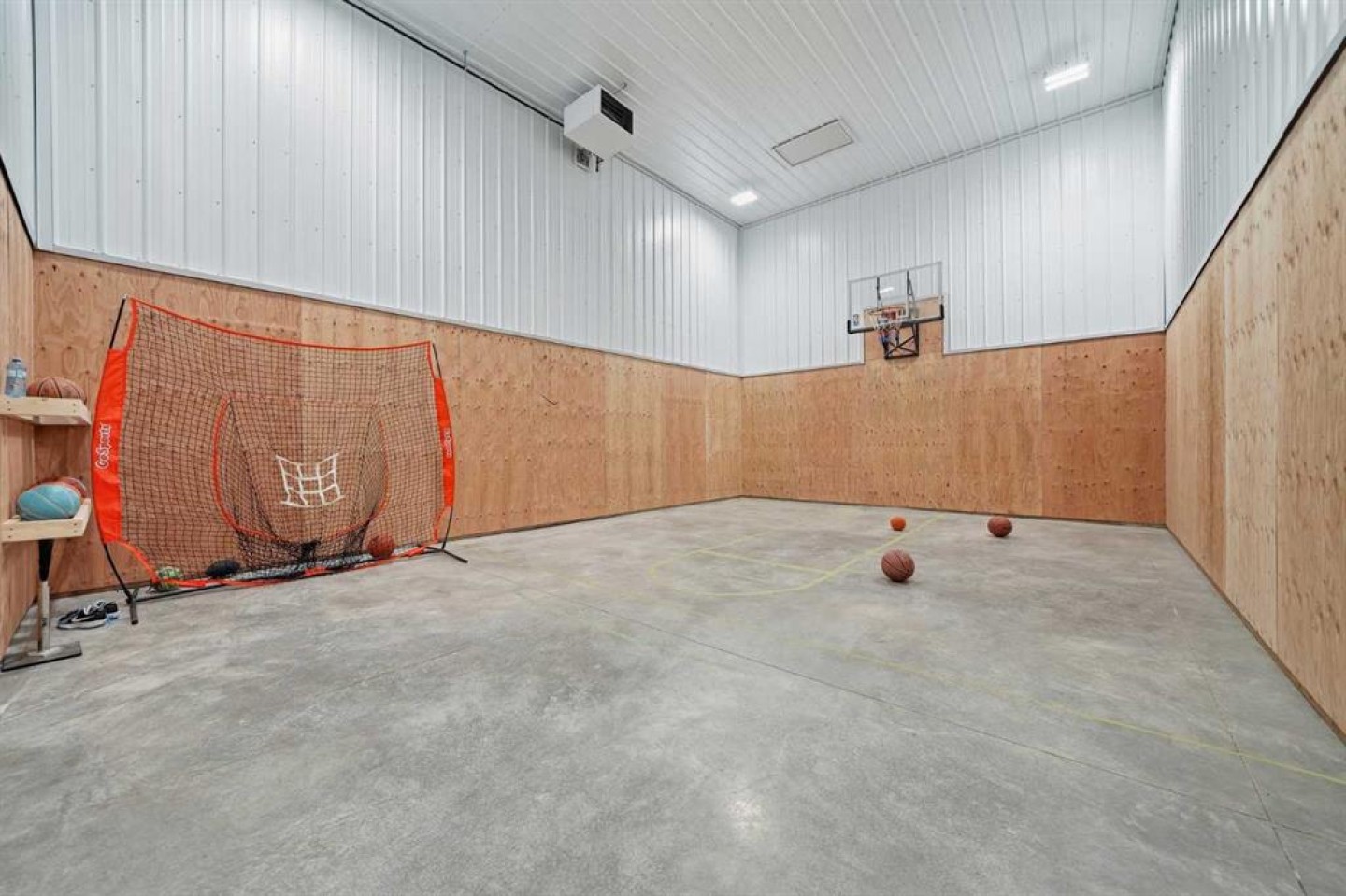 Minutes from Okotoks. Miles from ordinary. Set on 3.85 beautifully landscaped acres, this exceptional 2024-built luxury estate offers a rare blend of refined craftsmanship, resort-style amenities, and private acreage living just minutes from town. The 3590sq ft main residence showcases elevated modern farmhouse design with natural textures, architectural details, and curated finishes throughout. At the heart of the home, a stunning designer kitchen features a white oak island, Consentino suede-finish quartz countertops, JennAir cabinet-front appliances, stone farmhouse sink, dual drawer fridges, and a custom wine room with cedar and shiplap finishes — designed equally for everyday living and entertaining. Thoughtful details continue with custom cabinetry throughout, Emtek French Antique hardware, cedar beams and ceilings, stone accents, and Raintree waterproof engineered hardwood floors. The main living space is anchored by a striking stone wood-burning fireplace, creating warmth and character. The home offers 5 bedrooms and 3.5 bathrooms, including a luxurious primary retreat with spa-inspired ensuite and custom walk-in closet, while every bedroom features walk-in closets with built-ins. A bonus room, second-floor laundry, sauna room, walk-in pantry, and custom mudroom add comfort and functionality. Outside, the property transforms into a private resort-style retreat with a 16x34 heated pool, hot tub, covered exposed concrete patio, pool shed, and a charming all-cedar outdoor bathroom and change room. The fully fenced acreage is professionally landscaped with trees, sod, and mulch, while Gemstone architectural lighting beautifully illuminates the home and shop. A 40x60 shop with lean-to adds incredible versatility, featuring a 600 sq ft finished upper loft with games area, kitchenette, and bathroom, plus a sport court! The property also includes a separate 450 sq ft private guest house (built 2025) with its own septic system, bedroom, bathroom, and kitchenette, ideal for guests, multi-generational living, an office or Airbnb potential. (currently runs as a lucrative air bnb) Built for long-term efficiency and durability with metal siding, Euroshield shingles (50+ year warranty), metal roofing, triple-pane windows, spray foam insulation, in-floor heating, and a water filtration system. A truly exceptional Foothills property where luxury, lifestyle, and location come together.