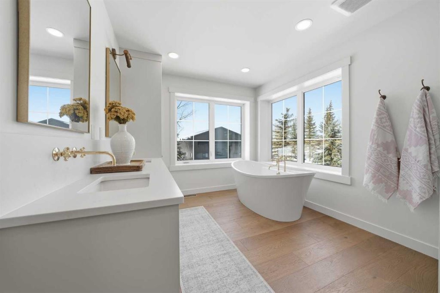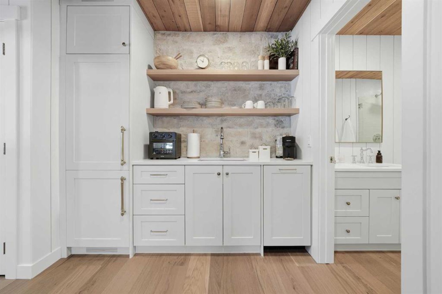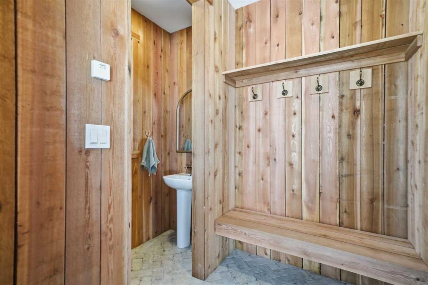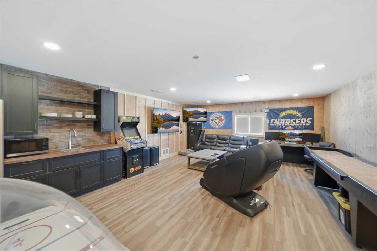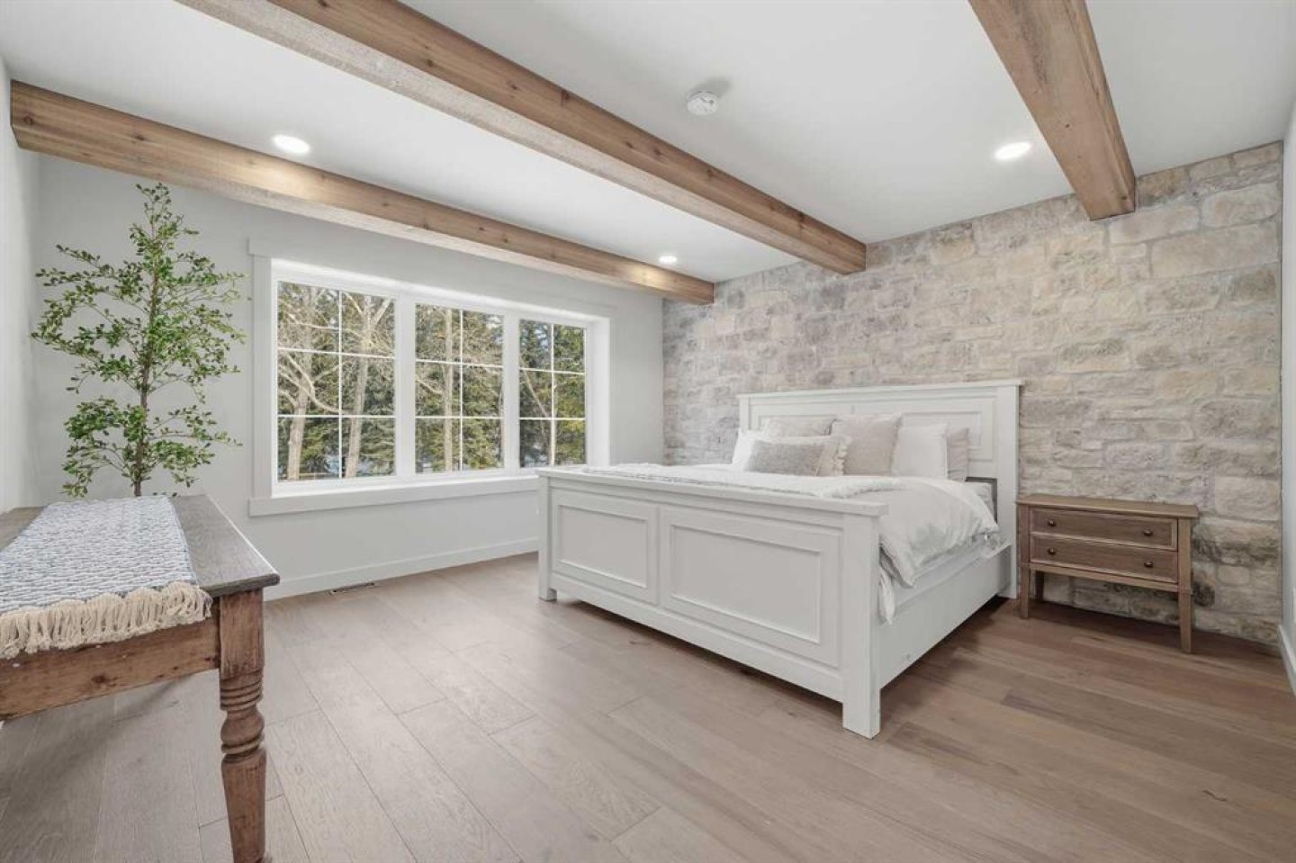Minutes from Okotoks. Miles from ordinary. Set on 3.85 beautifully landscaped acres, this exceptional 2024-built luxury estate offers a rare blend of refined craftsmanship, resort-style amenities, and private acreage living just minutes from town. The 3590sq ft main residence showcases elevated modern farmhouse design with natural textures, architectural details, and curated finishes throughout. At the heart of the home, a stunning designer kitchen features a white oak island, Consentino suede-finish quartz countertops, JennAir cabinet-front appliances, stone farmhouse sink, dual drawer fridges, and a custom wine room with cedar and shiplap finishes — designed equally for everyday living and entertaining. Thoughtful details continue with custom cabinetry throughout, Emtek French Antique hardware, cedar beams and ceilings, stone accents, and Raintree waterproof engineered hardwood floors. The main living space is anchored by a striking stone wood-burning fireplace, creating warmth and character. The home offers 5 bedrooms and 3.5 bathrooms, including a luxurious primary retreat with spa-inspired ensuite and custom walk-in closet, while every bedroom features walk-in closets with built-ins. A bonus room, second-floor laundry, sauna room, walk-in pantry, and custom mudroom add comfort and functionality. Outside, the property transforms into a private resort-style retreat with a 16x34 heated pool, hot tub, covered exposed concrete patio, pool shed, and a charming all-cedar outdoor bathroom and change room. The fully fenced acreage is professionally landscaped with trees, sod, and mulch, while Gemstone architectural lighting beautifully illuminates the home and shop. A 40x60 shop with lean-to adds incredible versatility, featuring a 600 sq ft finished upper loft with games area, kitchenette, and bathroom, plus a sport court! The property also includes a separate 450 sq ft private guest house (built 2025) with its own septic system, bedroom, bathroom, and kitchenette, ideal for guests, multi-generational living, an office or Airbnb potential. (currently runs as a lucrative air bnb) Built for long-term efficiency and durability with metal siding, Euroshield shingles (50+ year warranty), metal roofing, triple-pane windows, spray foam insulation, in-floor heating, and a water filtration system. A truly exceptional Foothills property where luxury, lifestyle, and location come together.