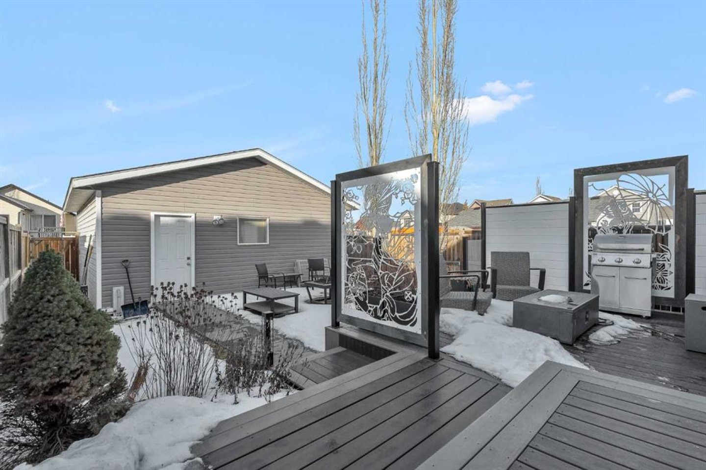 Welcome to 210 Copperstone Grove — a home that feels inviting the moment you step inside. Beautifully renovated, thoughtfully designed, and meticulously maintained, this former Jayman-built bi-level is truly easy to love. Tucked away on a quiet cul-de-sac and located directly across from a playground, it offers an ideal setting for families and peaceful everyday living. The main level features two bedrooms and a fully renovated central kitchen that is truly a chef’s delight, complete with a large island that’s perfect for gathering and entertaining. The primary bedroom boasts an impressive custom-designed closet, while brand-new carpeting in the bedrooms and a beautifully renovated main bathroom add modern comfort. Stylish new laminate flooring flows seamlessly throughout both the main level and the basement. Downstairs, the spacious basement bedroom stands out with custom detailing and thoughtful design. A beautifully finished four-piece bathroom and unique custom ceiling panels — easily removable — enhance the space while still providing excellent access to storage. Step outside to enjoy the west-facing backyard, featuring upgraded landscaping, a raised deck, and a firepit — perfect for summer BBQs or relaxing evenings under the stars. The insulated 22' x 24' detached double garage offers ample parking and additional storage. This energy-efficient Jayman home includes money-saving features such as a high-efficiency furnace, direct-vent hot water heater, extra insulation, moisture control, and quality building materials throughout. Located in the welcoming community of Copperfield, you’ll appreciate the family-friendly atmosphere, nearby schools, parks, and community amenities, along with convenient access to public transit, Calgary’s Ring Road, and Deerfoot Trail. This beautiful home is ready to welcome its next owners — welcome home.