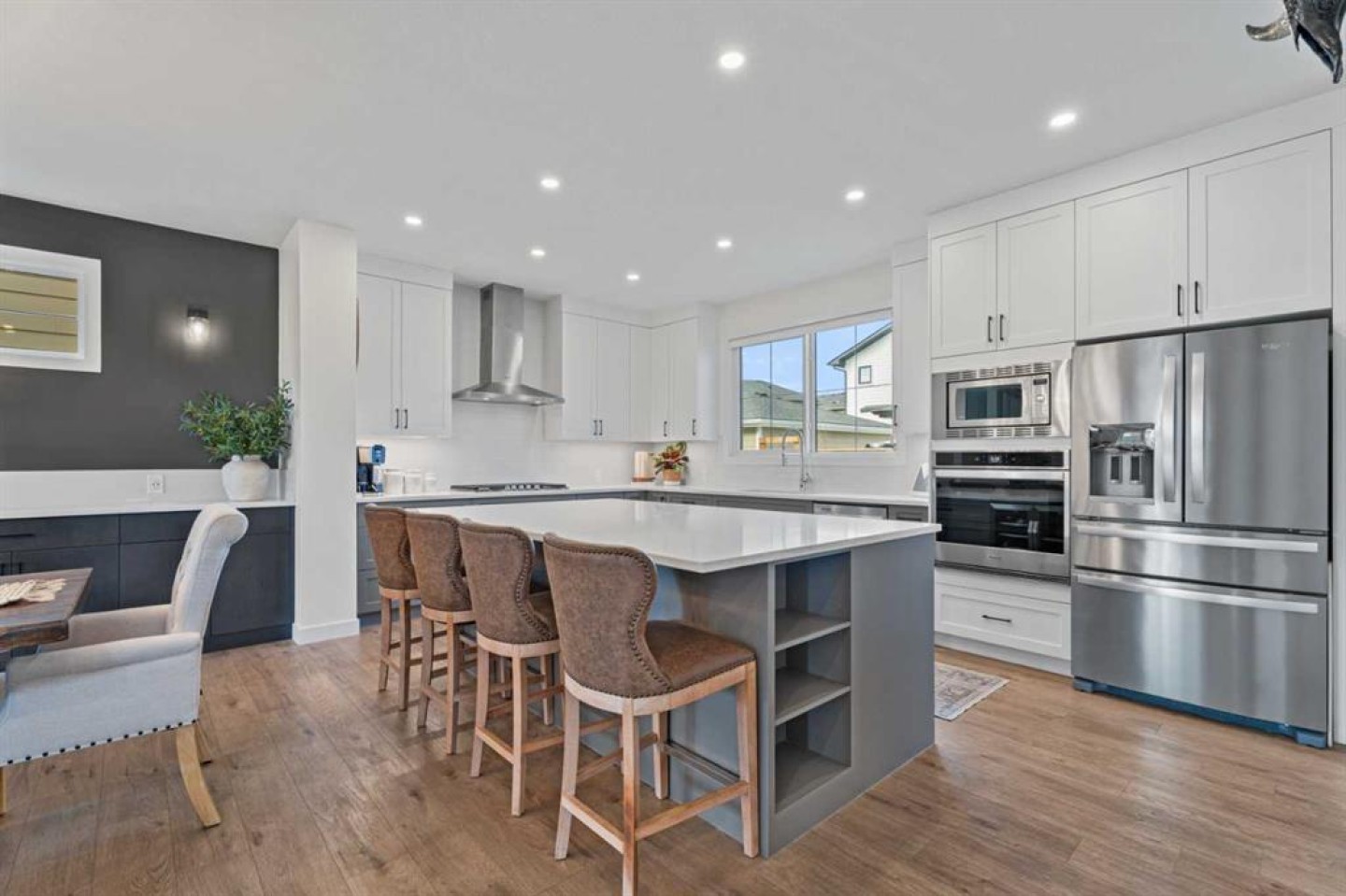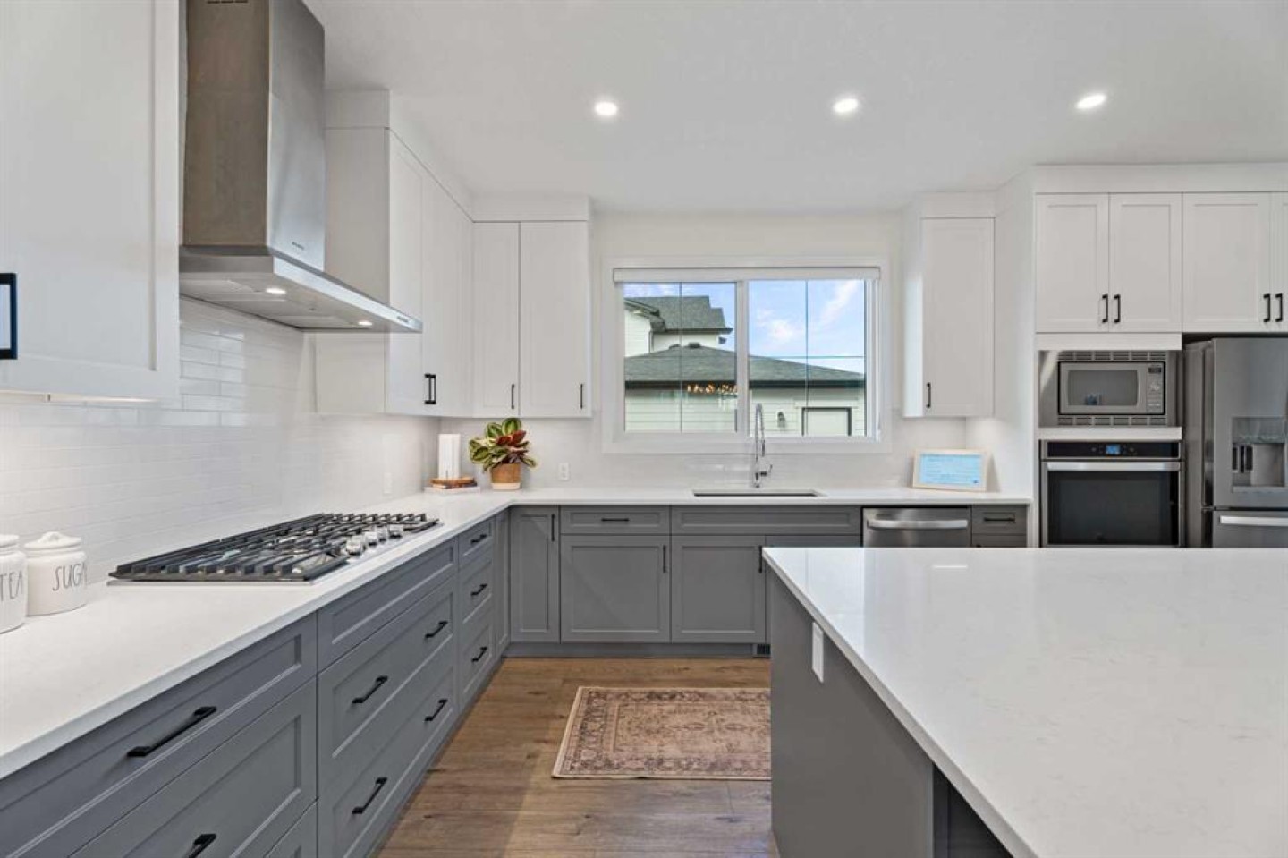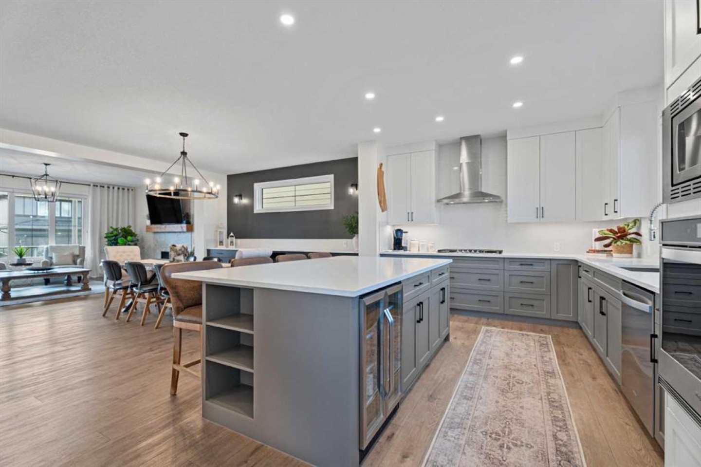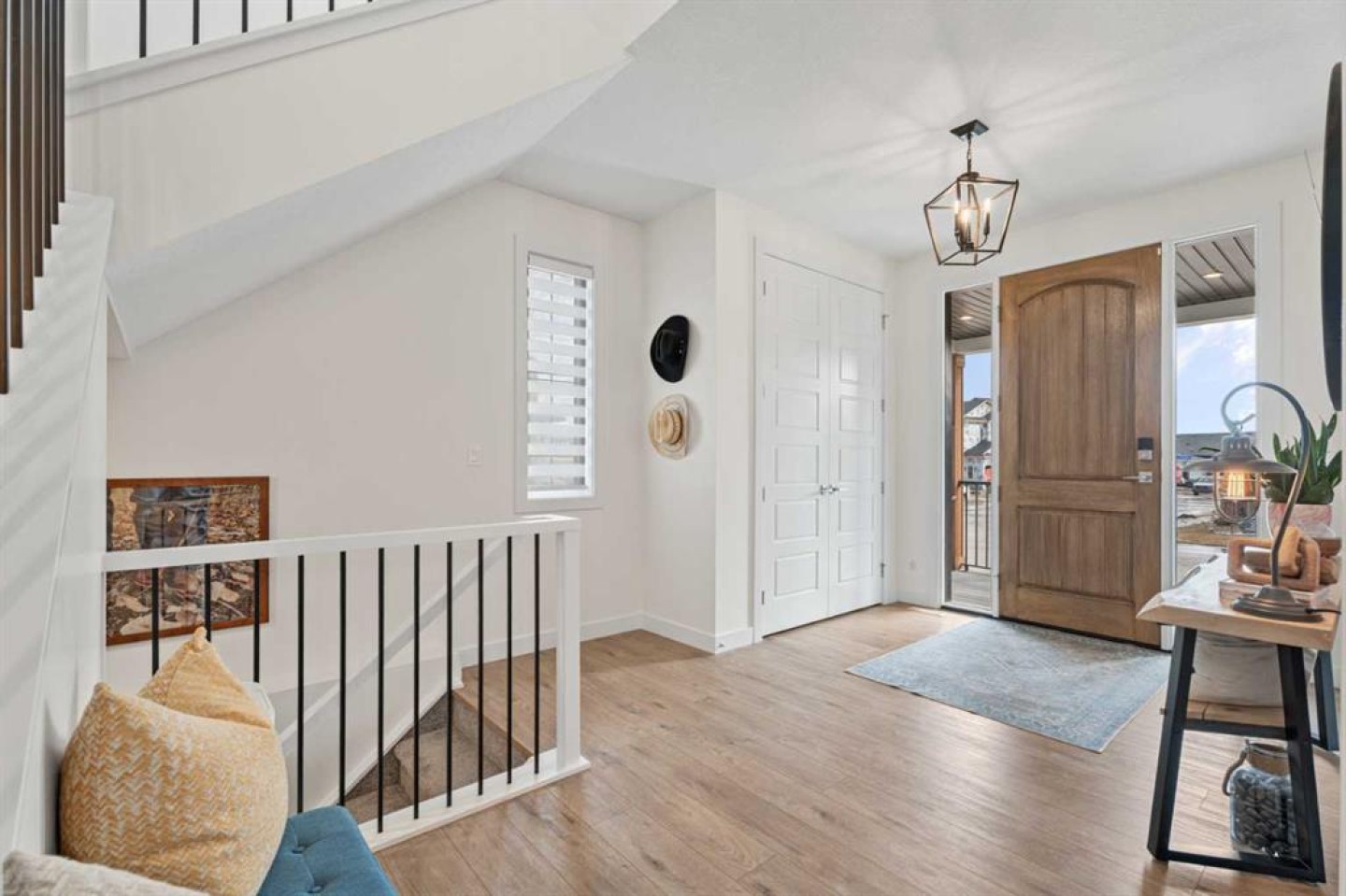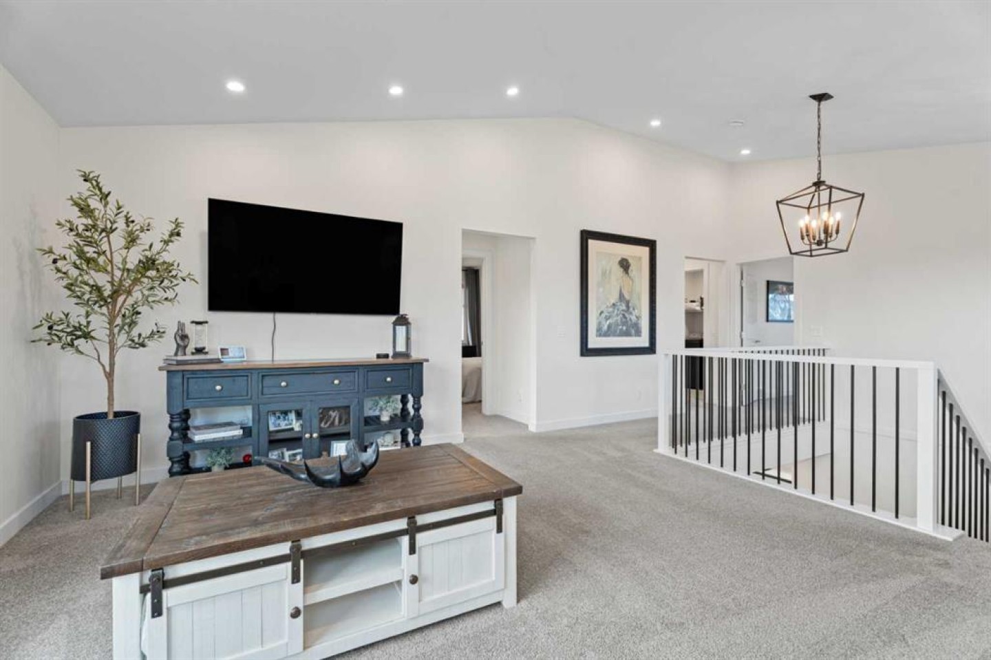 OPEN HOUSE Sunday March 22nd, 12:00-2:00. Welcome to this stunning, like new home in the award winning community of Harmony, located just 8 minutes west of Calgary. Set in the heart of Springbank, Harmony offers an exceptional lifestyle with a sparkling lake, world class golf, and breathtaking Rocky Mountain views. Situated on a desirable corner lot, this home offers incredible curb appeal with a spacious front porch that welcomes you into a bright and inviting foyer. The main level features an open concept floorplan with luxury vinyl plank flooring throughout, creating a seamless and modern flow. The living room is warm and inviting with a gas fireplace, while the expansive dining area includes additional built in cabinetry for extra storage and function. The kitchen is a true highlight, complete with a large island, stainless steel appliances, built in oven, gas cooktop, bar fridge, and a walk in pantry, perfect for both everyday living and entertaining. The rear mudroom leads to the backyard, featuring a deck, hot tub, and gate access for additional parking. A half bathroom completes this level. Upstairs, you will find a spacious bonus room filled with natural light, enhanced by extra windows thanks to the corner lot. The primary retreat is oversized and features a luxurious 5 piece ensuite and a massive walk in closet that connects directly to the upper level laundry room. Two additional bedrooms and a full 4 piece bathroom complete this level. The fully finished basement provides even more living space with a large recreation area ideal for a home gym or office, an additional bedroom, and a 3 piece bathroom. The double detached oversized heated garage offers plenty of room for vehicles, storage, or a workspace. With an abundance of windows throughout, this home is bright, airy, and beautifully maintained. A perfect combination of style, function, and location in one of the most sought after communities just outside of Calgary. Check out the 3D tour, and book your private viewing today!