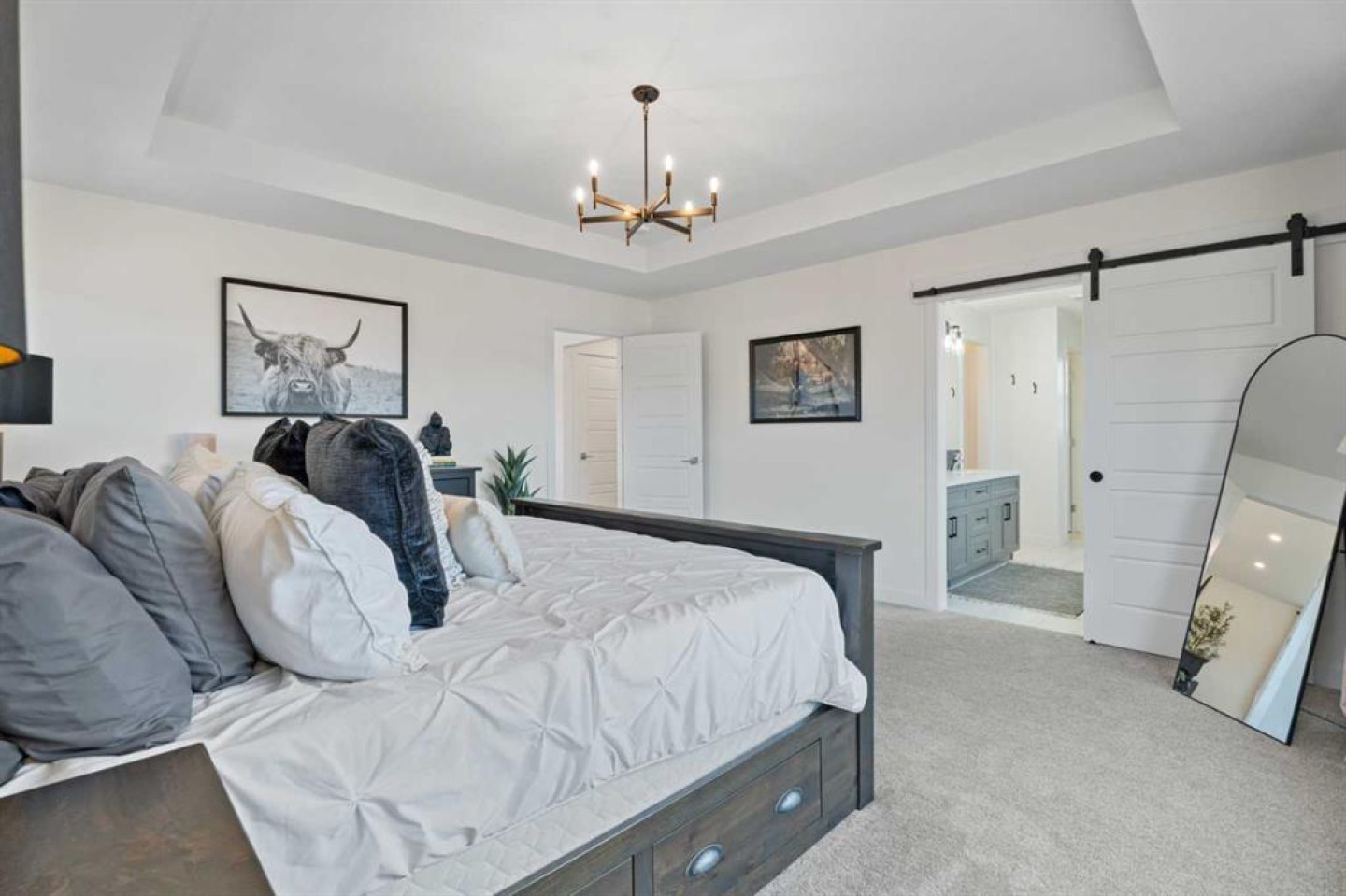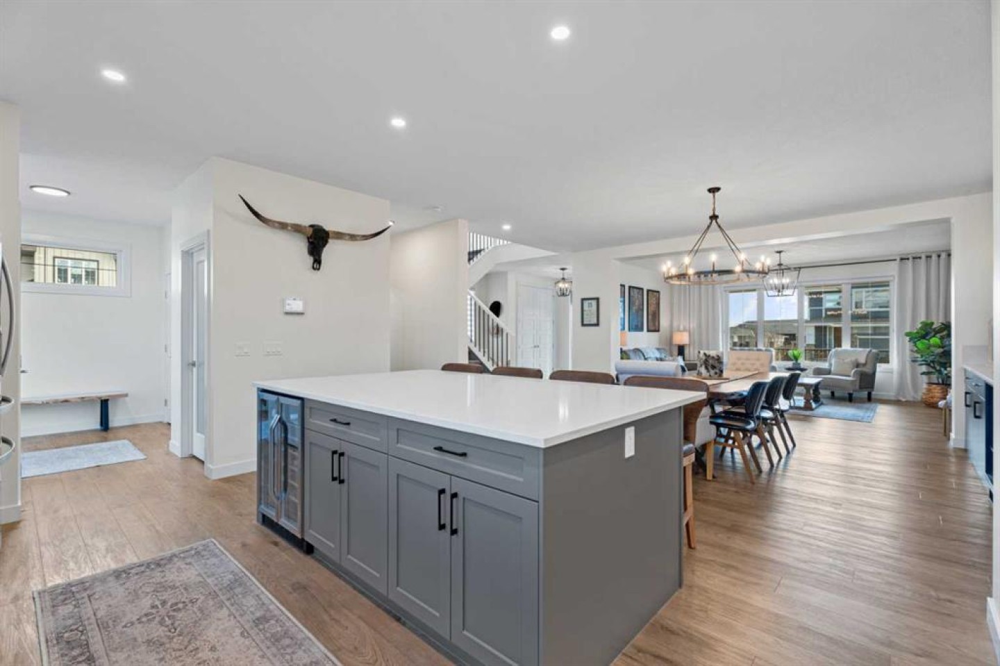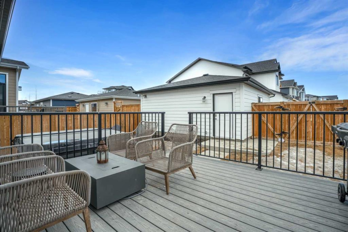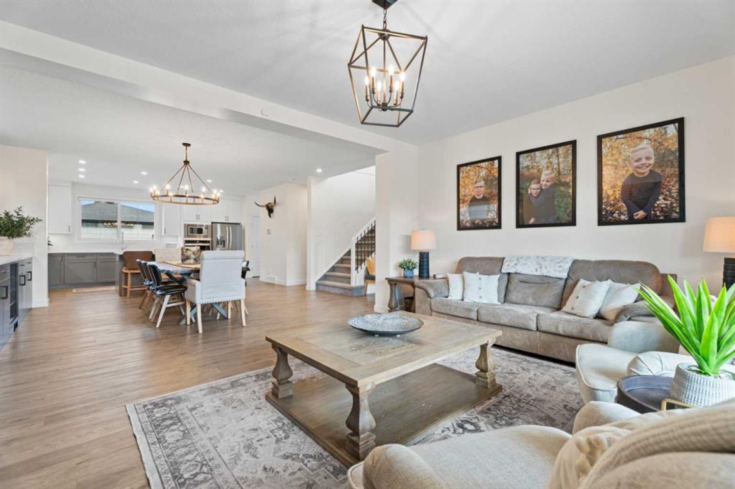OPEN HOUSE Sunday March 22nd, 12:00-2:00. Welcome to this stunning, like new home in the award winning community of Harmony, located just 8 minutes west of Calgary. Set in the heart of Springbank, Harmony offers an exceptional lifestyle with a sparkling lake, world class golf, and breathtaking Rocky Mountain views. Situated on a desirable corner lot, this home offers incredible curb appeal with a spacious front porch that welcomes you into a bright and inviting foyer. The main level features an open concept floorplan with luxury vinyl plank flooring throughout, creating a seamless and modern flow. The living room is warm and inviting with a gas fireplace, while the expansive dining area includes additional built in cabinetry for extra storage and function. The kitchen is a true highlight, complete with a large island, stainless steel appliances, built in oven, gas cooktop, bar fridge, and a walk in pantry, perfect for both everyday living and entertaining. The rear mudroom leads to the backyard, featuring a deck, hot tub, and gate access for additional parking. A half bathroom completes this level. Upstairs, you will find a spacious bonus room filled with natural light, enhanced by extra windows thanks to the corner lot. The primary retreat is oversized and features a luxurious 5 piece ensuite and a massive walk in closet that connects directly to the upper level laundry room. Two additional bedrooms and a full 4 piece bathroom complete this level. The fully finished basement provides even more living space with a large recreation area ideal for a home gym or office, an additional bedroom, and a 3 piece bathroom. The double detached oversized heated garage offers plenty of room for vehicles, storage, or a workspace. With an abundance of windows throughout, this home is bright, airy, and beautifully maintained. A perfect combination of style, function, and location in one of the most sought after communities just outside of Calgary. Check out the 3D tour, and book your private viewing today!