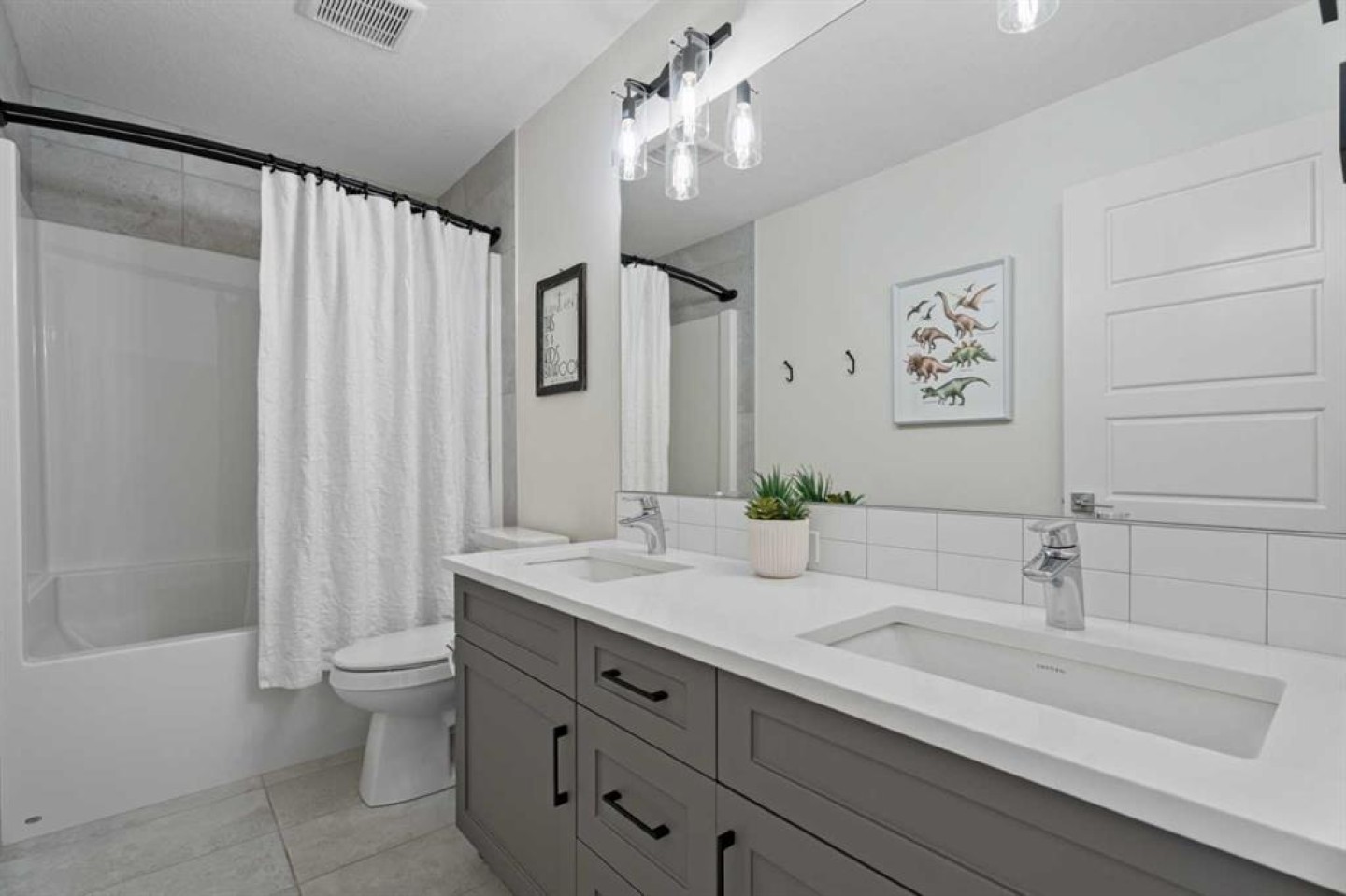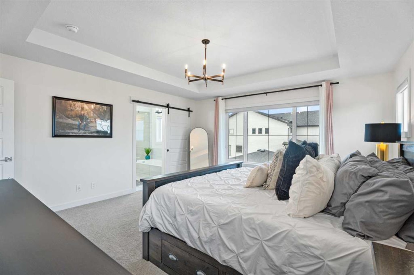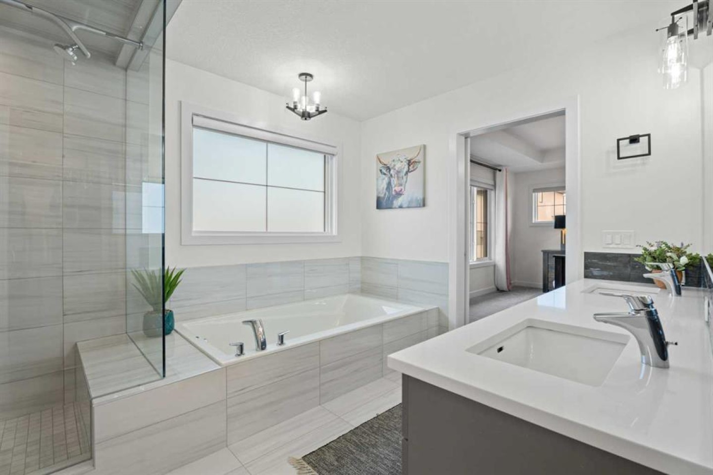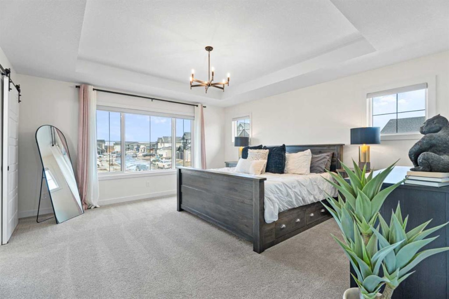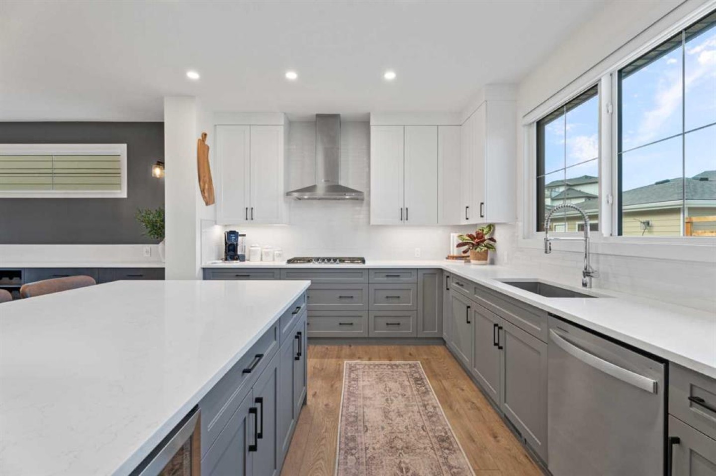 OPEN HOUSE Sunday March 22nd, 12:00-2:00. Welcome to this stunning, like new home in the award winning community of Harmony, located just 8 minutes west of Calgary. Set in the heart of Springbank, Harmony offers an exceptional lifestyle with a sparkling lake, world class golf, and breathtaking Rocky Mountain views. Situated on a desirable corner lot, this home offers incredible curb appeal with a spacious front porch that welcomes you into a bright and inviting foyer. The main level features an open concept floorplan with luxury vinyl plank flooring throughout, creating a seamless and modern flow. The living room is warm and inviting with a gas fireplace, while the expansive dining area includes additional built in cabinetry for extra storage and function. The kitchen is a true highlight, complete with a large island, stainless steel appliances, built in oven, gas cooktop, bar fridge, and a walk in pantry, perfect for both everyday living and entertaining. The rear mudroom leads to the backyard, featuring a deck, hot tub, and gate access for additional parking. A half bathroom completes this level. Upstairs, you will find a spacious bonus room filled with natural light, enhanced by extra windows thanks to the corner lot. The primary retreat is oversized and features a luxurious 5 piece ensuite and a massive walk in closet that connects directly to the upper level laundry room. Two additional bedrooms and a full 4 piece bathroom complete this level. The fully finished basement provides even more living space with a large recreation area ideal for a home gym or office, an additional bedroom, and a 3 piece bathroom. The double detached oversized heated garage offers plenty of room for vehicles, storage, or a workspace. With an abundance of windows throughout, this home is bright, airy, and beautifully maintained. A perfect combination of style, function, and location in one of the most sought after communities just outside of Calgary. Check out the 3D tour, and book your private viewing today!