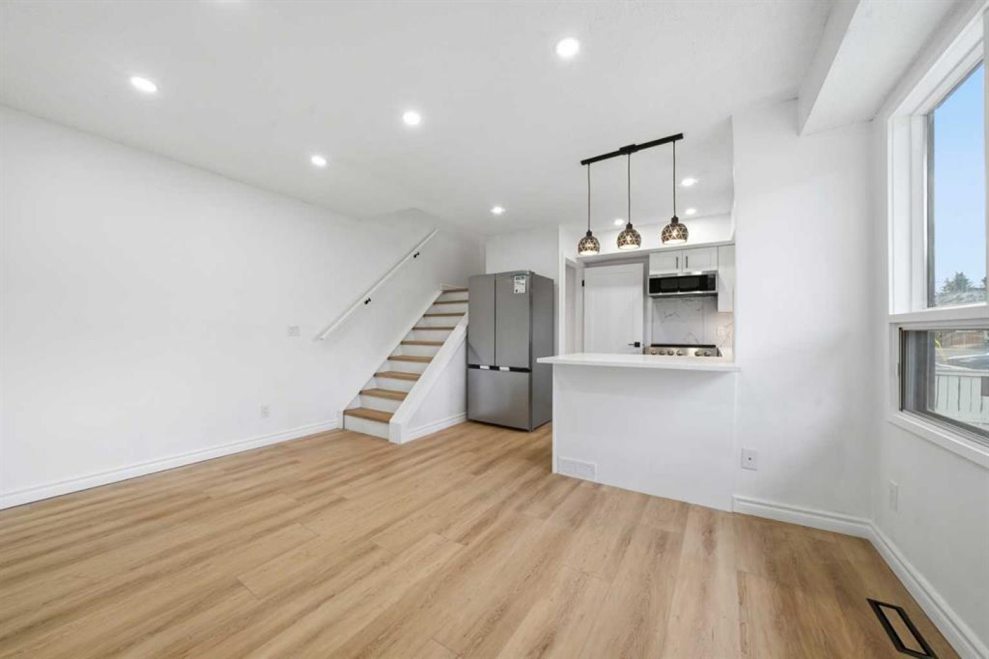 Modern Minimalist Corner Townhouse – Stylish, Simple, and Sustainable Living! Located in a peaceful, well-connected inner city neighborhood, this home offers the perfect balance of urban convenience and tranquil living. Experience the beauty of simplicity in this thoughtfully designed minimalist townhouse, where clean lines and open spaces create a calm, clutter-free atmosphere. This home features an open-concept layout that seamlessly connects the living, dining, and kitchen areas— perfect for those who appreciate functional design and modern aesthetics. The kitchen comes equipped with brand-new stainless steel appliances, sleek cabinetry, and energy-efficient LED fixtures that blend form and function. Upstairs, the spacious master bedroom with double closets, providing ample storage while maintaining the minimalist aesthetic. A private balcony, ideal for morning coffee or evening relaxation. Enjoy the abundant sunlight and a serene retreat from the city’s bustle! A convenient 4 piece bathroom with tasteful designer wall completes this level, Downstairs, a spacious basement living room offers a cozy retreat for relaxing or working— ideal for movie nights or a quiet office or 2nd bedroom. The home includes a newly renovated bathroom with modern fixtures, plus a laundry room with built-in shelving for organized convenience. Throughout the home, high-end luxury vinyl plank flooring adds warmth, durability, and a refined modern touch. Outside, you’ll find a tidy yard and a welcoming front porch. With neutral color tones, high-quality finishes, and low-maintenance materials, this townhouse is ideal for anyone embracing a minimalist lifestyle — less stuff, more space, and a focus on what truly matters. Close to everything, best inner-city living with quick access to downtown, 17th Ave, and the CTrain station. Few minutes away to Shaganappi Point Golf Course, Edworthy Park, schools, playgrounds, shops, restaurants and cafés.