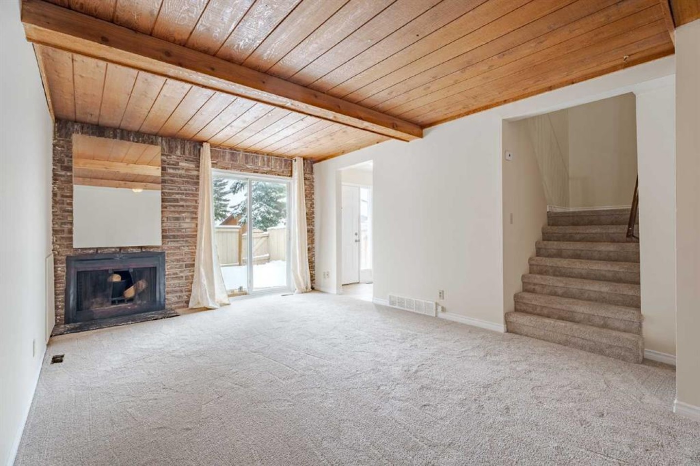 Welcome to this well-maintained two-storey townhouse located in the community of Penbrooke Meadows, offering an excellent opportunity for first-time buyers or investors. Freshly painted and featuring brand new carpet throughout the living and dining areas as well as the entire upper level – this home feels bright, refreshed, and move-in ready. The main floor living room is anchored by a cozy wood-burning fireplace, creating a warm focal point for relaxing evenings. Patio doors extend the living space outdoors to a private fenced front patio, ideal for enjoying fresh air, morning coffee, or summer barbecues. The kitchen has been upgraded and offers functional workspace and storage, while the adjacent dining area provides a comfortable setting for everyday meals or casual gatherings. Additional storage can be found under the staircase, helping keep daily living organized. Upstairs, the home offers two bedrooms plus a versatile den. The den can easily function as a home office, guest space, or flex room, and with the addition of a window (subject to board approval), it has the potential to become a third bedroom. The upper level also features an updated 4-piece bathroom, along with the convenience of in-suite laundry. This property includes one assigned parking stall along with generous visitor parking within the complex, providing practical parking solutions for both residents and guests. Located in SE Calgary, Penbrooke Meadows offers convenient access to schools, parks, transit, and nearby shopping. With an affordable price point under $240,000, this is a compelling opportunity for buyers looking to enter the market or add a solid rental property to their portfolio! Book your showing TODAY!