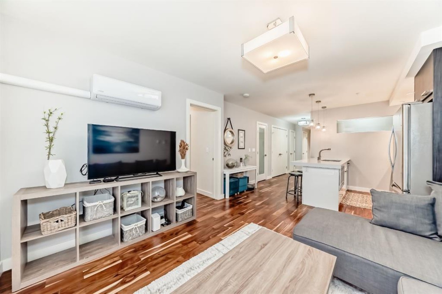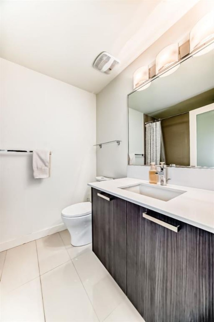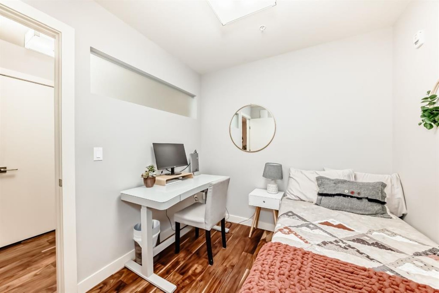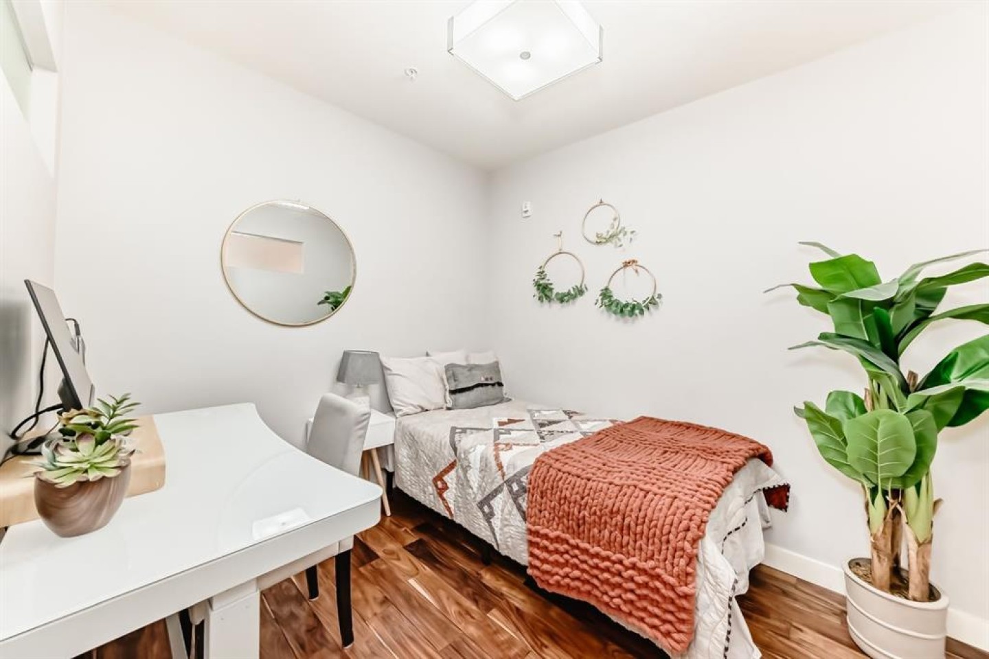 "" OPEN HOUSE: SATURDAY, MARCH 21, 2:00 - 4:00 PM. "". Excellent professional and or investor condo ((short term rentals allowed) in a prime area of Connaught/Beltline. Sunny south unit direction with air conditioning ($10000 option). Two bedroom, two full bathrooms (Ensuite and guest bathrooms), spacious living room, kitchen with dining, eating bar area, upgrade features include: quartz countertops, engineered hardwood flooring, spacious open plan, 9 foot ceilings, in suite laundry, spacious deck, one rear lot parking stall, beside rear access door. Bedroom 2 fits a bed. No exterior window and closet is in hallway. Extra storage locker in parkade area Location is close to everything downtown: restaurants, coffee shops, etc. but location is still quiet at night - away from the noise of the nightlife.