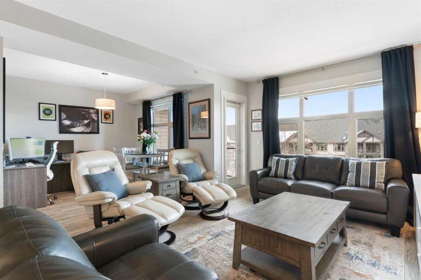 Welcome to Unit 227 at Valmont at Aspen Stone in the desirable community of Aspen Woods. This very well-maintained 1,434 sq ft unit offers a functional and comfortable layout over two levels, featuring carpet and vinyl plank flooring, updated lighting, and an abundance of natural light throughout the home. The main floor features a spacious kitchen that opens to the living and dining areas, creating an inviting space for everyday living and entertaining. The kitchen is finished with quartz countertops, quality appliances, and ample cabinetry, with additional drawers added for even more practical storage. The living room includes built-in shelving and cabinetry, and the balcony is equipped with a phantom screen, allowing fresh air to flow through while maintaining comfort. The dining area is generously sized and well suited for both everyday meals and gatherings. Also on the main floor is the first of two primary bedrooms. This room features a walk-through closet with built-in closet organizers leading to a private ensuite complete with a walk-in shower, soaker tub, and dual vanities. A powder room and a laundry room with additional storage complete the main level. The upper floor is dedicated to a second spacious primary suite, offering added privacy and flexibility. This level includes a large walk-in closet with built-in closet organizers and a well-appointed ensuite featuring a soaker tub and walk-in shower. Residents of Valmont at Aspen Stone enjoy a well-managed building with secure entry, a fitness room, bicycle storage, and a large storage area. The property is ideally located close to walking trails, shopping, and everyday amenities in Calgary. This unit also includes two titled parking stalls, both equipped with overhead heaters.