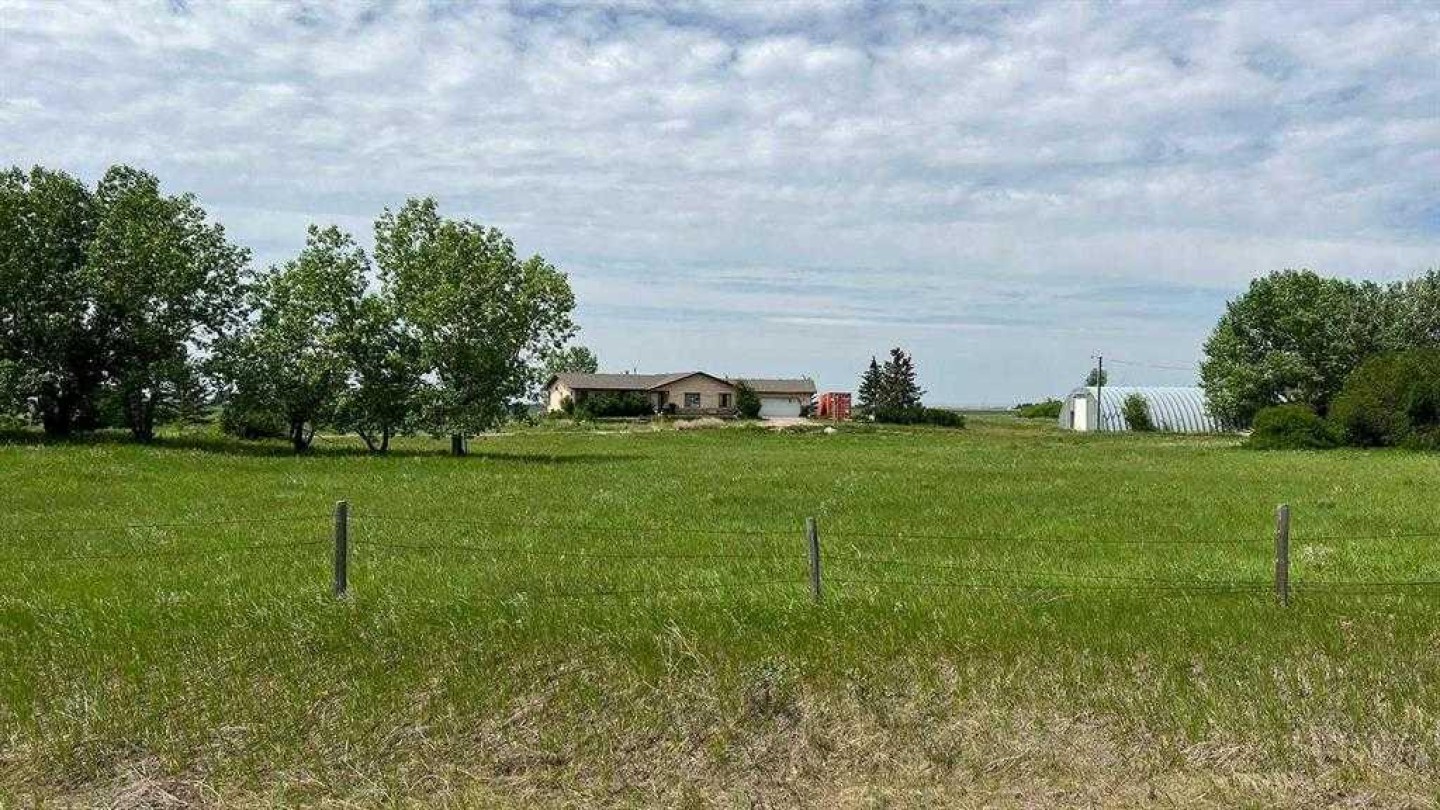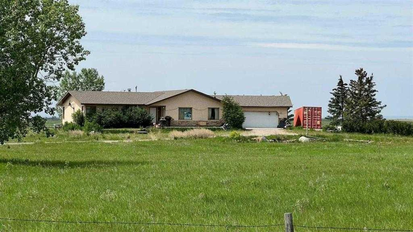 Prime Investment Opportunity! Rare 11.54-acre revenue property at the high-visibility corner of Glenmore Trail & Hwy 791, generating $9,300/month in rental income. The property features 2 detached homes (large bungalow & 2-storey), each with double garages and separate gas & electric meters. Additional income-producing buildings include 2 large Quonsets, barn, and multiple sheds. Mature trees provide privacy and separate entrances one for each home. The parcel offers 233 meters of frontage on Hwy 791 and approx. 200m depth, with beautiful mountain and Calgary skyline views. Ideally located only 25 minutes to Downtown Calgary, 4 minutes to Calgary city limits, and only a 4 minute drive to the Painted Sky Commercial in Langdon. Excellent holding property with strong cash flow and future development potential.