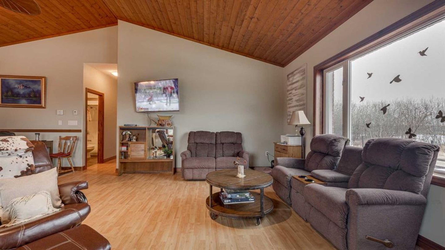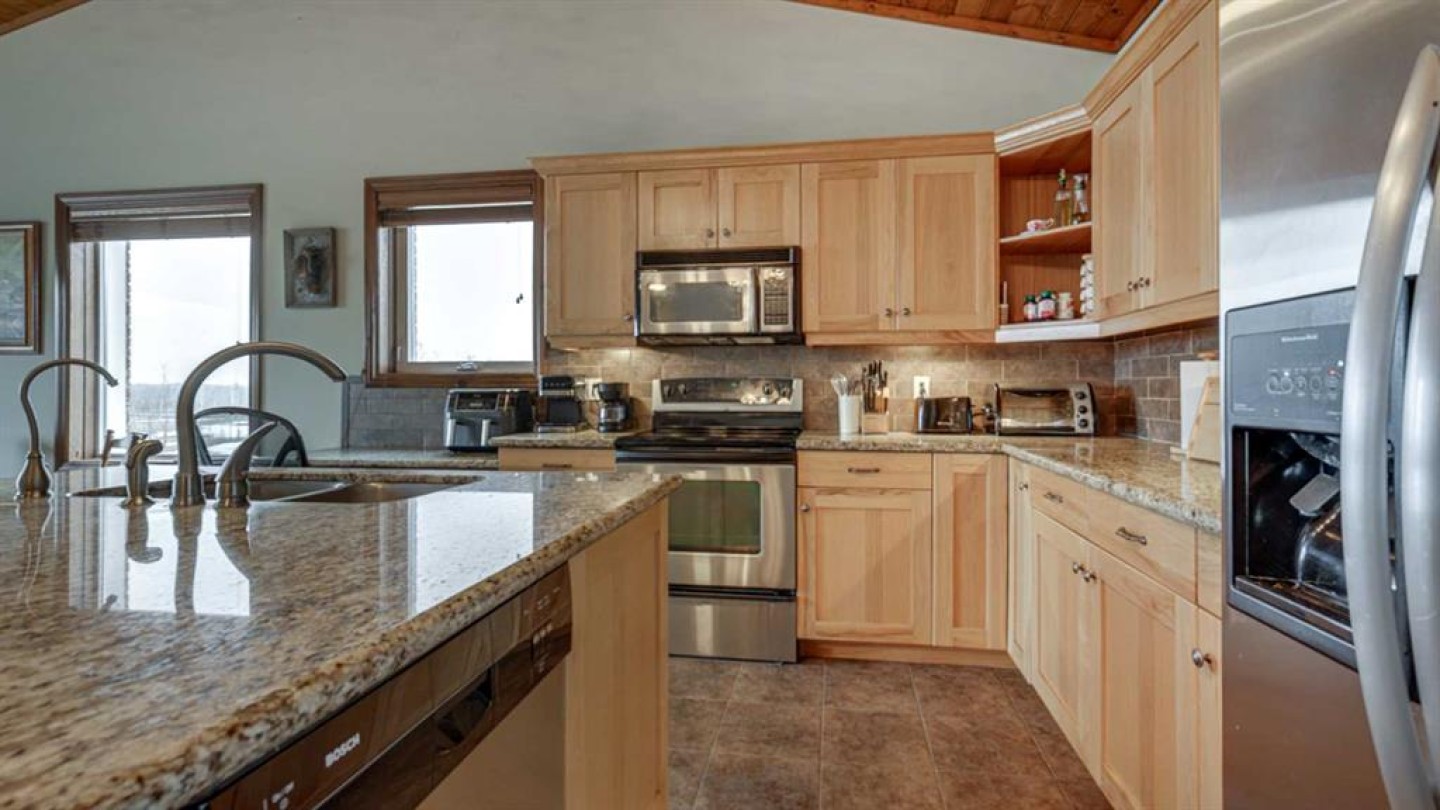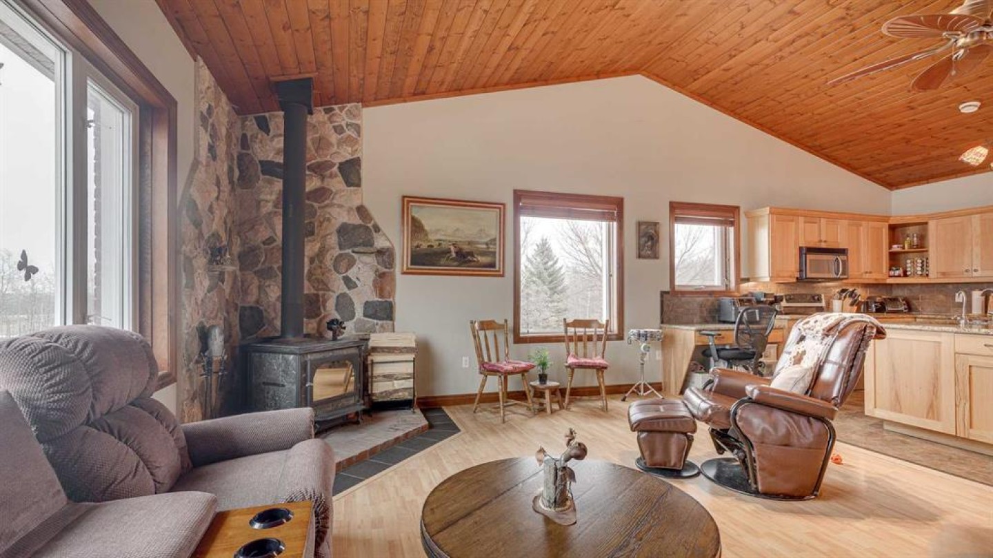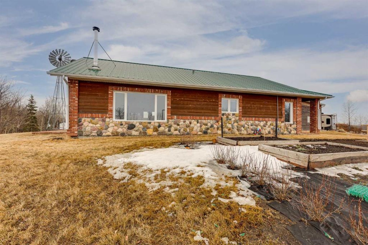 Private 5.5-acre acreage offering true country living, rolling topography, and panoramic views in every direction — a peaceful retreat for buyers seeking to leave city lights and crowds behind. Just 1.5 miles from excellent fishing on the Red Deer River and close to popular hunting areas and community outdoor amenities (including a nearby gun range), this property is ideal for outdoor enthusiasts. Property highlights:• Solid, energy-efficient construction: home built with insulated concrete form (ICF) walls, Low E windows, and a high-efficiency hot water system to lower heating costs and footprint.. Slab on grade construction (no basement). • Comfortable covered veranda to enjoy country views. • 30' x 40' finished shop (built 2014) with concrete heated floor, lined in white tin, usable mezzanine storage, and a 2-piece bathroom — versatile for hobbies, equipment, or business. • Distinctive exterior details: reclaimed brick accents sourced from the former Stettler hospital and locally collected split fieldstone add character to modern construction. • AG zoning allows a range of uses to suit rural living and small scale operations. This property blends durability, efficiency, and rustic charm with practical shop space and easy access to outdoor recreation. Contact the listing agent for more details or to arrange a private showing.