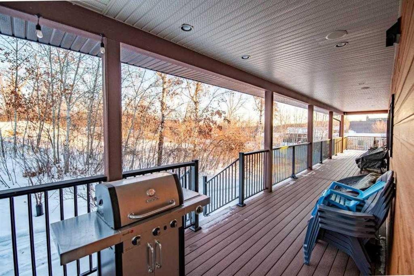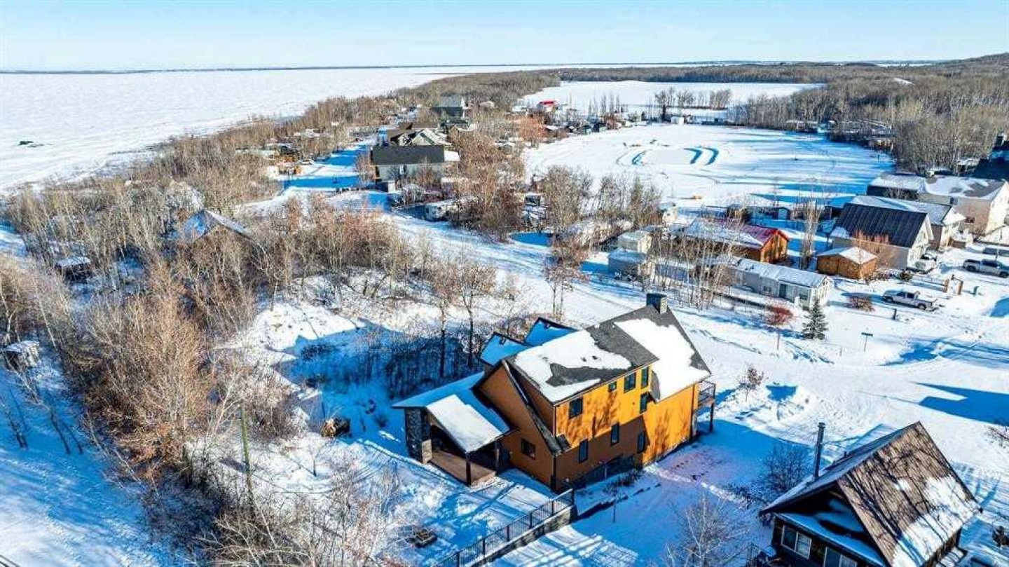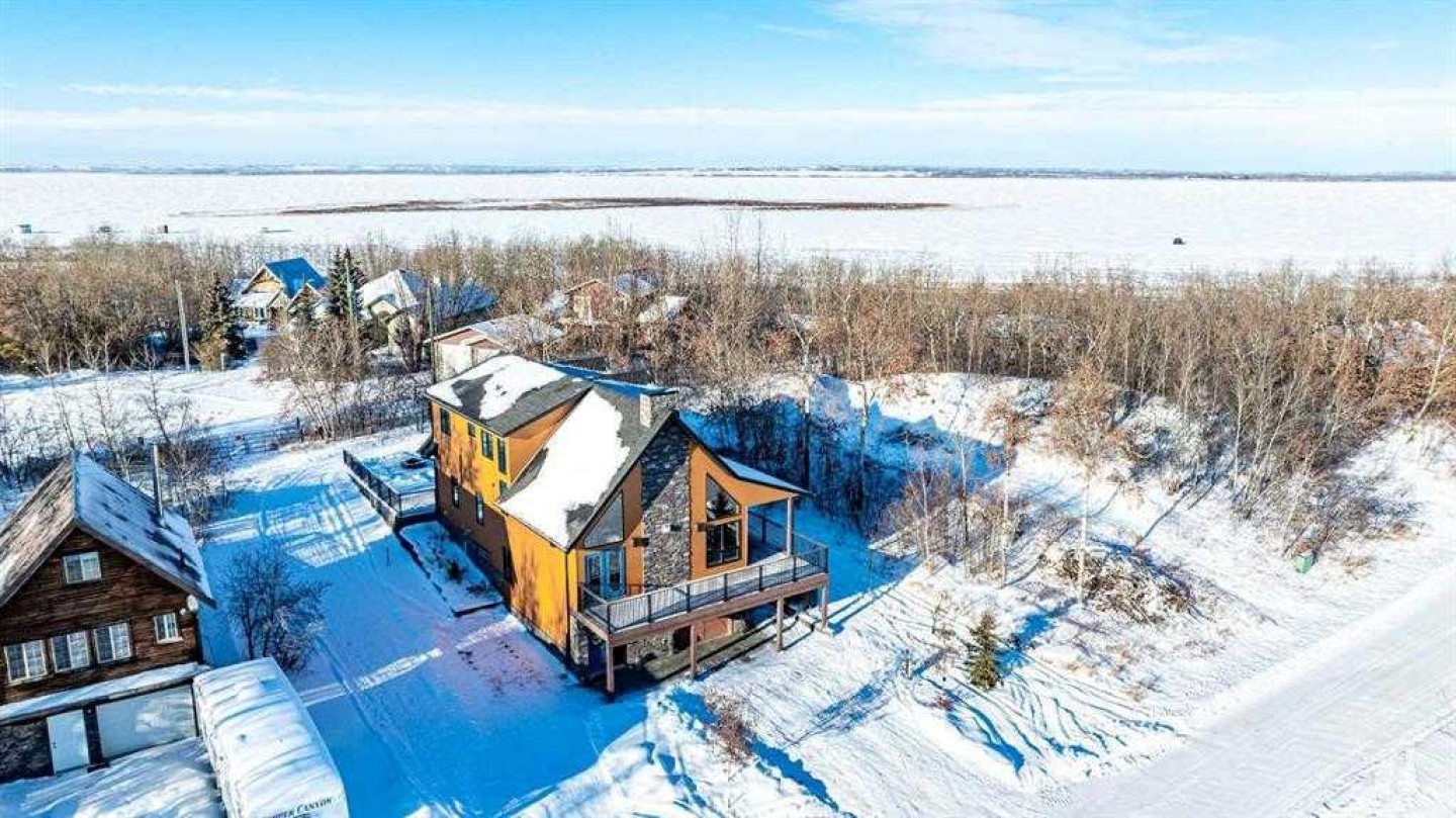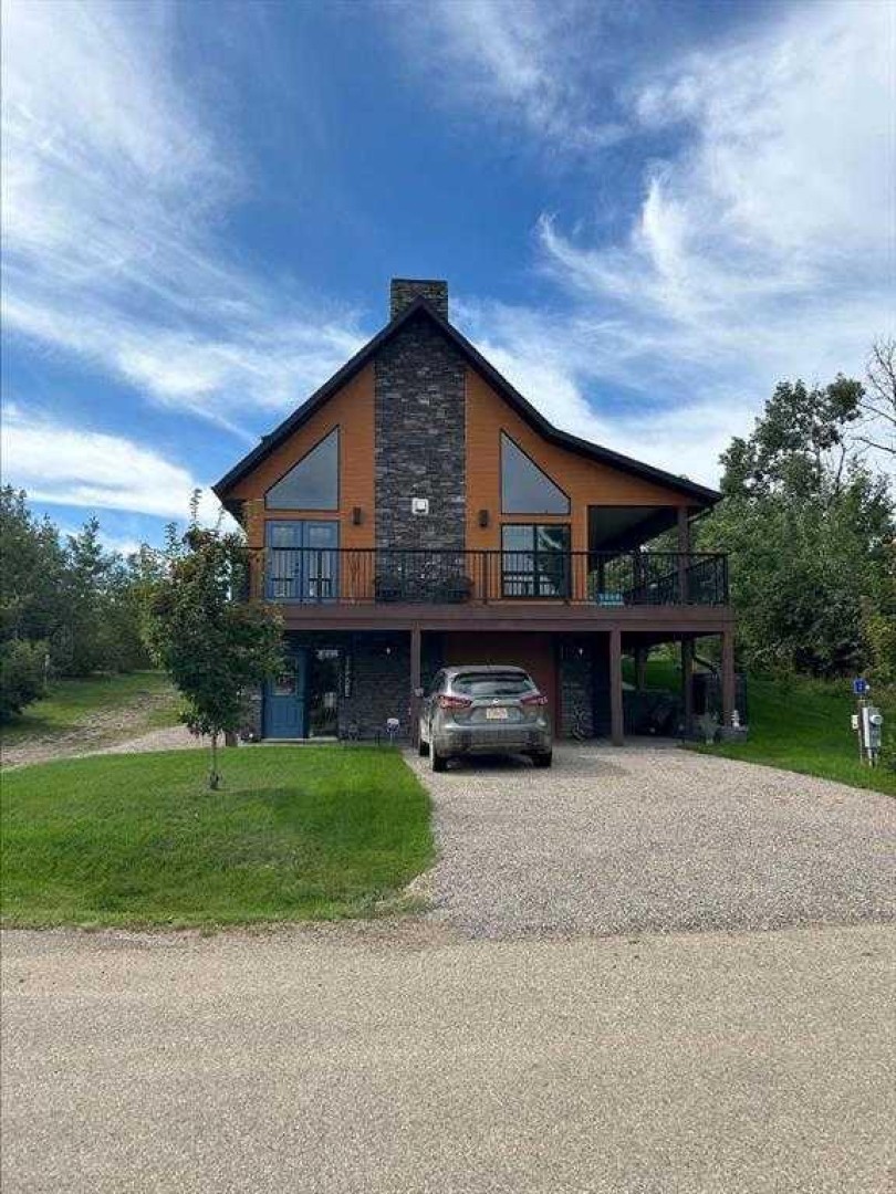 Located at one of Alberta’s largest lakes, Buffalo Lake is truly one of the area’s best-kept secrets. Welcome to Buffalo Sands, a close-knit lake community offering a four-season lifestyle ideal for weekend escapes, unwinding after work or full-time living. This exceptional lakehouse-inspired chalet is not an A-frame cabin, but a thoughtfully designed home with architectural character, warmth and timeless appeal. This beautifully maintained 1½-storey, fully finished home features a front walkout entry-level with 9’ ceilings and in-floor heating, offering comfort and practicality year-round. The attached double heated garage (12’6” x 33’6”) is fully finished, painted, wired and includes a floor drain, upgraded lighting, new electrical panel, and generator hook-up panel. Step inside to a welcoming tiled foyer with generous storage and a stylish 2-piece bathroom. A few steps up, the great room impresses with soaring 19’ vaulted ceilings, polished hardwood floors and a stunning floor-to-ceiling stone fireplace with copper insert, framed by stone pillars inside and out. Large windows flood the space with natural light and showcase tranquil views. The kitchen is designed for both everyday living and entertaining, featuring polished concrete countertops, a premium WOLF gas stove, stainless steel appliance package, corner sink, pantry, breakfast bar and a custom coffee station. Three doors provide seamless access to the massive three-sided wrap-around covered deck, perfect for hosting or relaxing outdoors. The primary bedroom offers a walk-in closet with built-in organizers and a spa-inspired ensuite with an upgraded steam walk-in tiled shower and glass doors. The upper-level loft overlooks the main living space and includes two additional bedrooms and a 4-piece bathroom—ideal for guests, family a library or office nook and direct access to a covered outdoor courtyard complete with a gas fireplace. The entry-level walkout features in-floor heat, a newly created recreation room/could be additional bedroom with plush carpeting, cabinetry and feature dart wall, a large utility/laundry room with epoxy flooring and extensive storage, workshop/boiler room. Outdoor features include multiple conversation areas a fire pit and maintenance-free decking with storage underneath. Recent upgrades include new WOLF stove, stainless refrigerator, Samsung washer/dryer, boiler, furnace and A/C unit, hot water tank, sound system (inside and out), lighting upgrades, paint, cabinetry refinishing, garage improvements, widened driveway, additional parking pad, landscaping/ new sod and stone enhancements. A unique highlight is the walking trail behind the home providing direct access to the lake, beach, docks, playgrounds, pond - skate, canoe or country ski on trails. The property includes the right to boat slip in the community marina (on separate title). Full time residence or your new income / rental escape! This is lake living at its finest-be prepared for love at first sight.