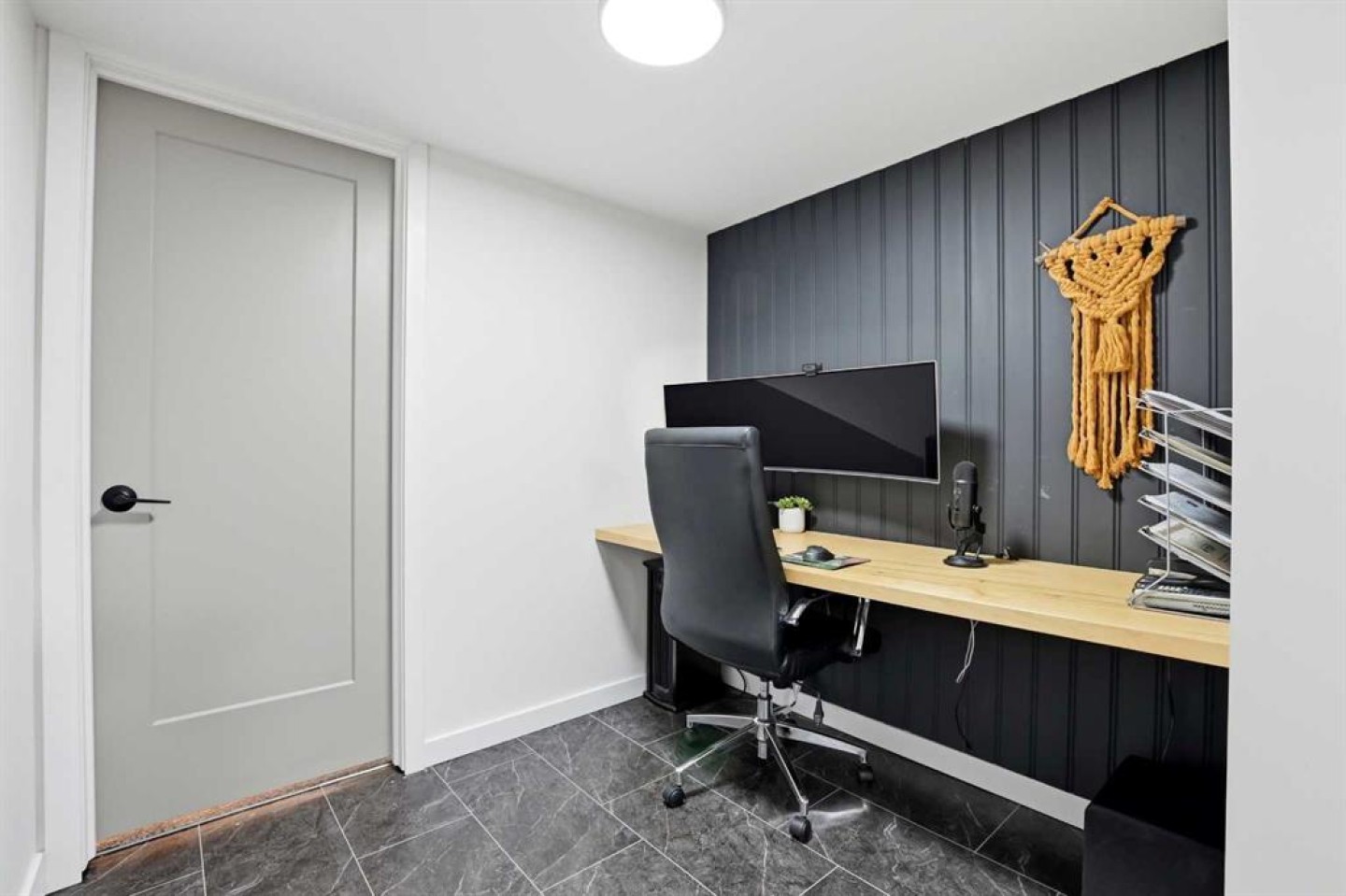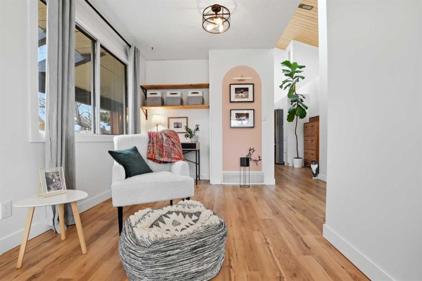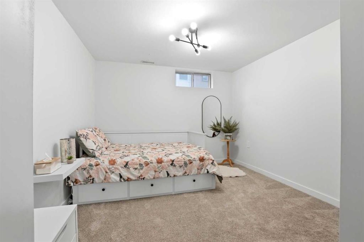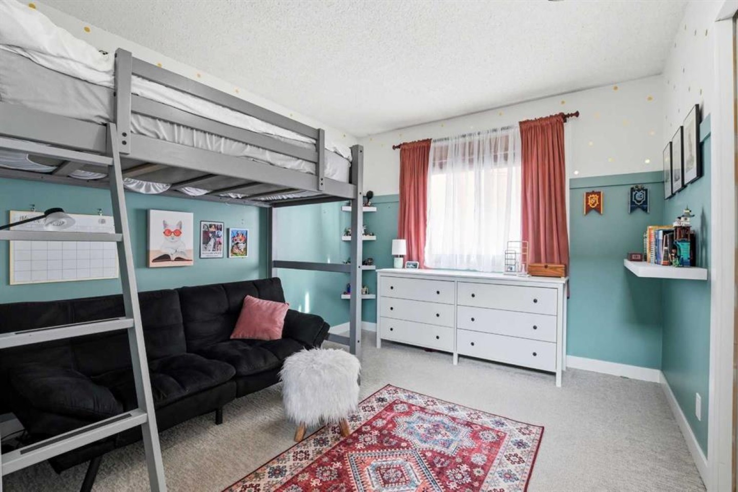 Welcome to 5 Crawford Street situated on a corner lot of a close, this home is a uniquely designed and beautifully renovated bungalow in the desirable community of Clearview Meadows, showcasing stunning mid-century modern styling. Wood-panelled vaulted ceilings and high windows fill the home with natural light and feature convenient automatic blinds. The main floor offers a sunken living room and an updated modern kitchen complete with quartz countertops, stainless steel appliances, gas range, tile backsplash, ample storage, and a centre island with seating. A stylish coffee bar includes a built-in beverage fridge and a dedicated water filler faucet perfect for topping up your favourite brewing machine! Open to the kitchen, the dining room features a cozy wood-burning fireplace and french doors leading to an expansive 2-tiered deck complete with a softtub spa, ideal for entertaining or relaxing outdoors. Vinyl plank flooring runs throughout the main level, past the convenient main floor laundry to the three bedrooms. The spacious king sized primary suite includes a walk-in closet and an updated ensuite with an oversized, low-barrier tile shower. Two nice sized bedrooms and a modern 4 piece bathroom finish off the main area. The lower level offers a large family room, 2 large bedrooms, 3 piece bathroom, plenty of storage space and an office area with built in desk. There is an attached 21’ x 23’ heated double garage for convenience, air conditioning for comfort, main floor living for accessibility, renovated for style, and a mature neighbourhood – this house has it all.