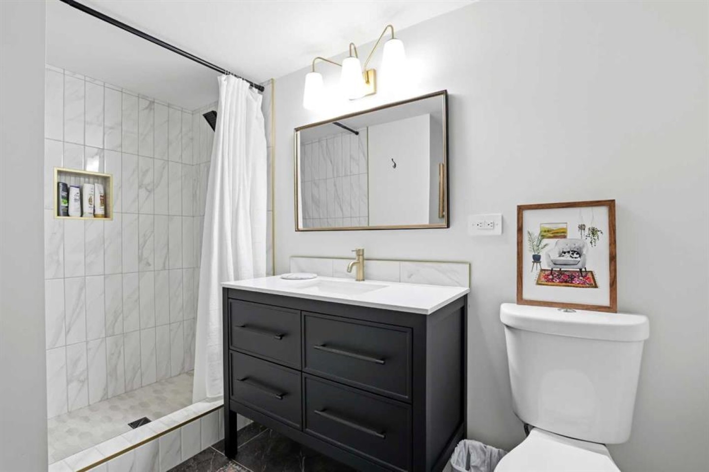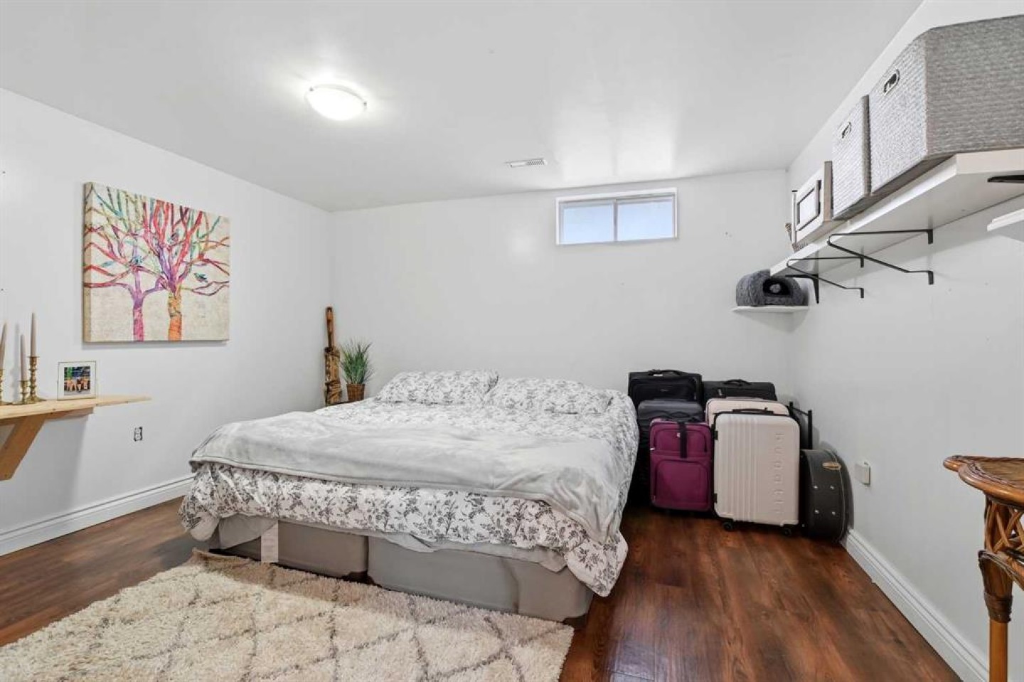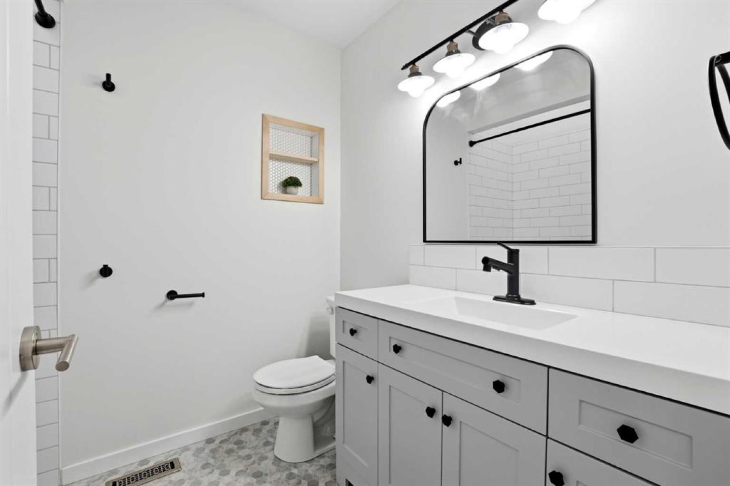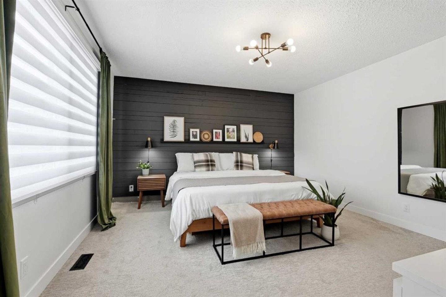 Welcome to 5 Crawford Street situated on a corner lot of a close, this home is a uniquely designed and beautifully renovated bungalow in the desirable community of Clearview Meadows, showcasing stunning mid-century modern styling. Wood-panelled vaulted ceilings and high windows fill the home with natural light and feature convenient automatic blinds. The main floor offers a sunken living room and an updated modern kitchen complete with quartz countertops, stainless steel appliances, gas range, tile backsplash, ample storage, and a centre island with seating. A stylish coffee bar includes a built-in beverage fridge and a dedicated water filler faucet perfect for topping up your favourite brewing machine! Open to the kitchen, the dining room features a cozy wood-burning fireplace and french doors leading to an expansive 2-tiered deck complete with a softtub spa, ideal for entertaining or relaxing outdoors. Vinyl plank flooring runs throughout the main level, past the convenient main floor laundry to the three bedrooms. The spacious king sized primary suite includes a walk-in closet and an updated ensuite with an oversized, low-barrier tile shower. Two nice sized bedrooms and a modern 4 piece bathroom finish off the main area. The lower level offers a large family room, 2 large bedrooms, 3 piece bathroom, plenty of storage space and an office area with built in desk. There is an attached 21’ x 23’ heated double garage for convenience, air conditioning for comfort, main floor living for accessibility, renovated for style, and a mature neighbourhood – this house has it all.