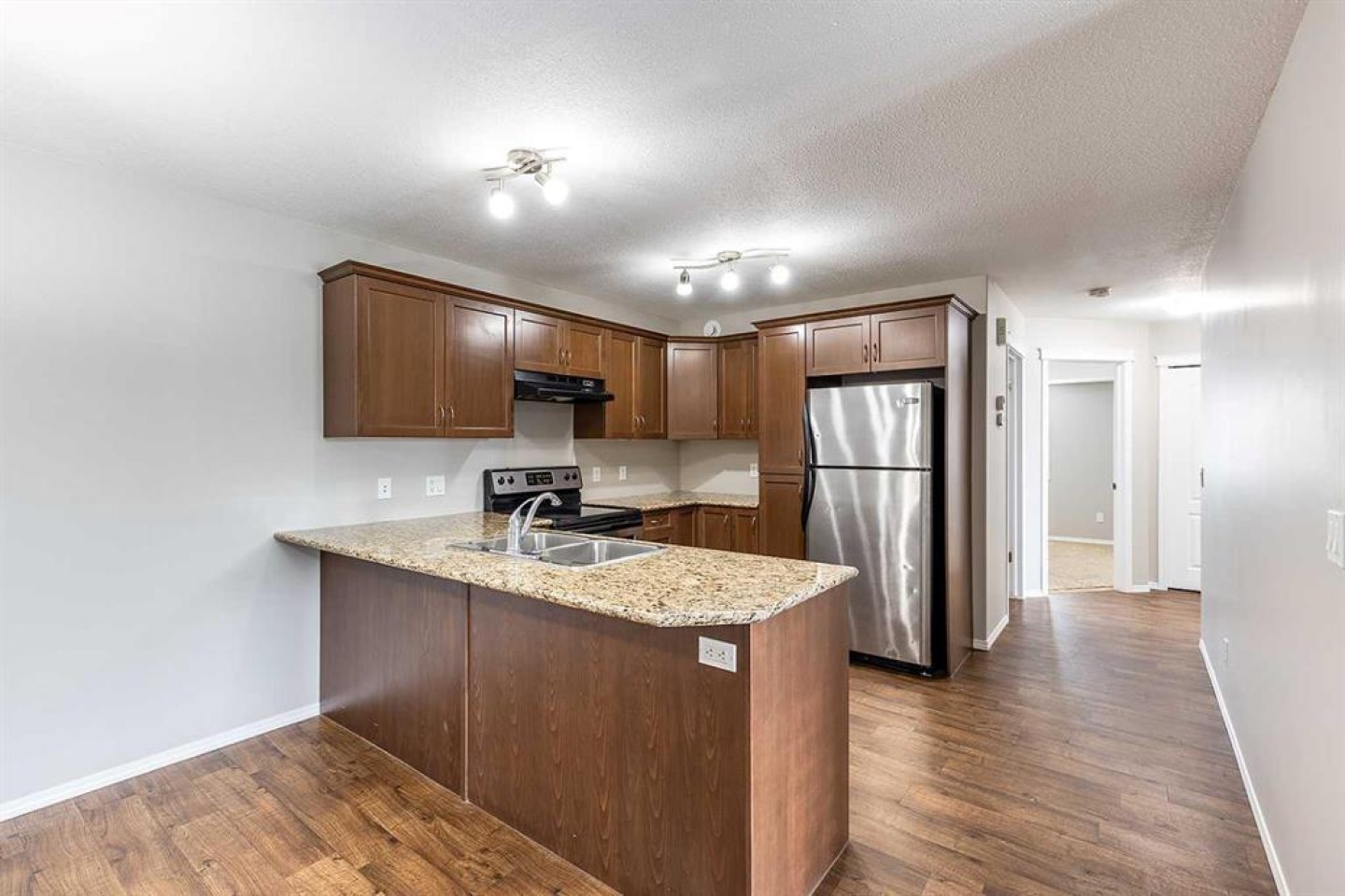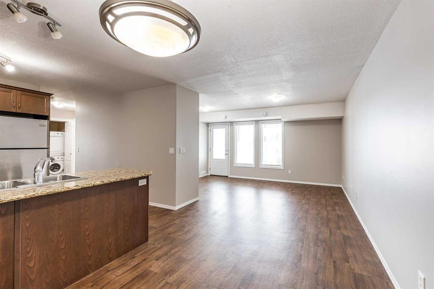 Offered for the first time by its original owners, this top-floor end unit condo townhouse presents an excellent opportunity for first-time buyers or investors. Featuring 3 bedrooms and 1 bathroom, this home is thoughtfully laid out and move-in ready. The interior has been freshly painted throughout and features granite countertops in the kitchen along with modern finishes, creating a clean and updated feel. Enjoy on-demand hot water, a newer AC unit (2025), and the convenience of a stacked washer and dryer in-unit, while a front patio offers a comfortable outdoor space. Storage is included, with the furnace located in the storage unit to maximize living space. Residents benefit from an assigned parking stall, visitor parking, and bicycle storage. Situated in a well-established community, this home is just minutes from shopping, dining, parks, and schools, with quick access to major roads. Contact a real estate agent today to schedule a showing and experience this move-in ready condo.