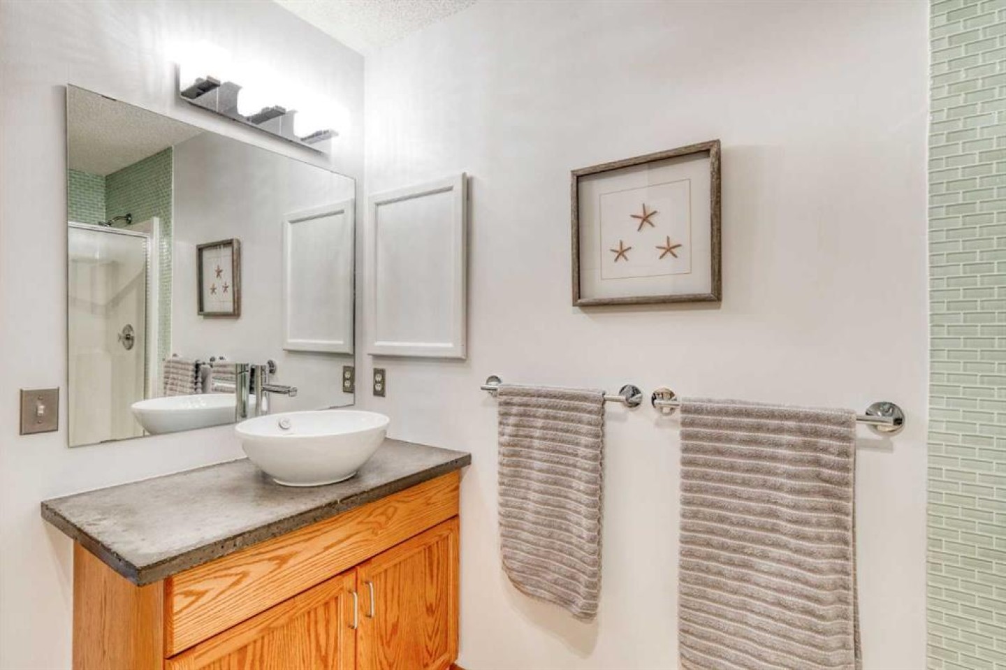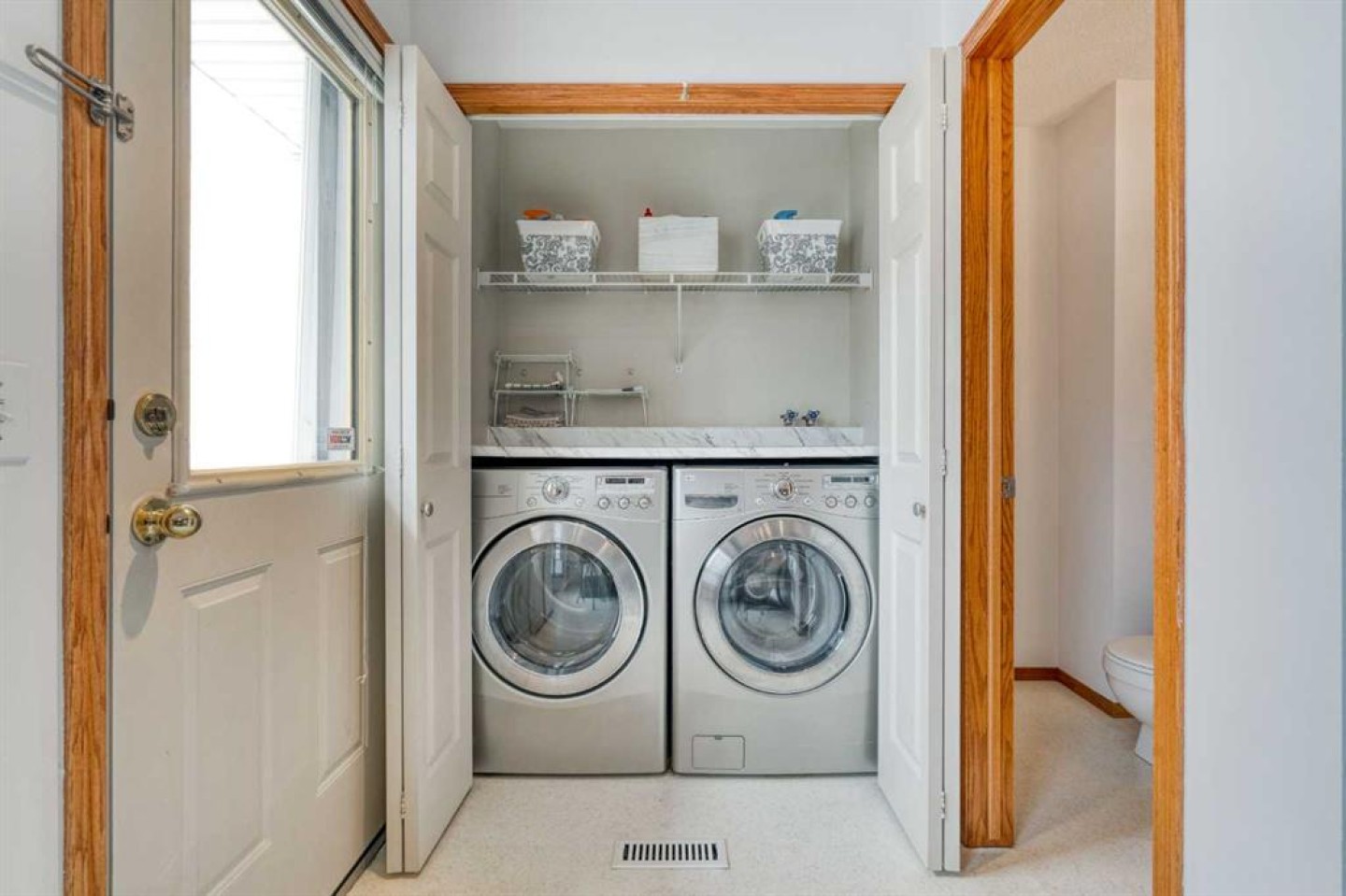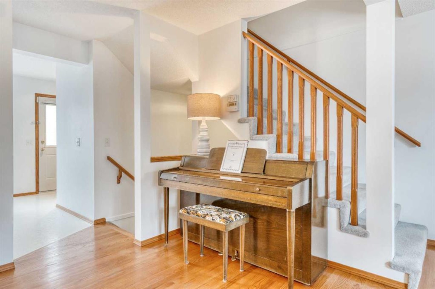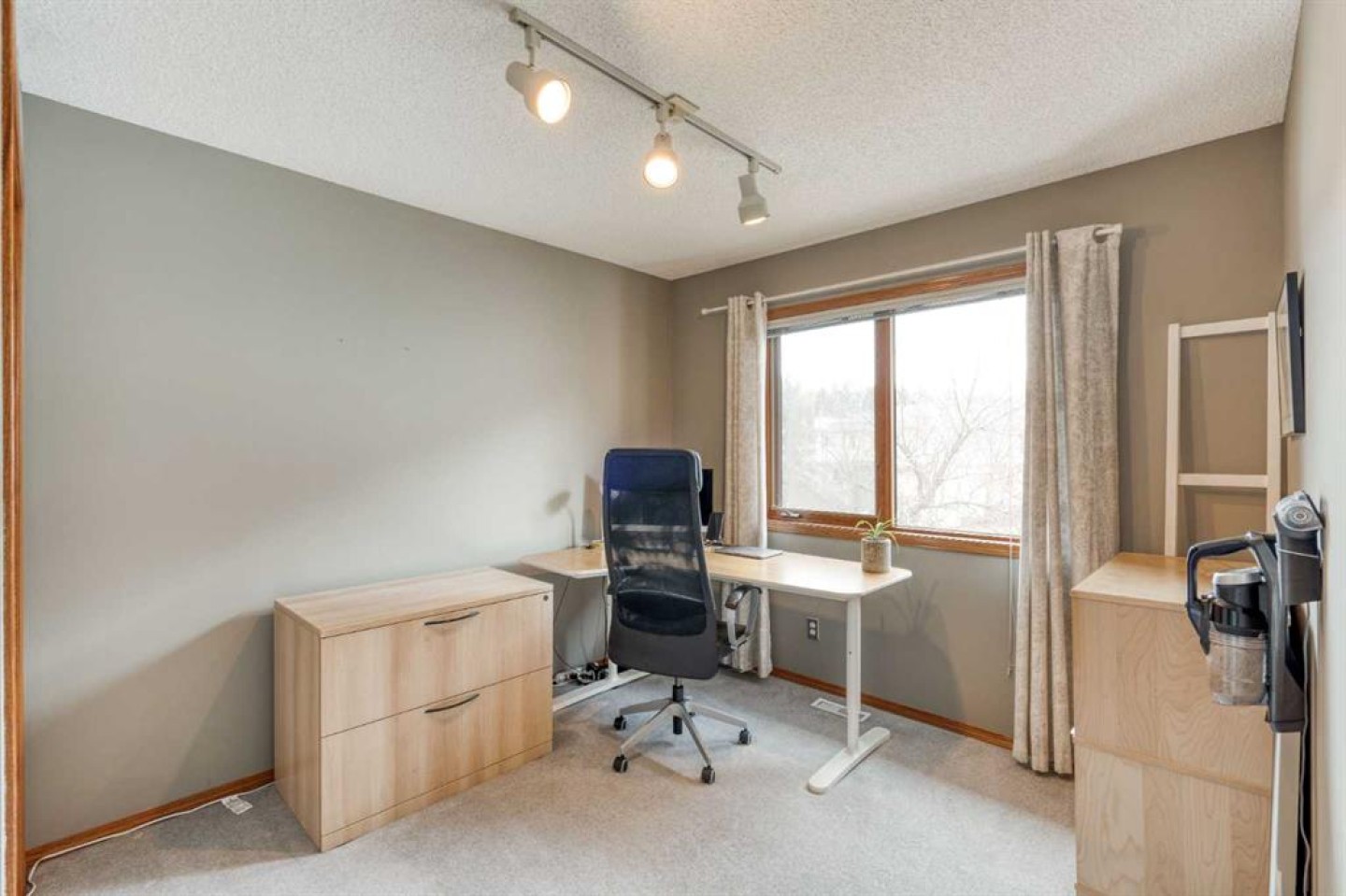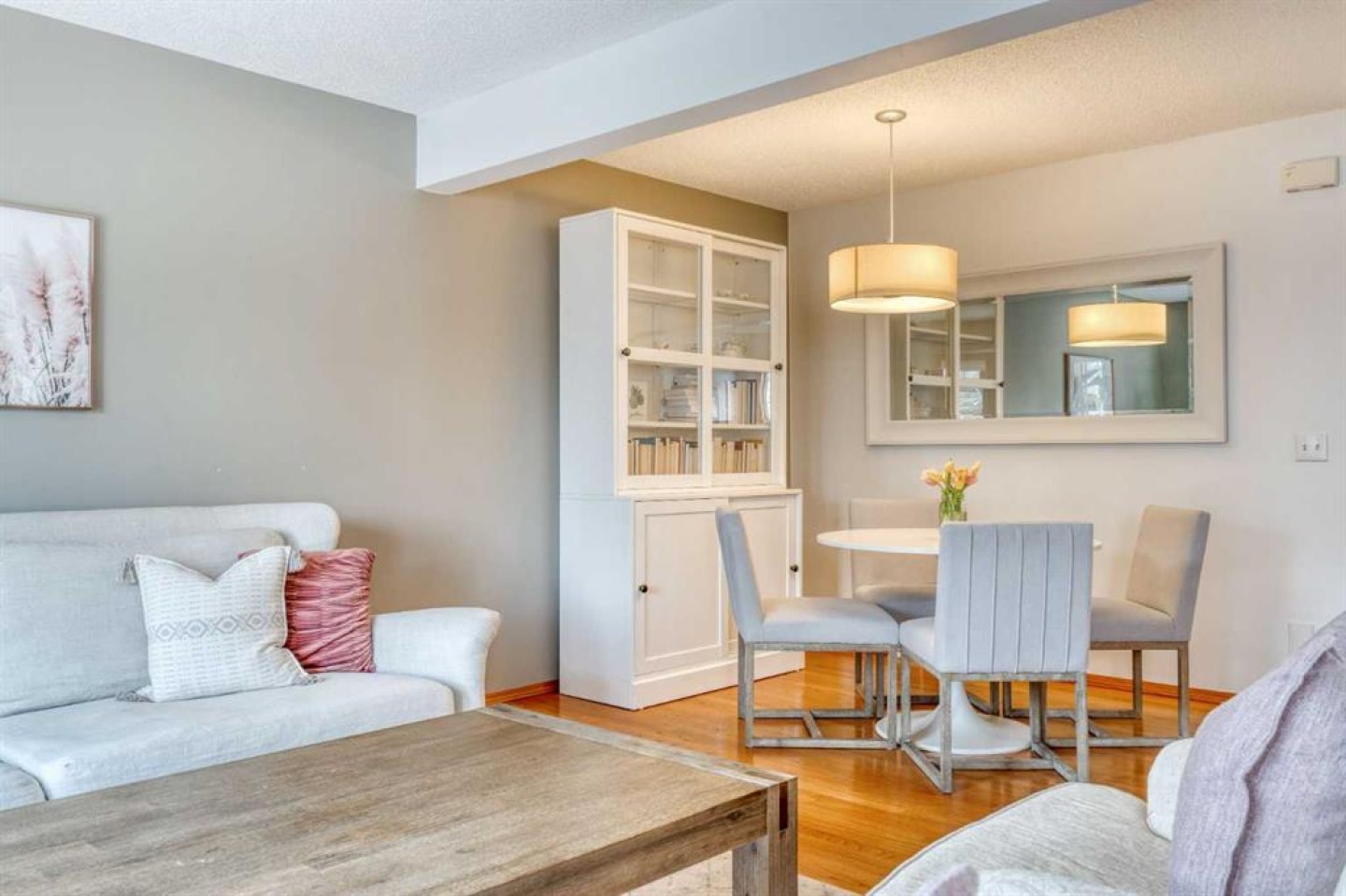Welcome to 5 Patina Point SW, a tastefully updated 2 bedroom, 1.5 bath townhome offering 1,340 sq. ft. of comfortable living space in the highly desirable community of Patterson on Broadcast Hill. Surrounded by mature trees, abundant green spaces, and sweeping city views from the community, this location offers the perfect balance of convenience and nature right outside your front door. Step inside to a functional foyer entry that leads up to the open concept main living area, where you’ll find solid oak hardwood floors, a wall of bay windows overlooking the trees, filling the space with natural light, and a cozy gas fireplace offering an inviting setting for relaxing evenings or hosting family and friends over the holidays. The updated kitchen features oak cabinetry, custom concrete countertops, a generous island, and direct access to the private back deck overlooking a green space the ideal spot for morning coffees or warm summer dinners. Upstairs, you'll find a very large primary bedroom with a custom feature wall, a second well-sized bedroom, and an updated 4-piece bathroom complete with a large corner soaker tub. A bright loft area offers the perfect spot for a home office, reading nook, or additional family lounge space. The attached double garage provides secure parking for two vehicles plus a driveway stall, making parking effortless and storage abundant, a rarity with inner city living! Perfectly positioned just steps from transit, minutes to downtown, and with easy access to the mountains, this townhome offers an unbeatable lifestyle and value. Don’t miss your chance to own in one of Calgary’s most sought after communities!