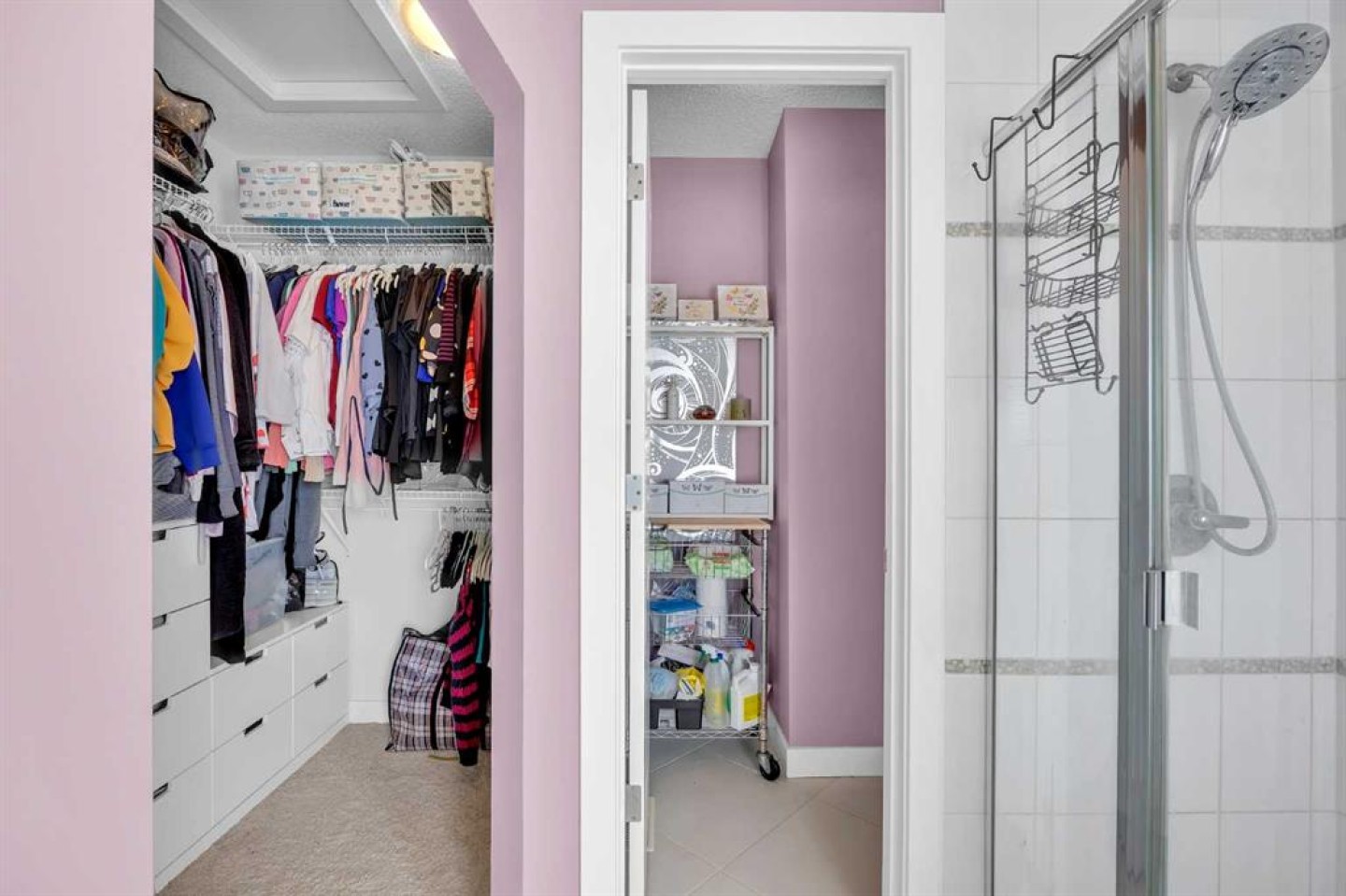Closet Organizers, Kitchen Island, No Animal Home, Pantry, Quartz Counters, Soaking Tub, Storage, Walk-In Closet(s)
