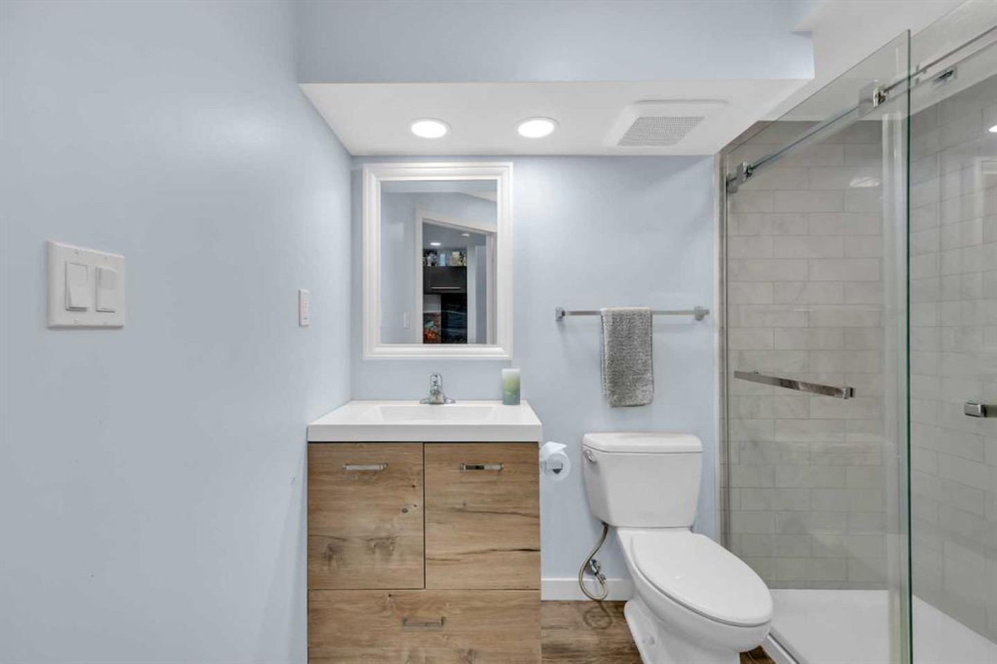 Welcome to the highly sought-after community of Skyview Ranch! This former showhome built by Shane Homes has been well cared for. With a total of 4 bedrooms, 3.5 bathrooms and over 2300 sq ft of living space that includes a fully developed basement, there's plenty of space to grow. A cozy, bright entryway welcomes you to this home that can also serve as an office, reading or music room. The open-concept main floor features an abundance of natural light and a large kitchen with a walk-in pantry, stainless steel appliances, lots of cabinet and counter space, an island with seating, and also lots of space for a dining table. The living room has a built-in wall unit and a corner gas fireplace. Rounding out the main floor, there is a powder room and a second entrance in the rear to a double detached garage. Moving upstairs, the primary bedroom can easily fit a king size bed and features a relaxing ensuite with separate shower and soaking tub, walk-in closet with built-in organizers. Two additional bedrooms are generous in size with one bedroom featuring a multifunctional murphy bed and desk. Laundry is conveniently located on the top floor along with another full bathroom - a perfect setup for a family. The fully finished basement has spacious entertainment/hosting area, full bathroom, and a gym that could also be easily converted to a bedroom by adding a door. Don’t forget to look for the hidden door that opens to tons of extra storage space! The low maintenance backyard has a double garage and room for RV parking. Recent updates on this home include vinyl siding (2025), a new roof (2026), a new dishwasher, microwave hood fan, washer/dryer, water tank, and furnace (serviced annually and warranty until 2030). This home is move-in ready and close to many amenities - playgrounds, schools, walking/bike paths, public transit, soccer fields, shopping, and major roads. Check out the link for the 3D tour, but book your tour before it's too late!
