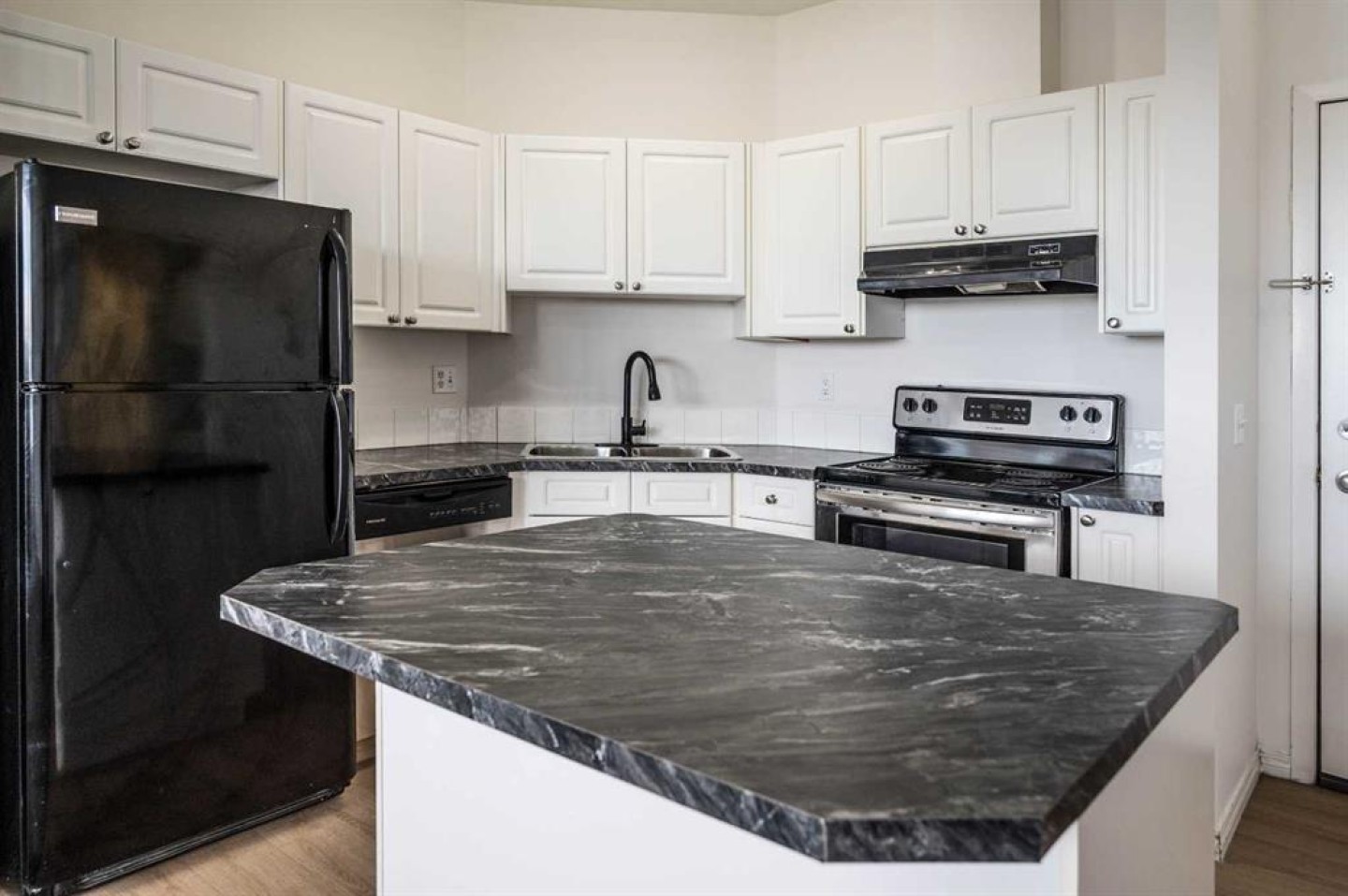 Enjoy evening sunsets and a peek view of the mountains from this bright, top-floor corner 2-bed, 2-bath condo in the established Applewood Park community. Updated with new modern touches for immediate move-in appeal, this unit features brand-new countertops in the kitchen and main bath, brand-new luxury vinyl plank flooring plus fresh paint throughout—creating a clean, modern, and welcoming feel. The large west-facing balcony with gas BBQ hookup is perfect for summer evenings, and you’re literally steps from Elliston Park’s trails, playgrounds, and pet-friendly green space. Inside you’ll find 9-foot ceilings and an open-concept layout that feels spacious and bright. Updated kitchen with crisp white cabinetry, modern appliances, large central island, and new countertops — ideal for everyday cooking or entertaining. Cozy living room anchored by a gas fireplace and large windows. Generous primary suite with walk-in closet and private 4-piece ensuite. Second bedroom plus another full 4-piece bath is perfect for guests, a home office, or roommate. In-suite laundry, titled heated underground parking stall, and secure storage locker. Location is unbeatable: 2-minute walk to the Max Purple transit line, minutes to 17th Avenue shops, restaurants and East Hills Shopping Centre (Costco, Walmart, Cineplex and more). Stoney Trail access makes commuting or weekend escapes effortless. Tailored for first-time buyers, professionals, investors, downsizer or anyone seeking low-maintenance living, this updated corner gem checks every box. Priced to move quickly. Don’t wait for the next buyer to snap it up. Schedule your private showing today before it’s gone!