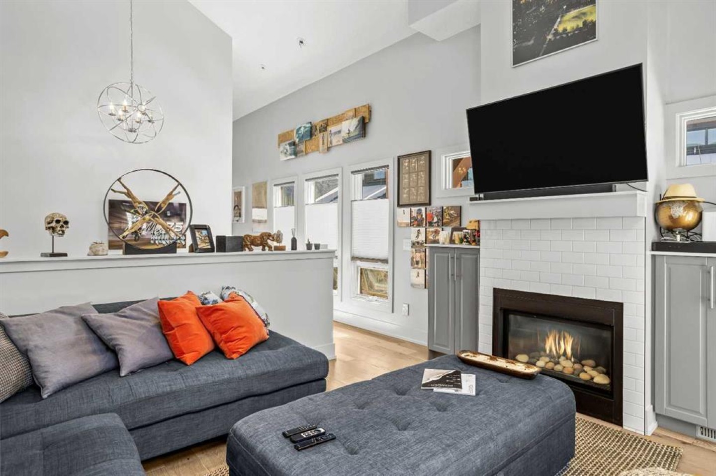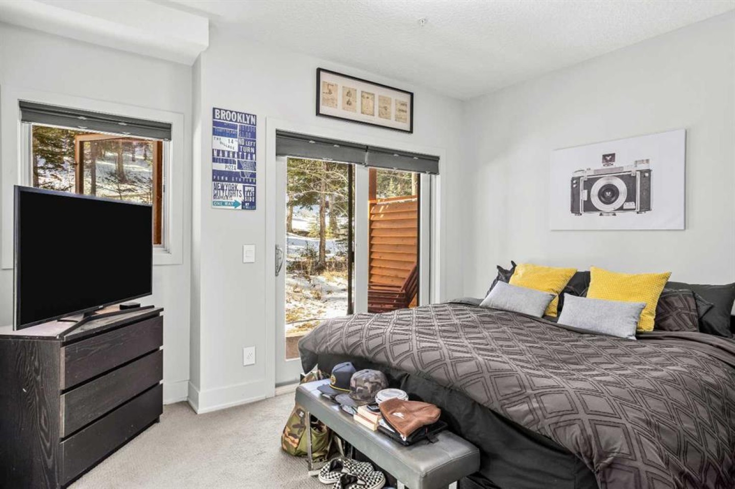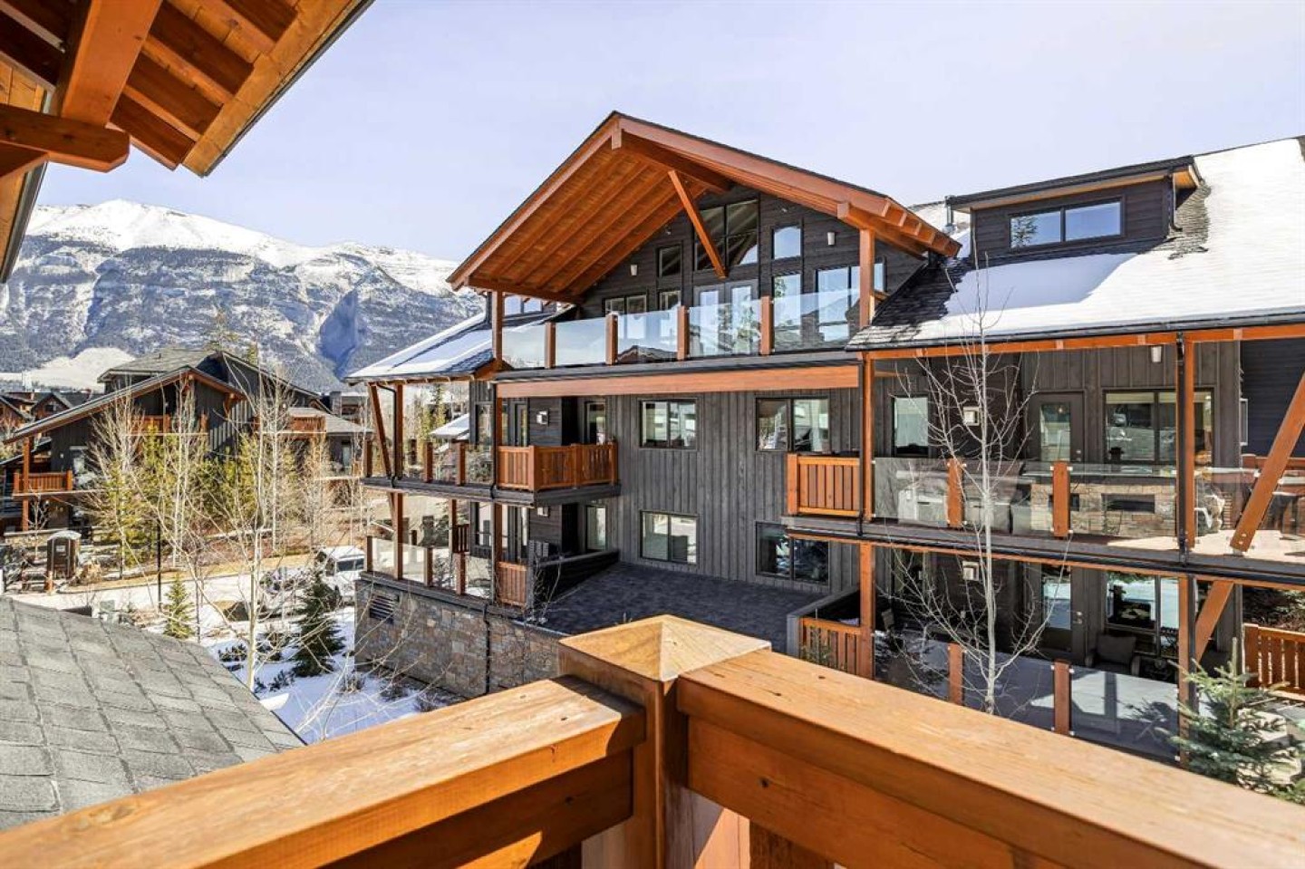 In a back row location, alongside a lovely treed hillside you'll find this well appointed, bright & spacious modern townhome. Over 3 storeys, with no one above or below you, this 1743 SF end unit provides serenity & pride of place in the Three Sisters of Canmore. On entry, vaulted ceilings & a glass bordered stairway leads up to the main level, or down to a handy flex space, laundry & single garage, perfect for active lifestyles. The middle floor offers 2 bedrooms, where the primary suite is an ideal respite with its own bath & generous closet space. A private balcony leads to the woods alongside. Upstairs, views are panoramic, where 3 walls of glass bring the outside in. A thoughtfully laid out kitchen sits together with the dining area & will be the heart of entertaining. Opposite, the living room inspires relaxation & calm under soaring ceilings. Finding inspired design which brings comfort & utility while also offering an environment that's "of" Canmore is a rare offering. We hope you agree!