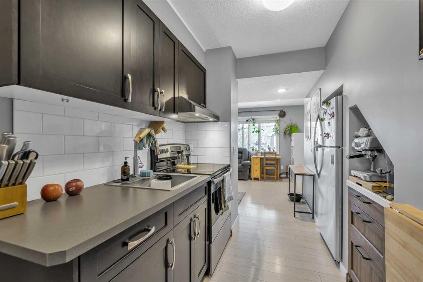 Lower suite: Fridge, stove, washer/dryer combo unit,