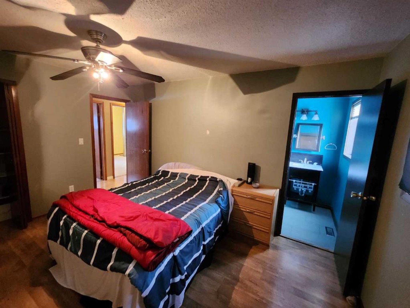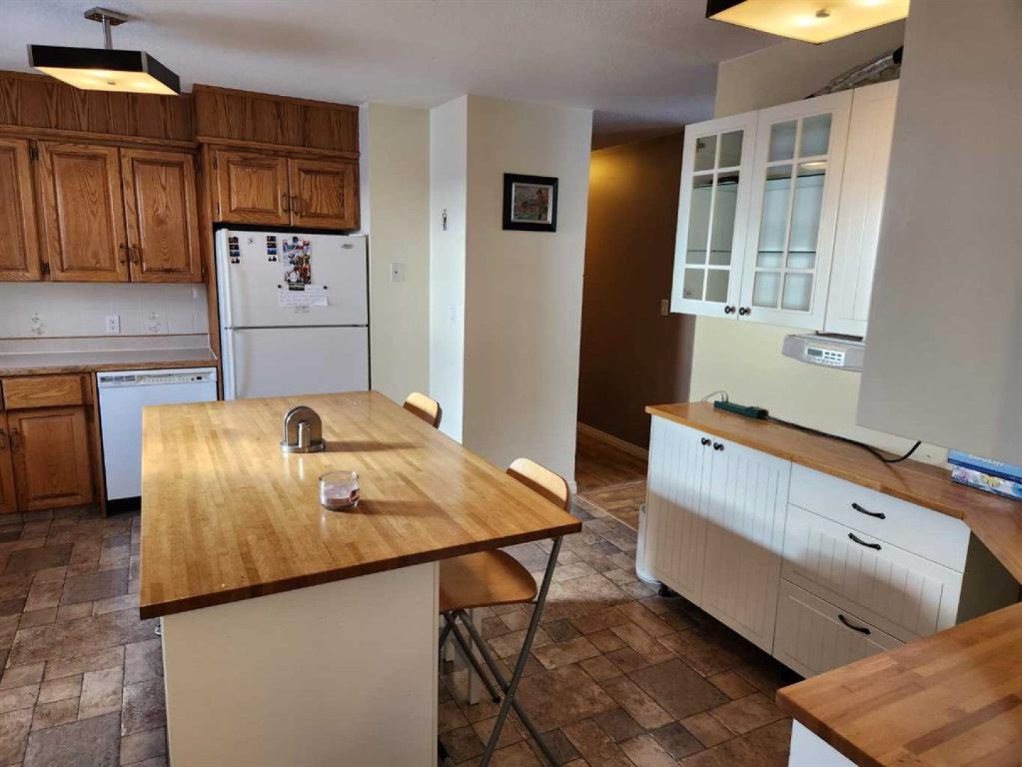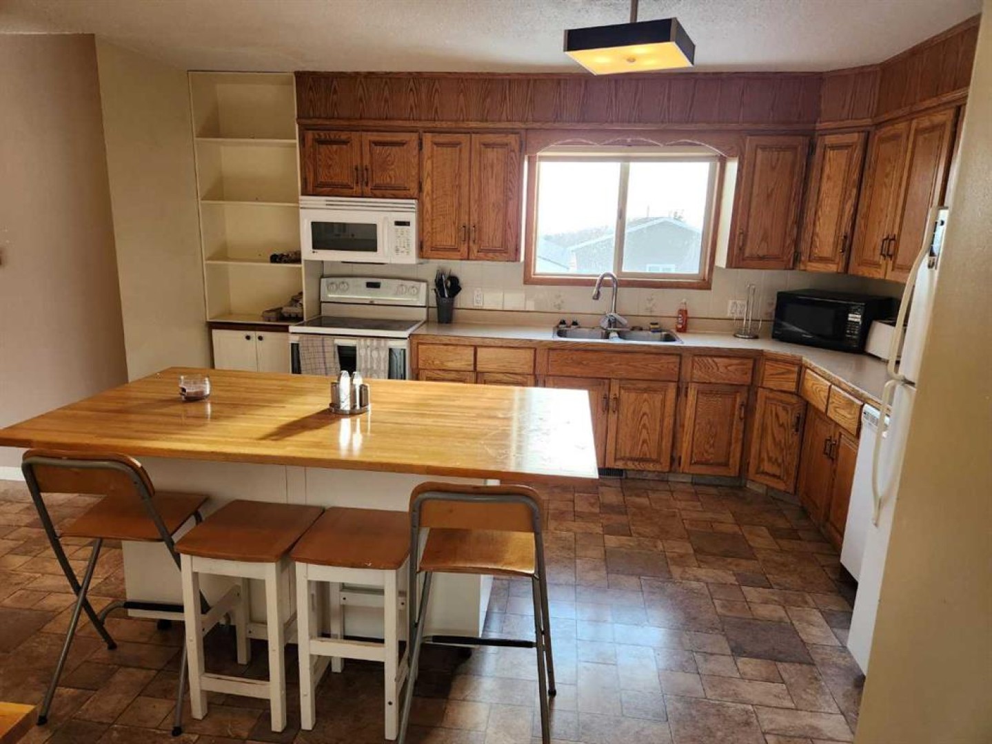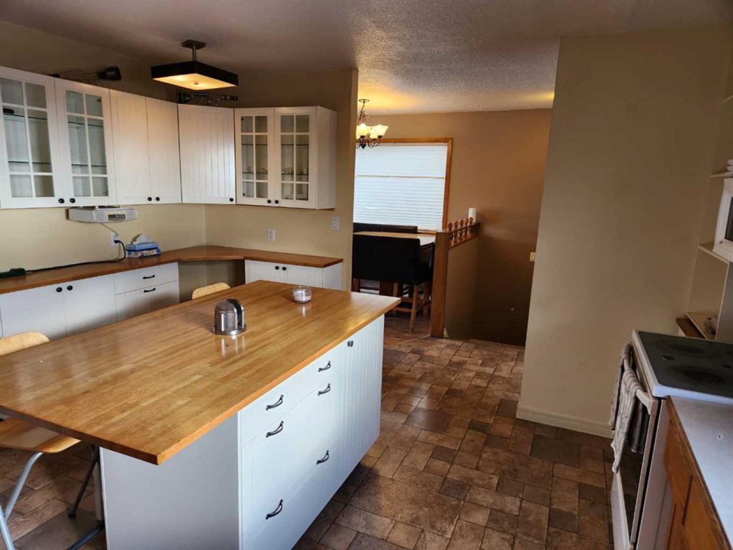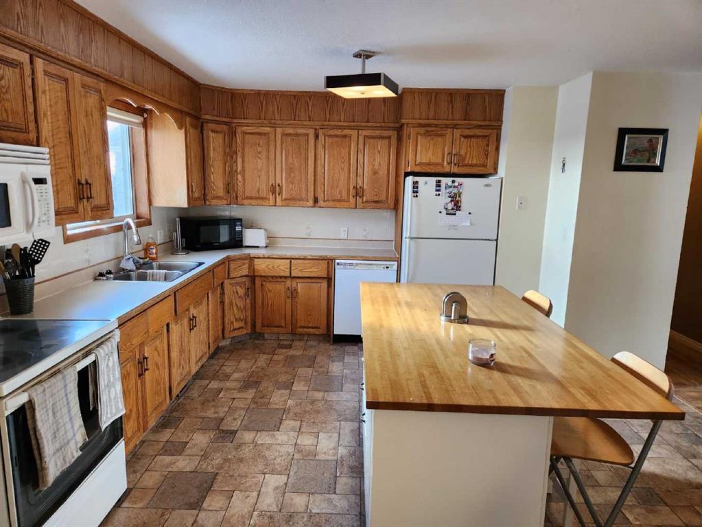 Welcome to this charming 1988-built home that offers both comfort and practicality. This 3-bedroom house, nestled in a tranquil neighborhood, boasts a variety of features that make it an ideal living space. Upon entering, you’ll be greeted by a tiled entryway, leading to the main living area with beautiful hardwood floors. The kitchen, with a very large layout, provides an awesome view and is equipped with a range of appliances, including a fridge, stove, built-in microwave, and dishwasher. The kitchen also features a spacious, movable island with a breakfast bar, making it a perfect gathering spot. Adjacent to the kitchen, you’ll find a dining area that’s ideal for family meals and entertaining. The upstairs area includes three bedrooms and a 4-piece main bathroom, ensuring convenience for the whole family. The master bedroom features a 2-piece ensuite, adding a touch of luxury to your daily routine. Downstairs, the basement offers two additional bedrooms, making it a great space for guests or for use as an office or playroom. There’s also a 3-piece bathroom and a utility room off the basement bathroom for added convenience. The basement features hardwood in the main area and carpet in the bedrooms, providing a cozy atmosphere. Storage won’t be a concern with a huge storage area in the basement, as well as storage space under the stairs. The home is equipped with copper plumbing, adding to its durability and value. Outside, you’ll find a wooden deck for outdoor relaxation and a very nice firepit area, perfect for evening gatherings. The fully fenced back yard ensures privacy and security. For storage needs, there’s a small garden shed on the side of the house. Parking is convenient with street parking and alley access. The single-car garage, drywalled and insulated, provides additional parking and storage options. The chimney in the garage could be used for future heating purposes. The property also offers paved parking in the back with private alley access. The shingles are in good shape, and most windows upstairs are vinyl, enhancing energy efficiency and aesthetics. This house is a perfect blend of comfort, convenience, and potential, offering a cozy and practical living space with a view and outdoor amenities that make it a true home.