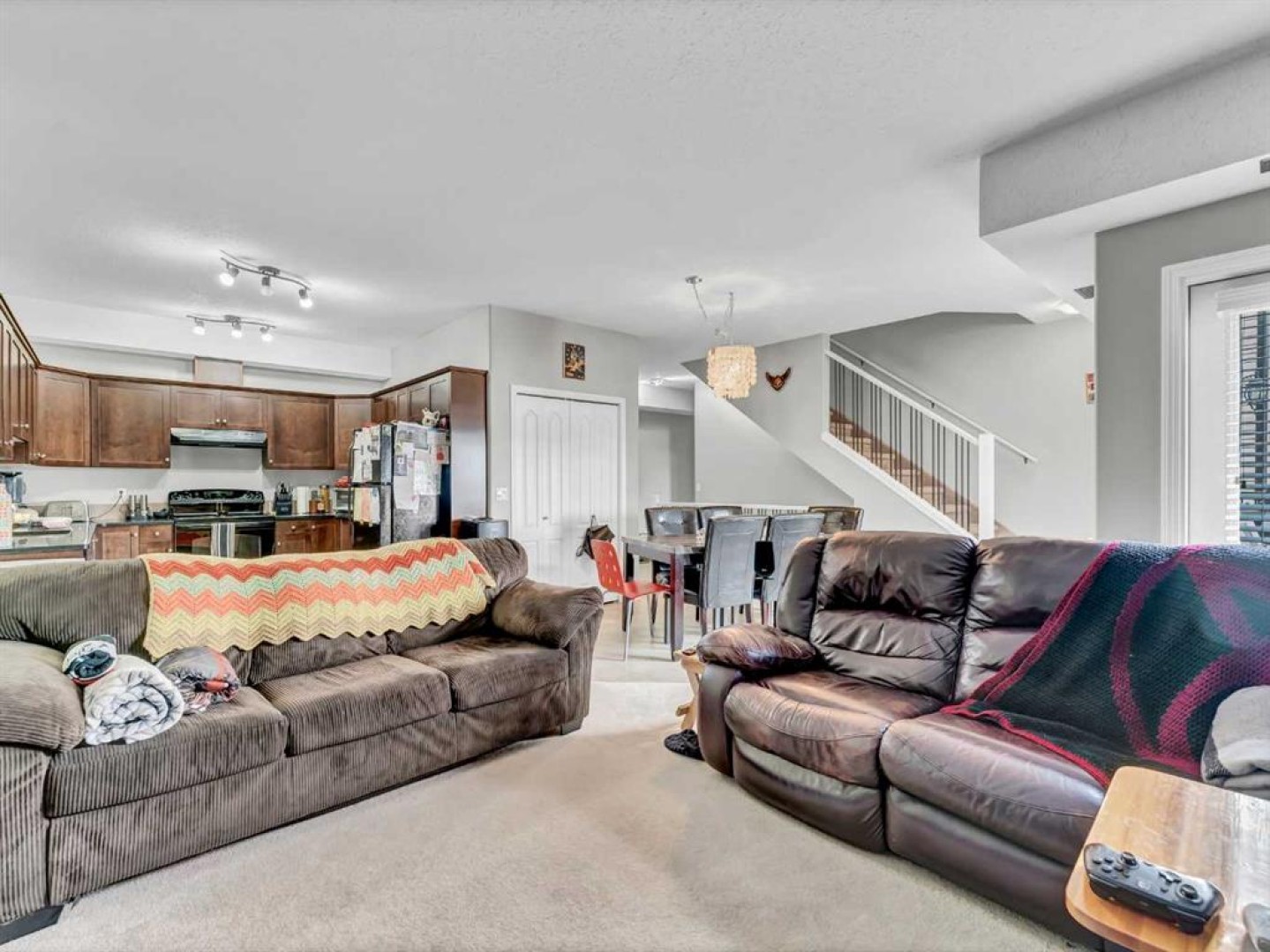 Spacious and thoughtfully designed, this 1,964 sq. ft. condo in desirable Southland offers comfortable, low-maintenance living with room to grow. The main level features an open-concept kitchen, living, and dining area that flows seamlessly—perfect for both everyday living and entertaining—along with access to a fantastic deck for outdoor enjoyment. A convenient 2-piece bathroom and a cozy bedroom complete this level. Upstairs, the expansive primary retreat boasts a walk-in closet and private 4-piece ensuite, creating the perfect space to unwind. This level also includes a second 4-piece bathroom, an additional bedroom, and a versatile den or storage room to suit your needs. With its functional layout, generous square footage, and sought-after location, this is an exceptional opportunity for easy, carefree living.