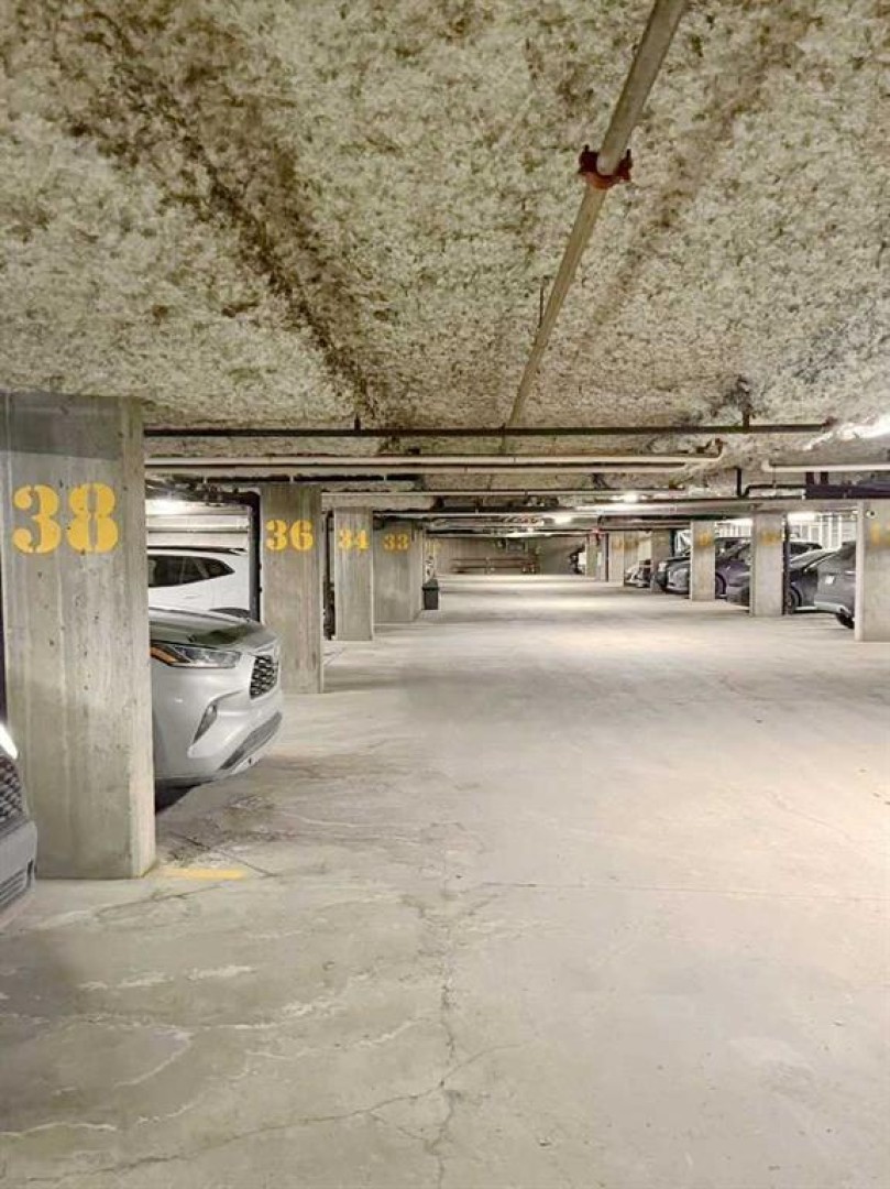 Welcome to this beautifully maintained TOP-floor unit. This bright, open condo offers comfortable living with vaulted ceilings and a spacious living room featuring elegant French doors that open to a sunny south-facing balcony, complete with a gas line for BBQs. The unit includes a large primary bedroom with a walk-through closet and a full ensuite, a second bedroom ideal for guests or a home office, a well-sized kitchen, a formal dining area, a 4-piece main bathroom, and convenient in-suite laundry. With neutral colours throughout and two ceiling fans, the home feels airy, modern, and move-in ready. Ideally located, this property is within walking distance of grocery stores and restaurants, just 400 meters from T&T Supermarket, and less than a 5-minute drive from nearby parks and green spaces. Schools are just about a 6-minute drive away, making it a great option for families. You’ll also enjoy close proximity to a golf course, movie theatres, Vivo (Cardel Place), Rexall, 7-Eleven, Tim Hortons, and easy access to Deerfoot Trail, Stoney Trail, and the airport. Public transit is highly accessible, including the 301 express bus to downtown. The unit also comes with one heated underground assigned parking stall, offering added comfort during the winter months. Don’t miss your chance to make it yours—book your private showing today!
