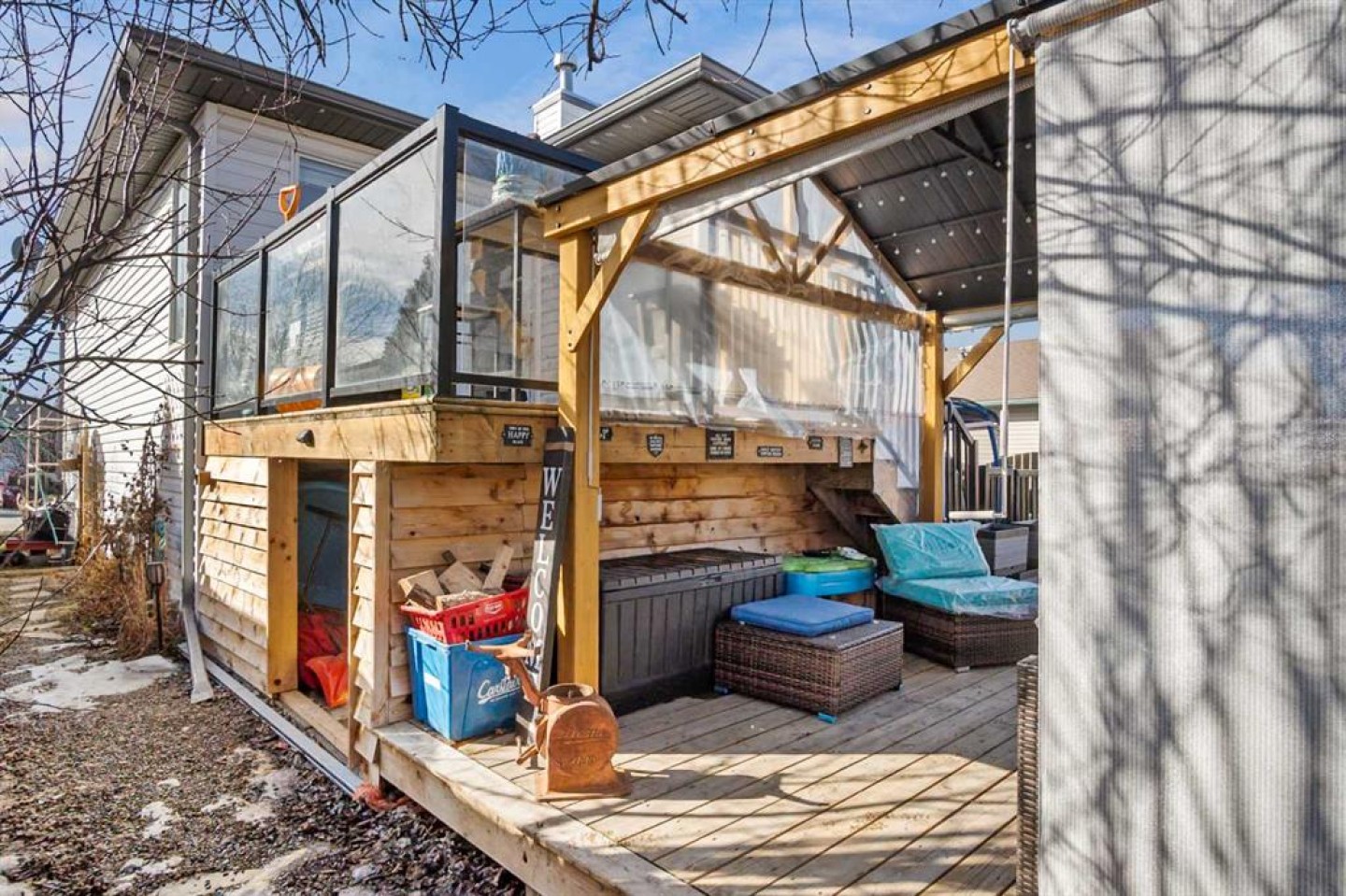Woodstove, Greenhouse, Archway, Gazebo & curtains, Smart Home outdoor lighting, 2 basement TV wall mounts