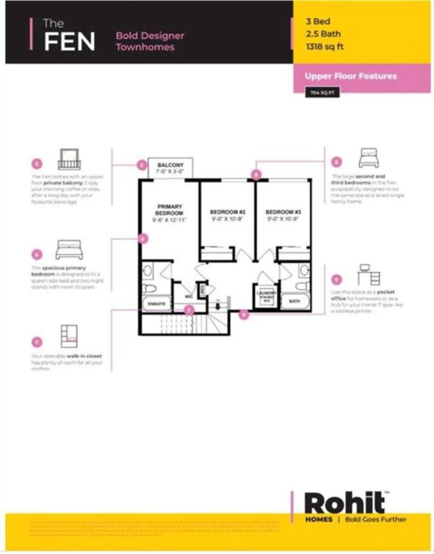 Welcome to The FEN by Rohit Homes, a stunning unit that combines modern design with everyday comfort featuring Single Attached Garage, 3 bedrooms, 2.5 bathrooms and very functional. The open floor plan showcases sleek finishes highlighted by high cabinetry, a spacious pantry, and plenty of countertops and storage to inspire your culinary side. The bright living room is perfect for entertaining, while the dining area opens onto a private balcony ideal for relaxing evenings. A stylish powder room completes the main level. Upstairs, you’ll find three bedrooms including a luxurious primary suite with a 3-piece ensuite and walk-in closet. A four-piece main bathroom and convenient upper-floor laundry add to the thoughtful layout. Located in the sought-after community of Livingston, residents enjoy access to parks, pathways, and a state-of-the-art community center, along with close proximity to shopping, dining, schools, and major roadways. The FEN by Rohit Homes is more than a home—it’s a lifestyle in one of Calgary’s most vibrant communities.
